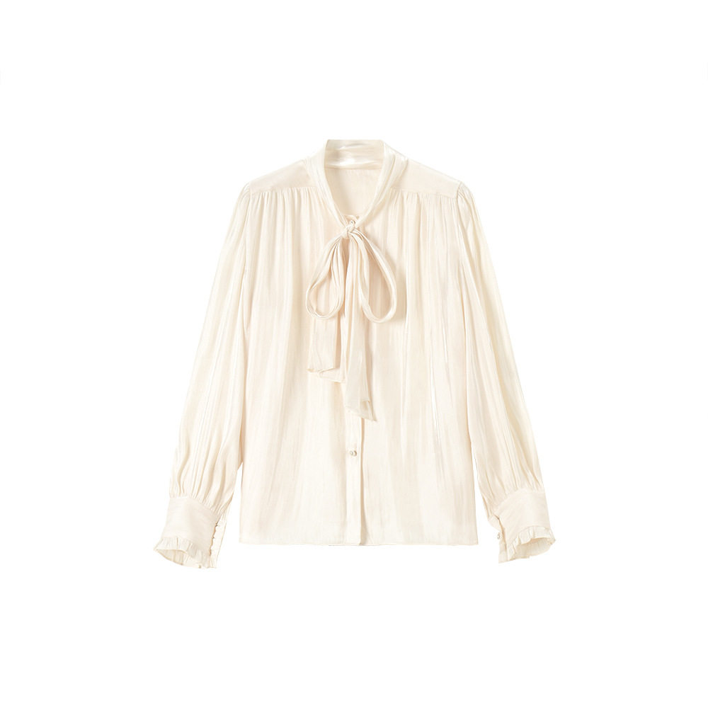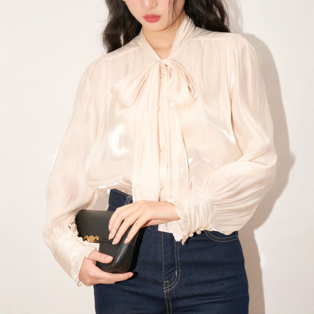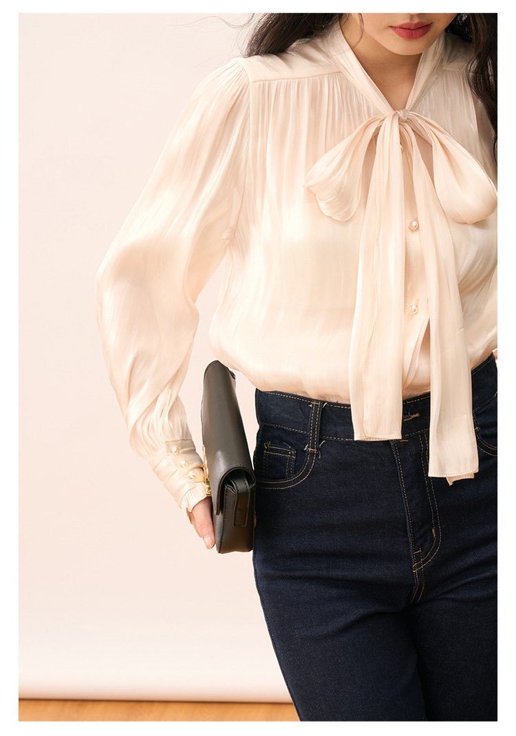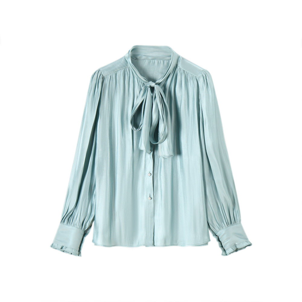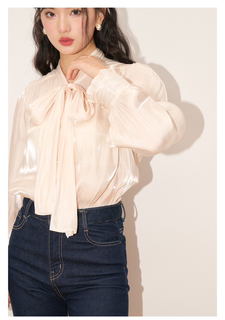 【トップス】エレガント 光沢感 ボウタイ リボン結び ブラウス 【JZシリーズ】