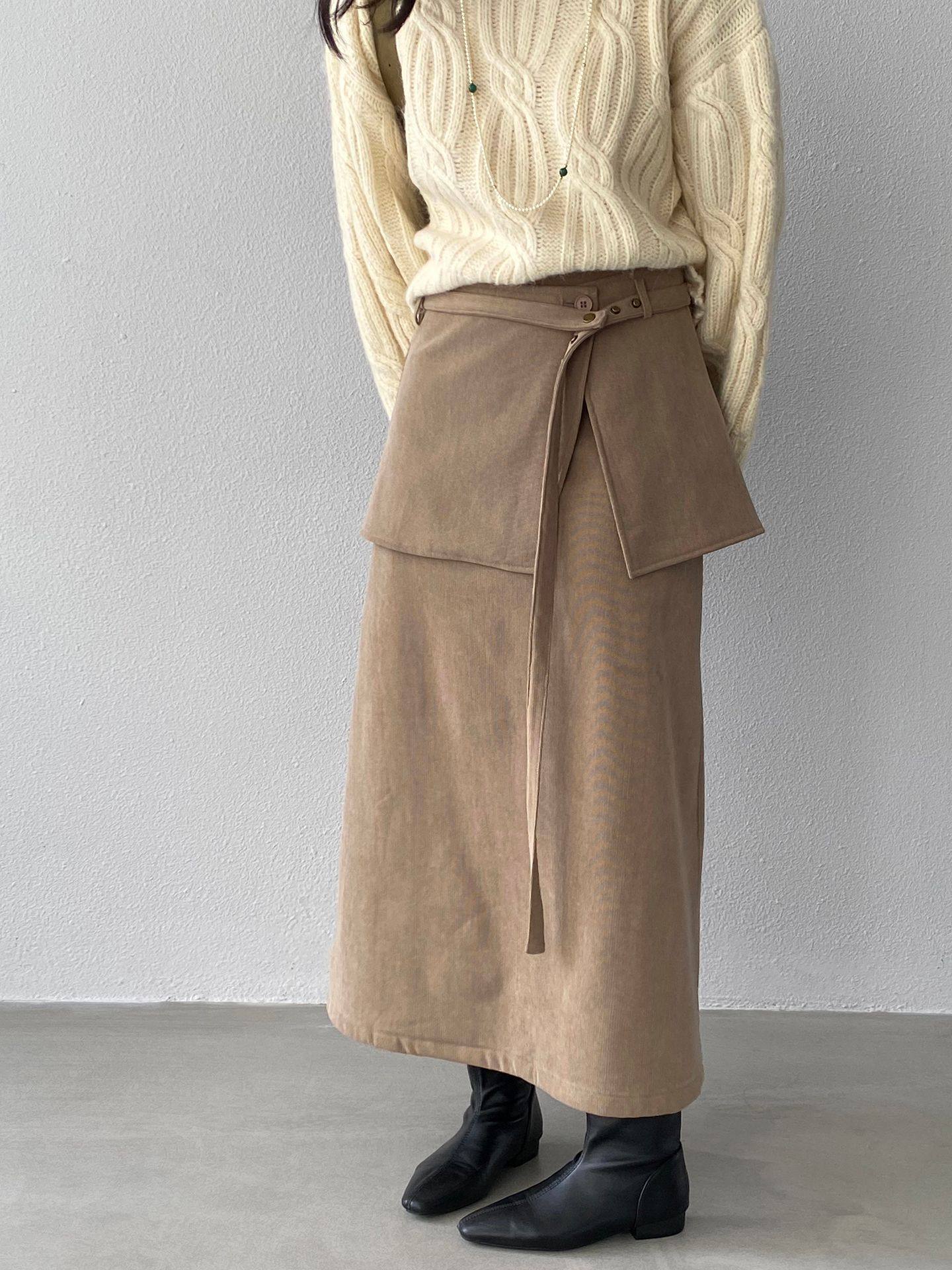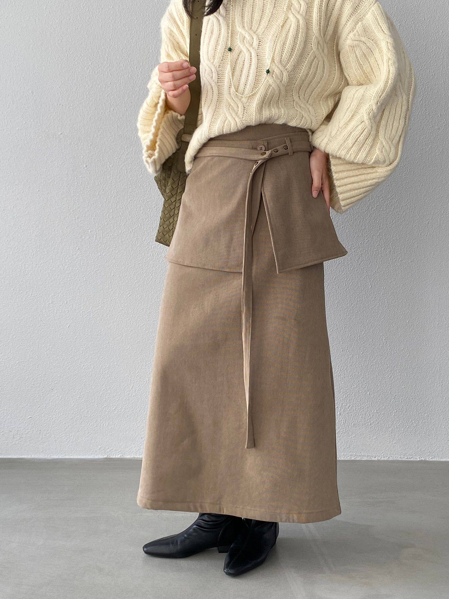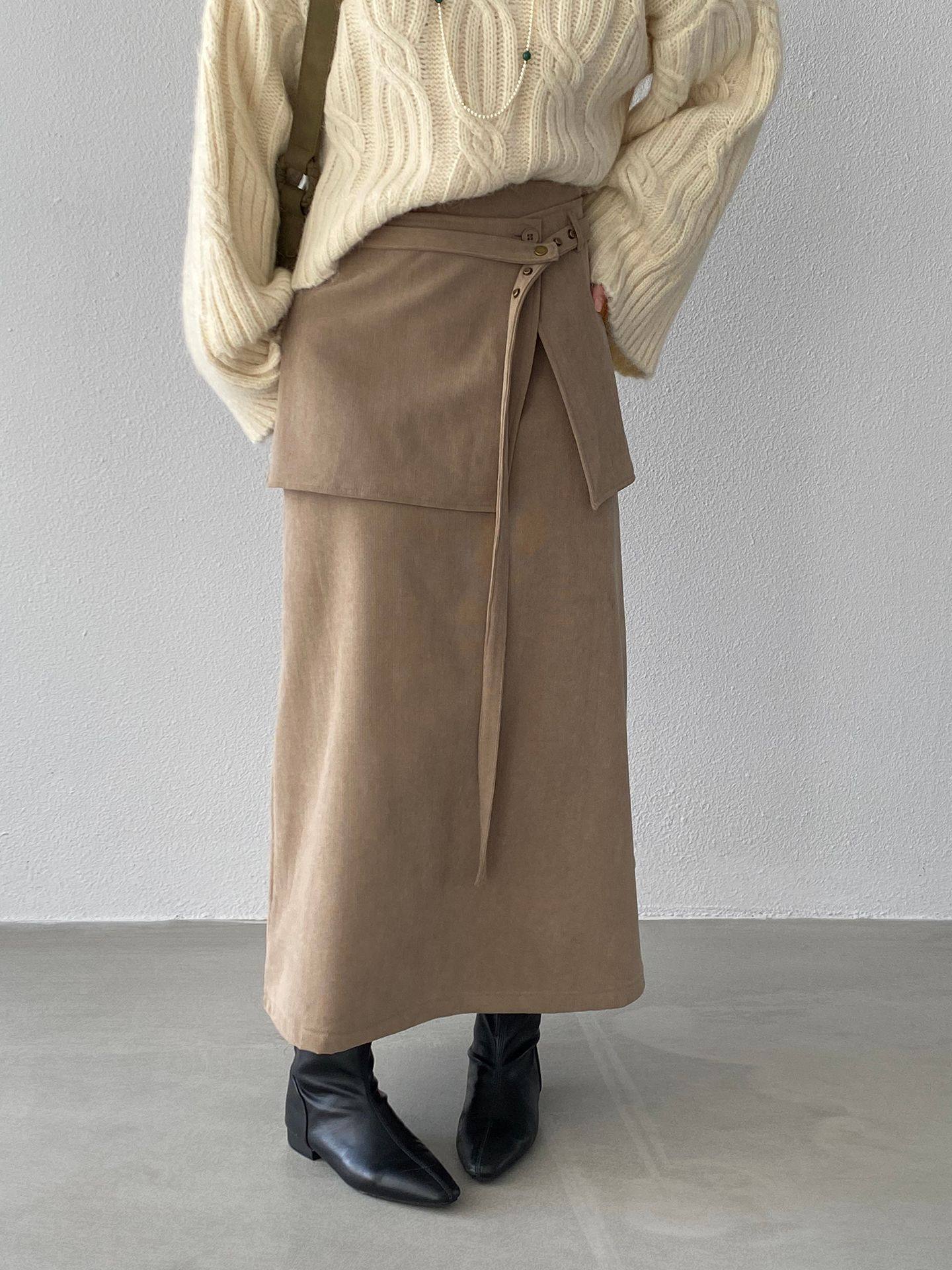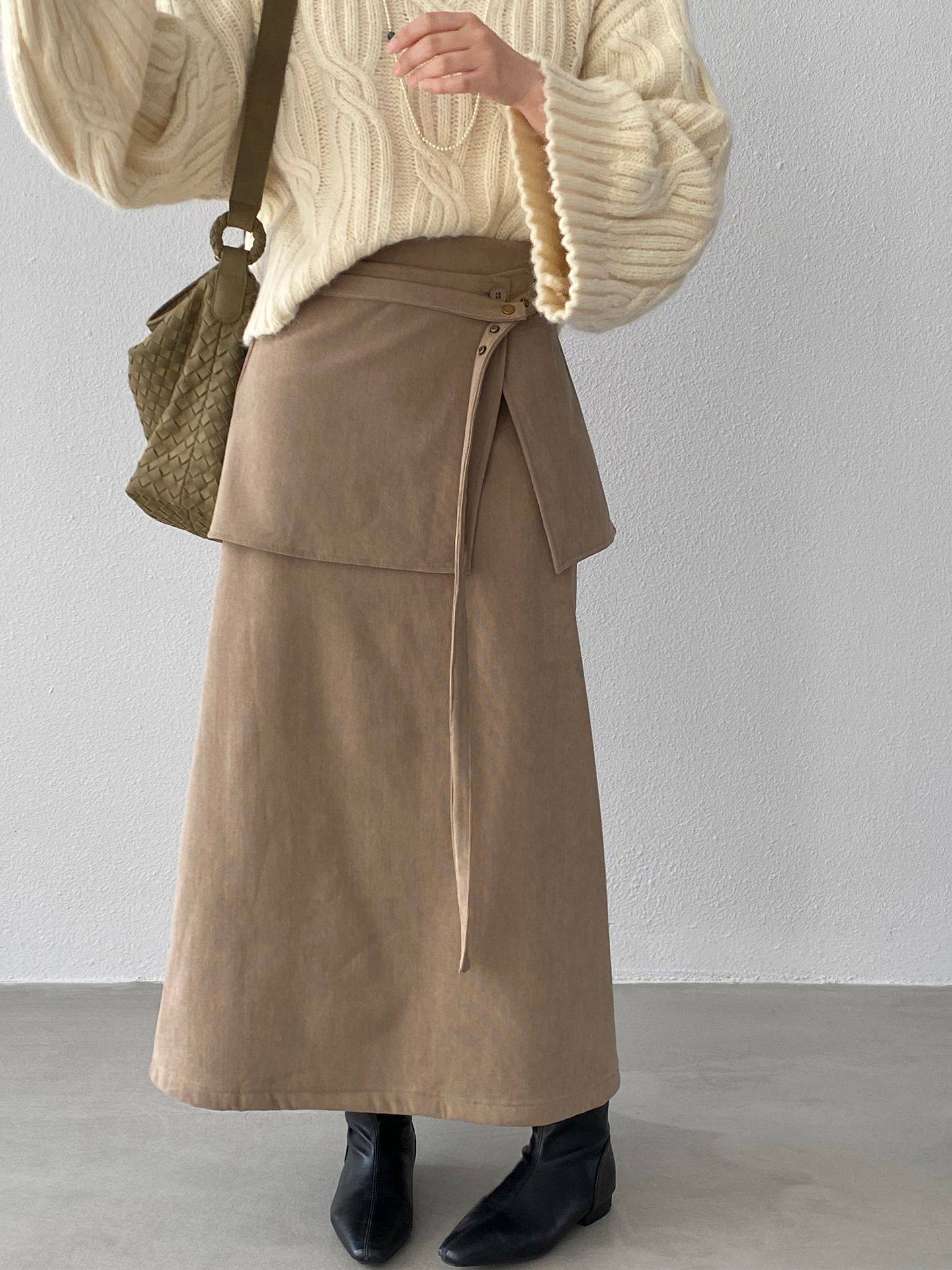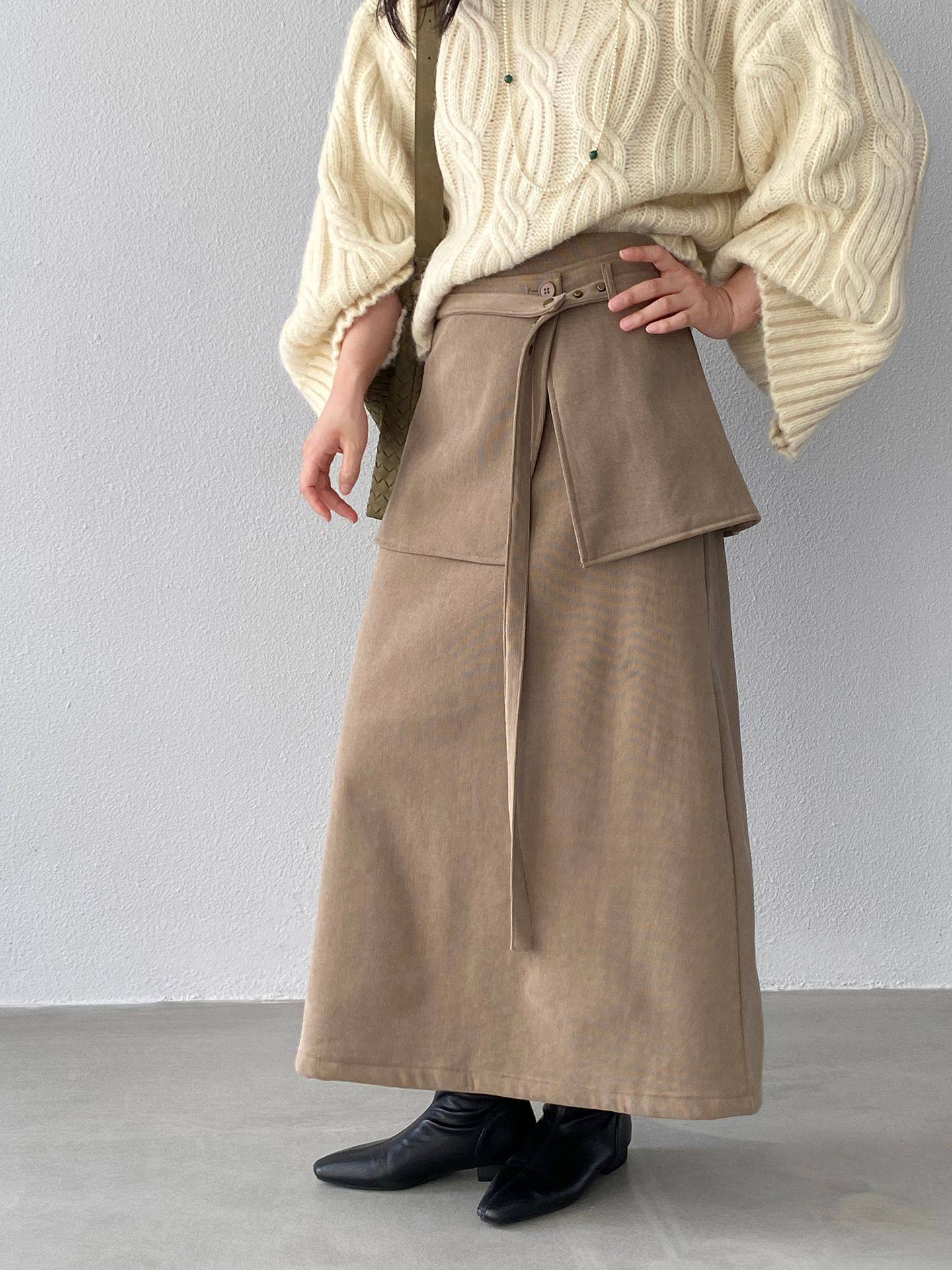 【ボトムス】バックフラップ 裏起毛 ストレート スカート 【JZシリーズ】