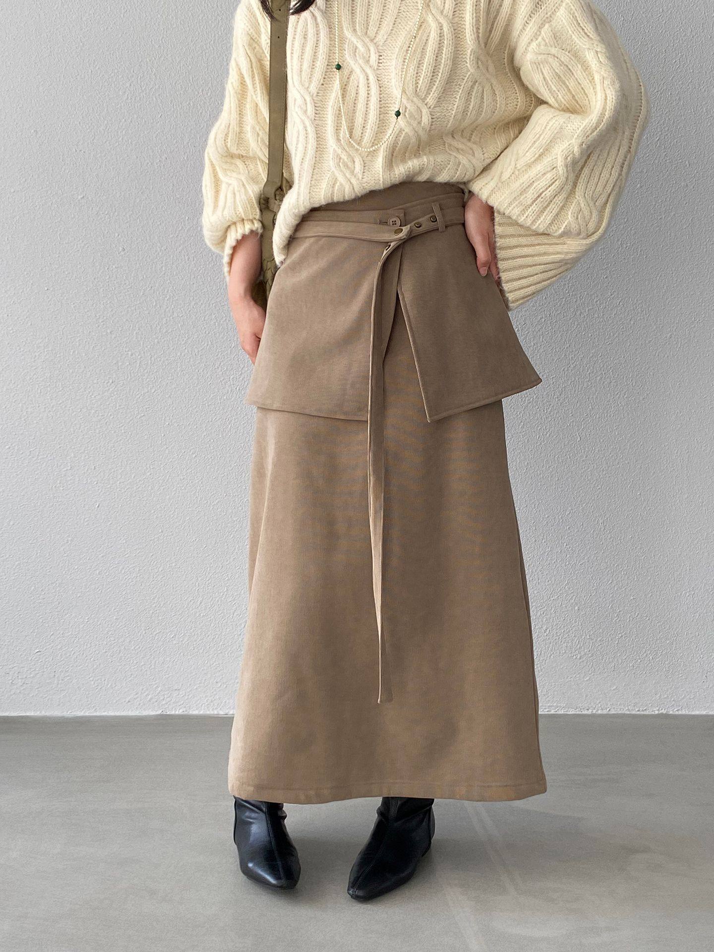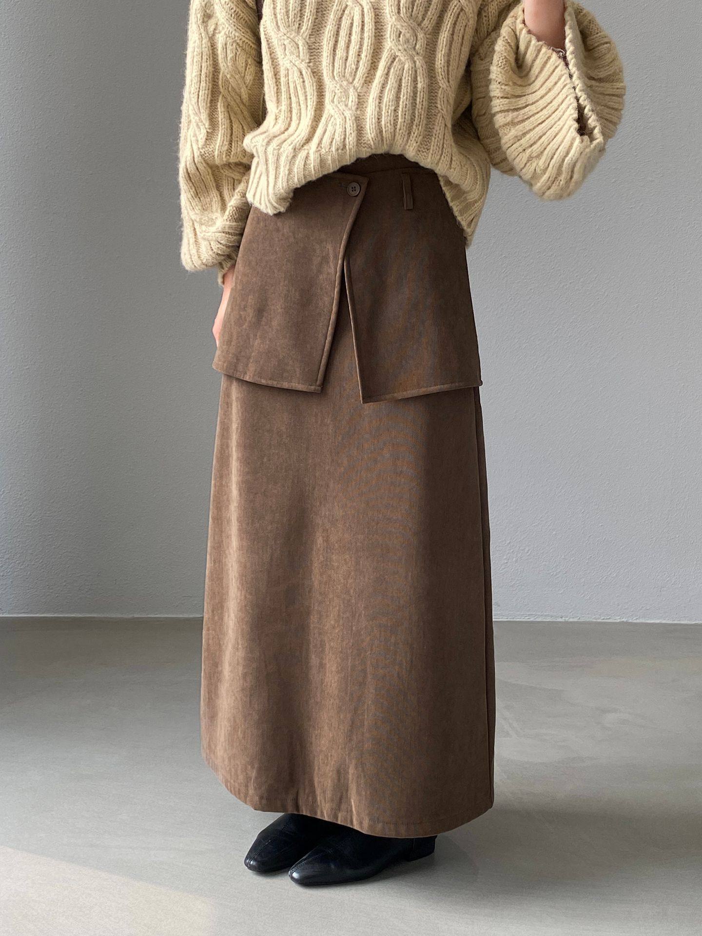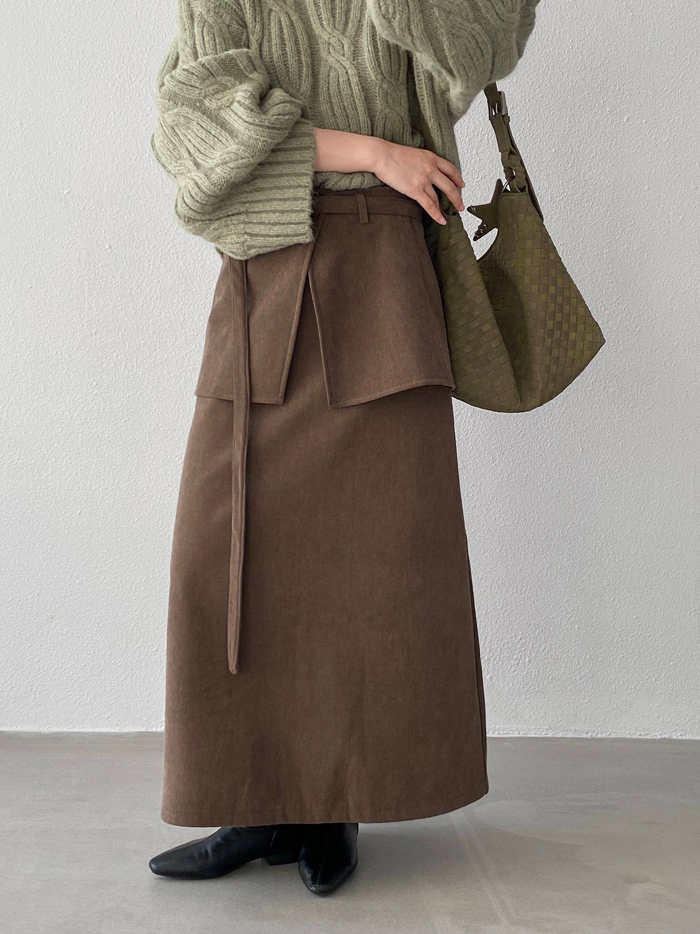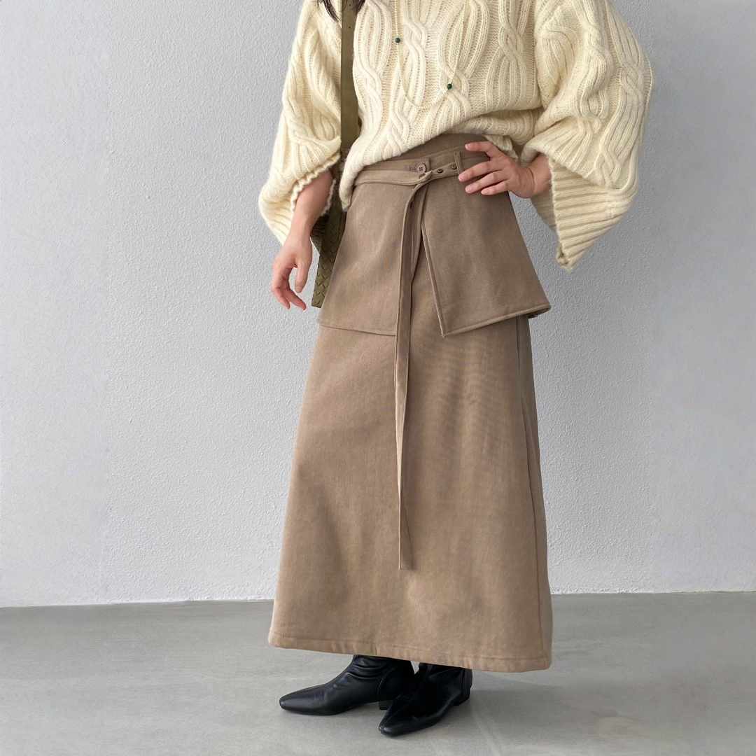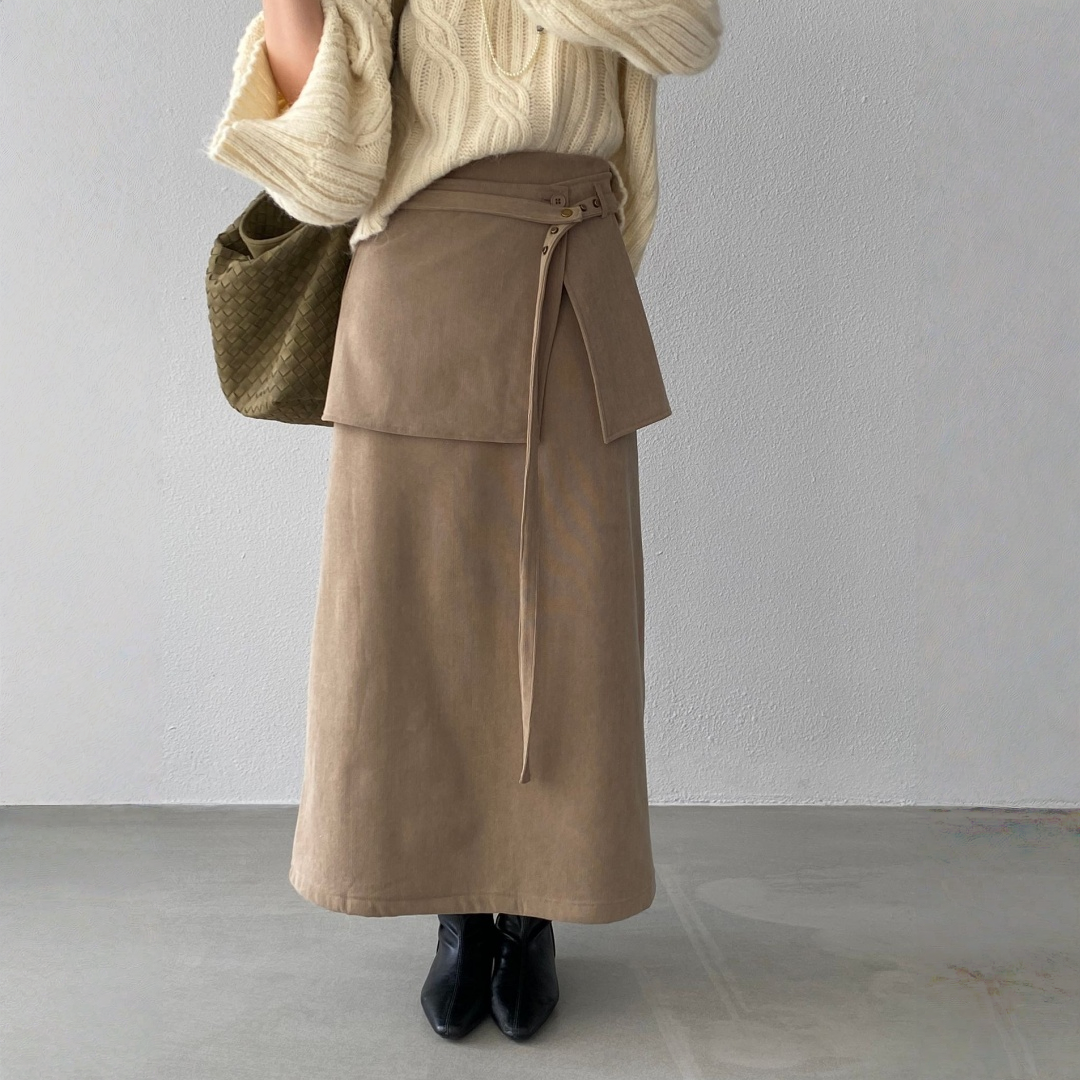 【ボトムス】バックフラップ 裏起毛 ストレート スカート 【JZシリーズ】