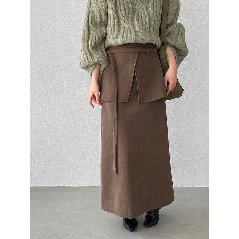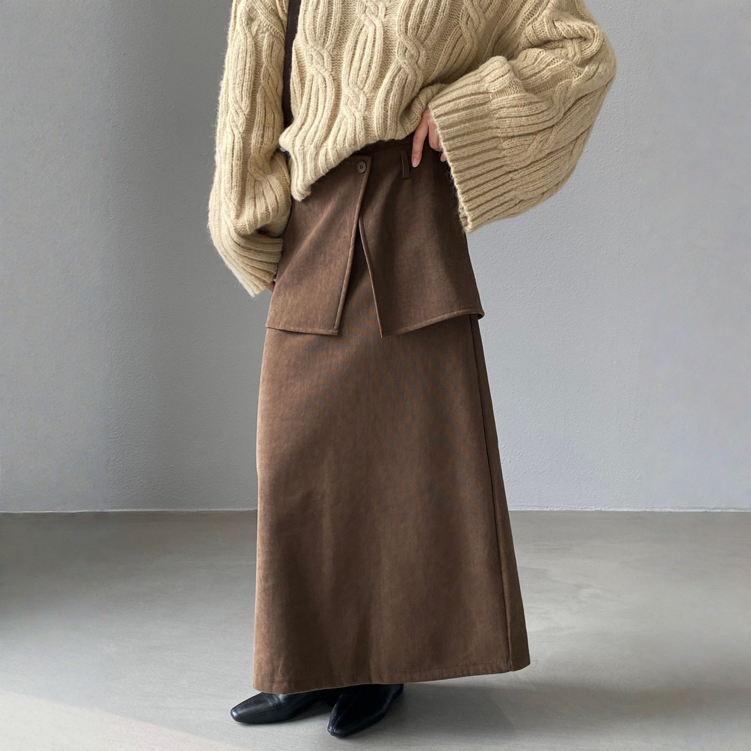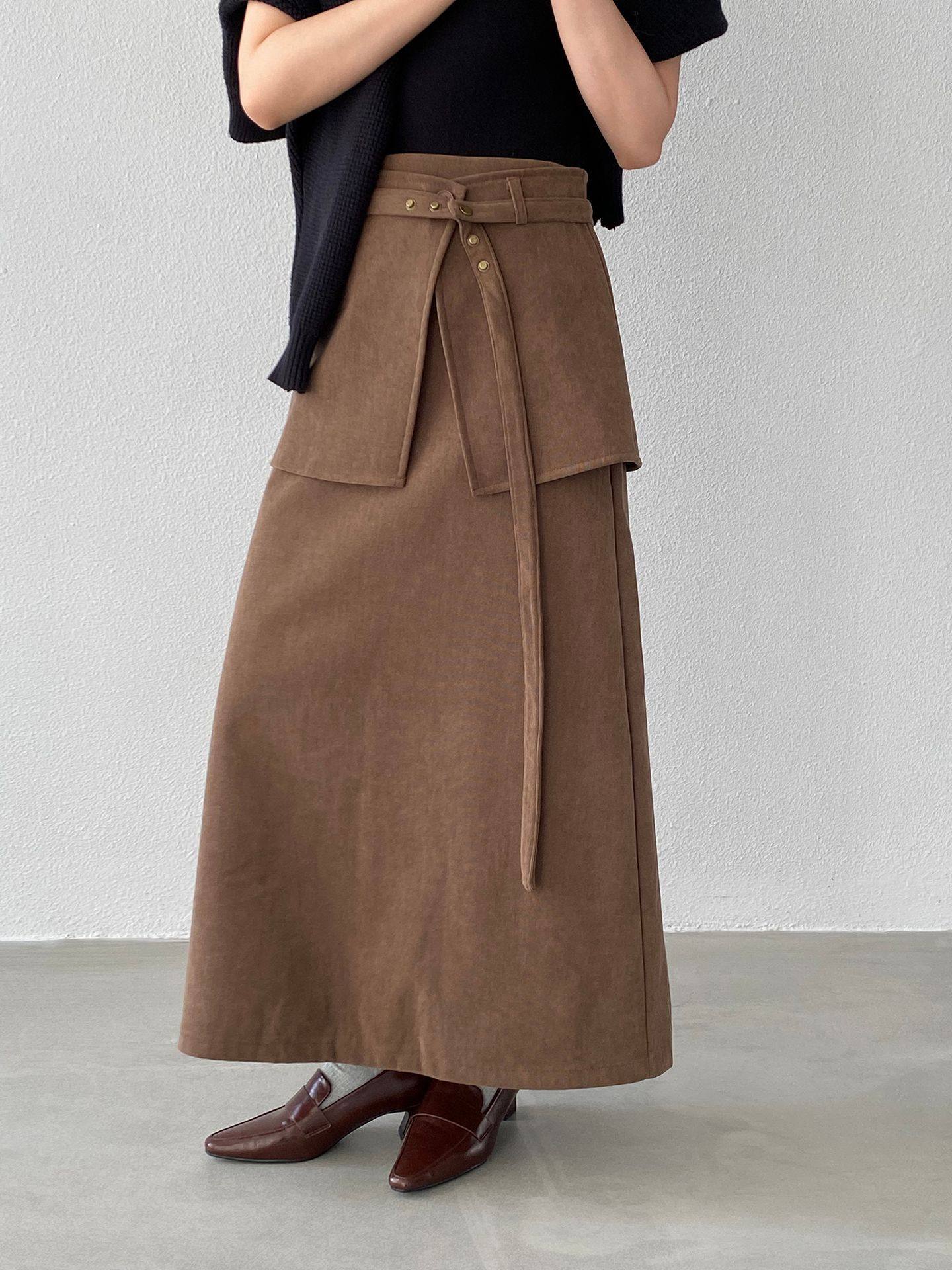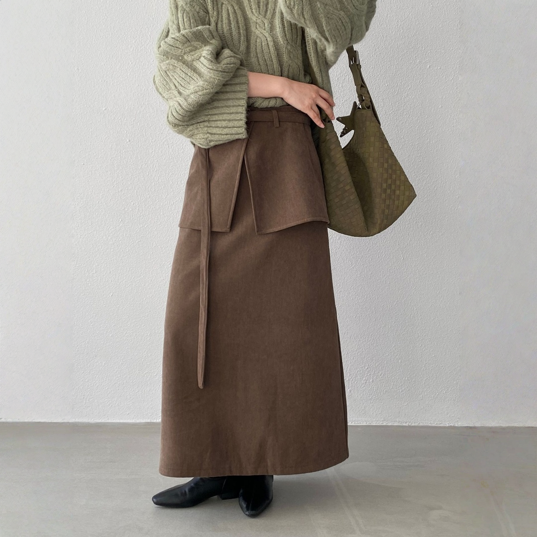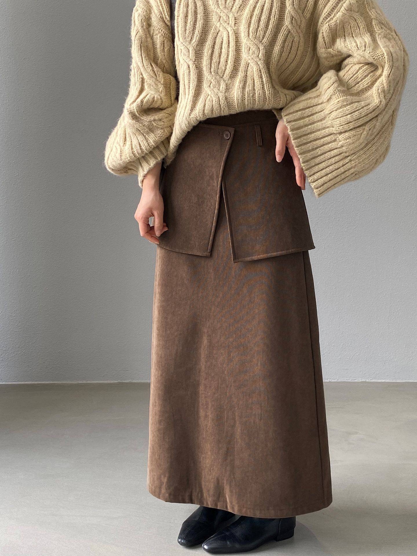 【ボトムス】バックフラップ 裏起毛 ストレート スカート 【JZシリーズ】