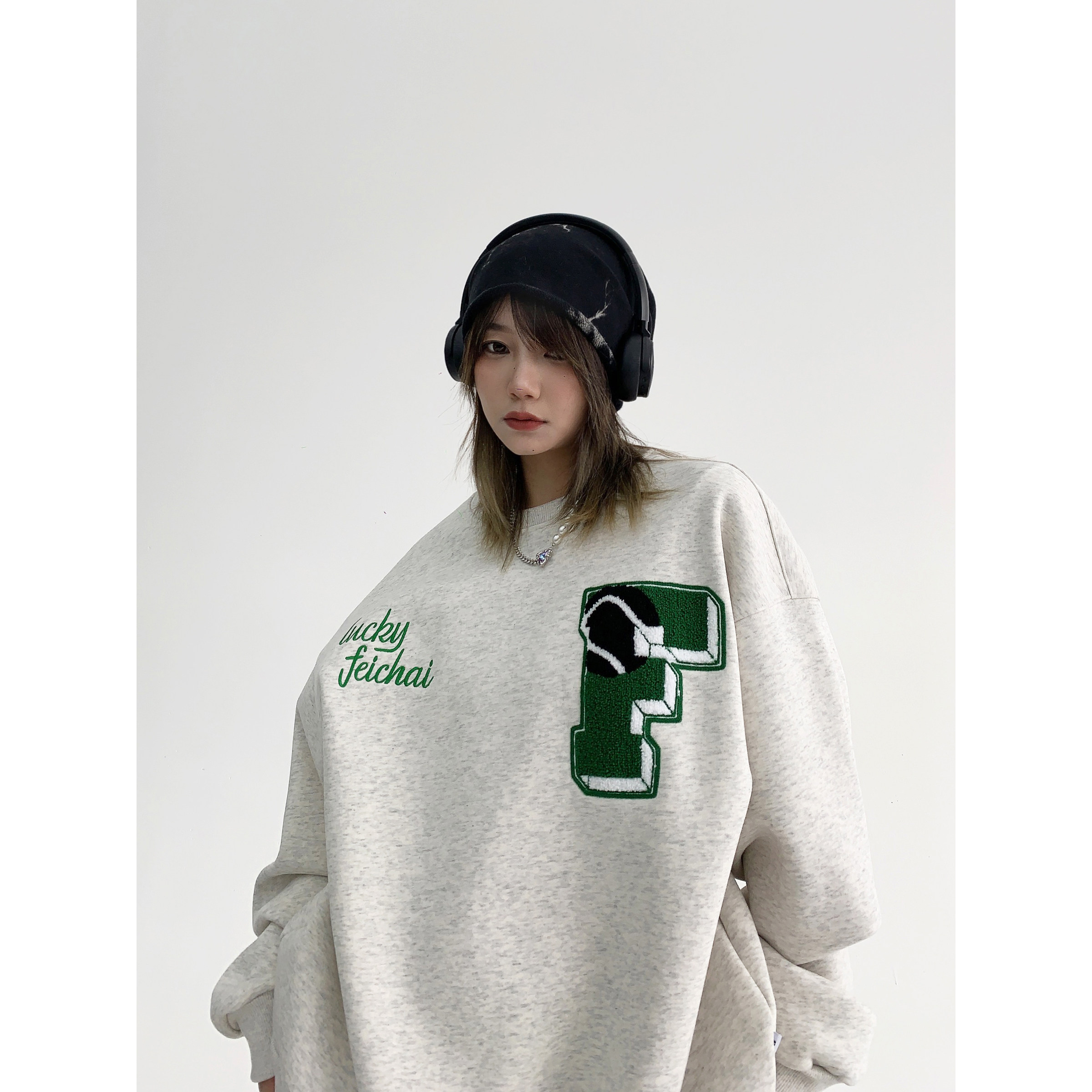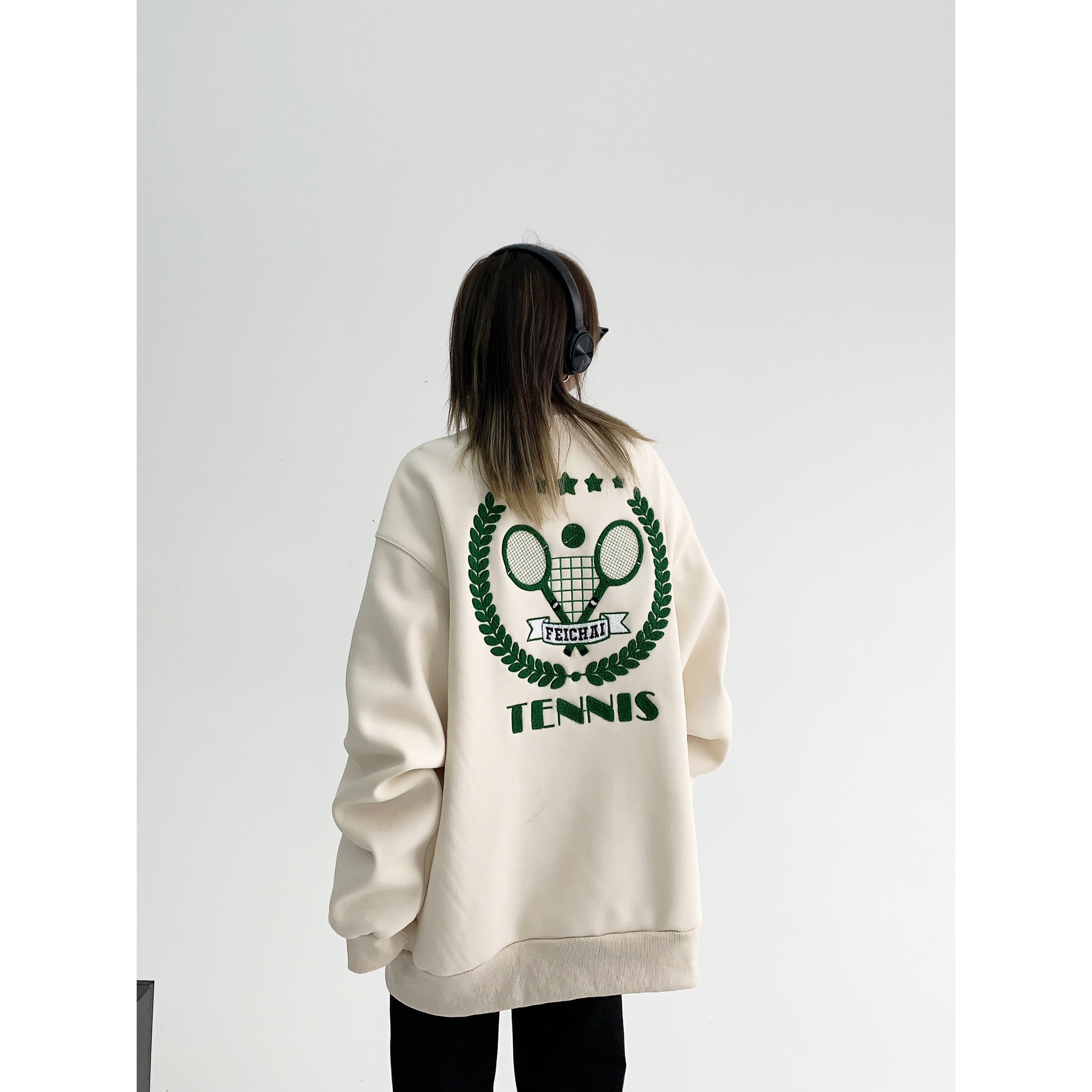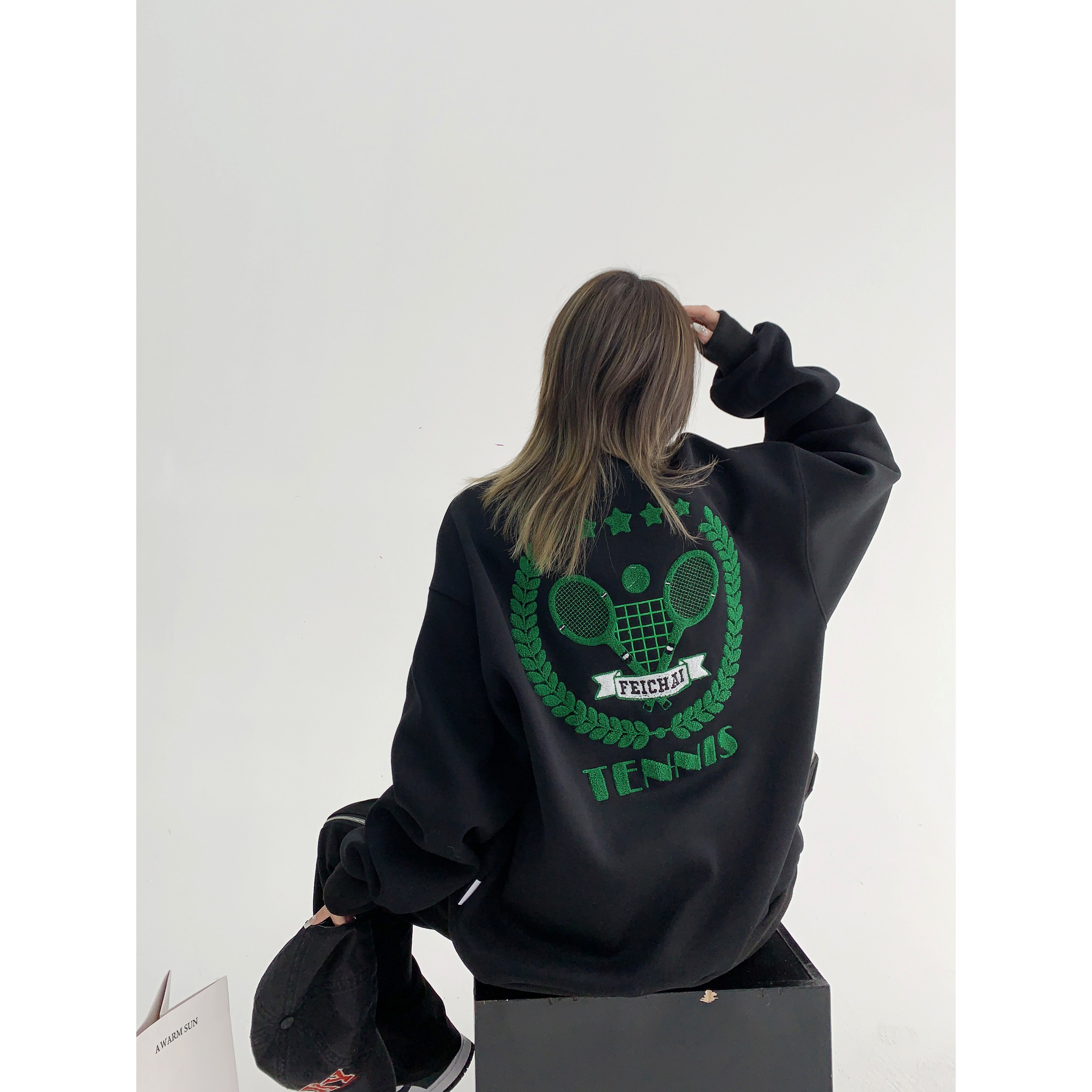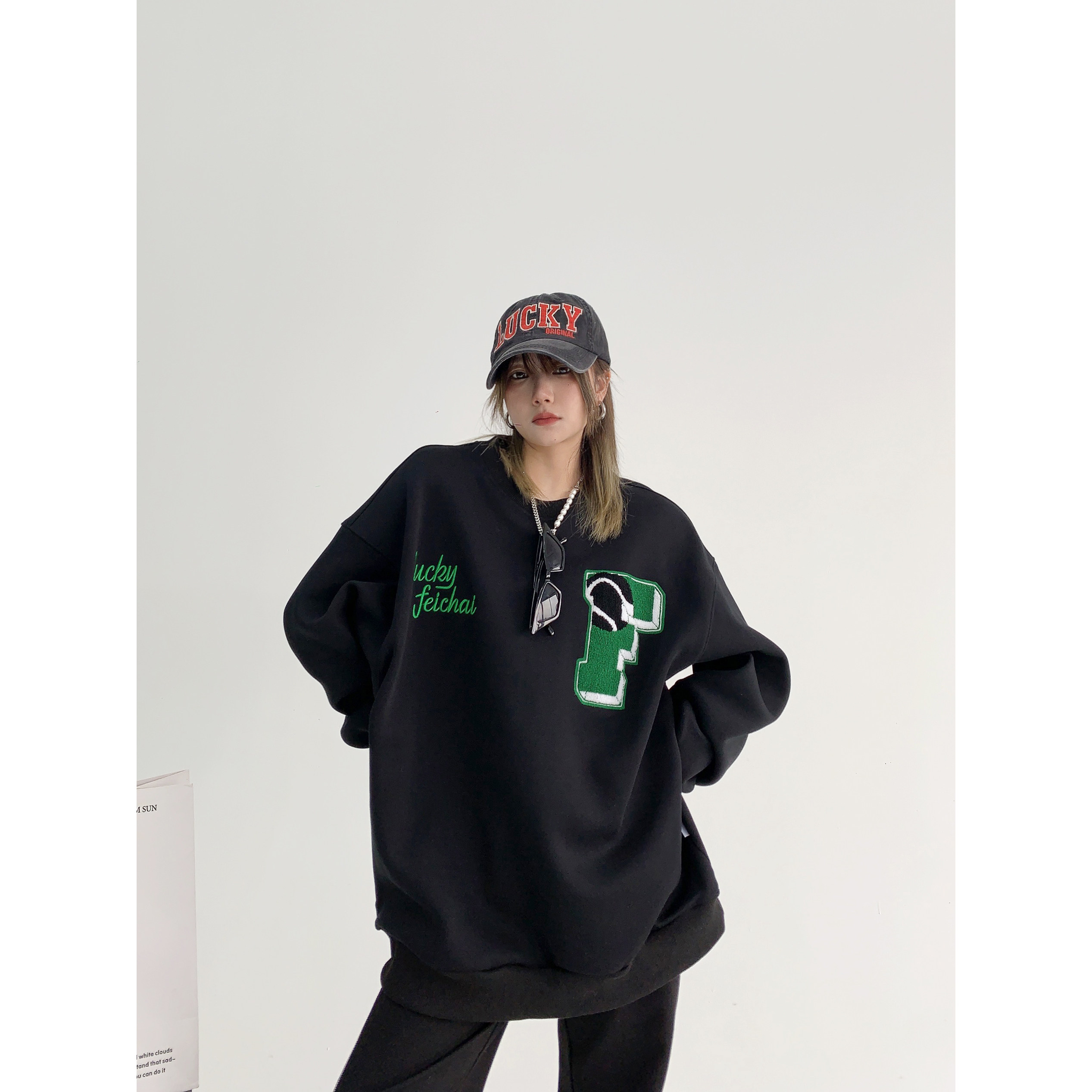 【トップス】アメリカンカジュアル オーバーサイズ 裏起毛 クルーネック 刺繍 スウェットパーカー レディース レトロ風【FCシリーズ】