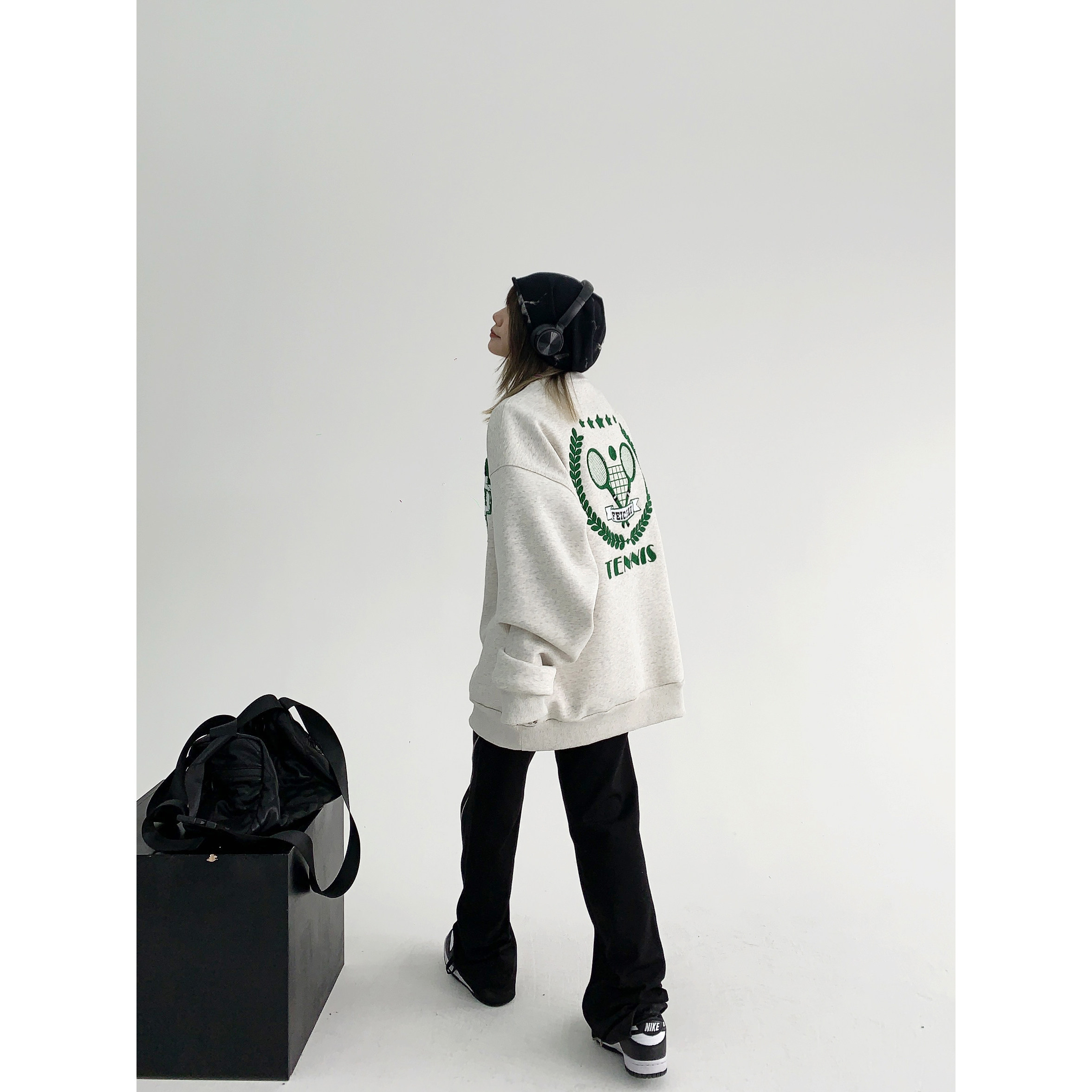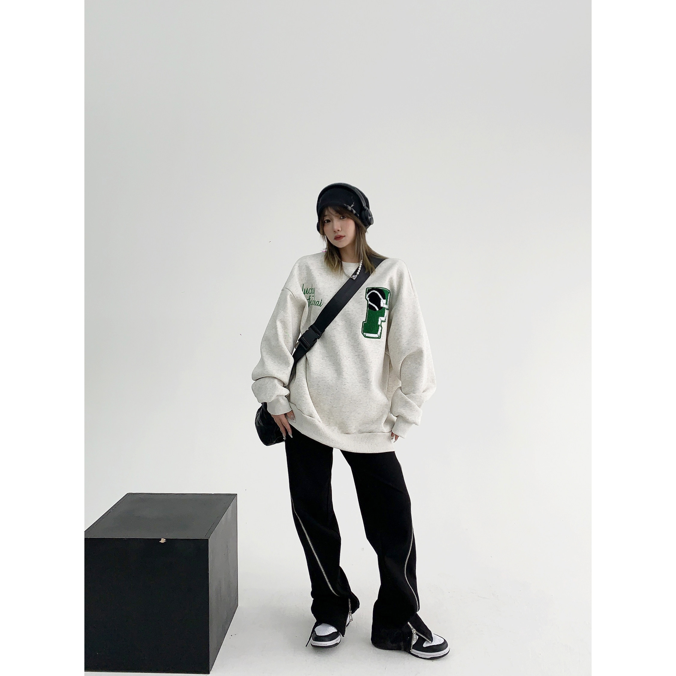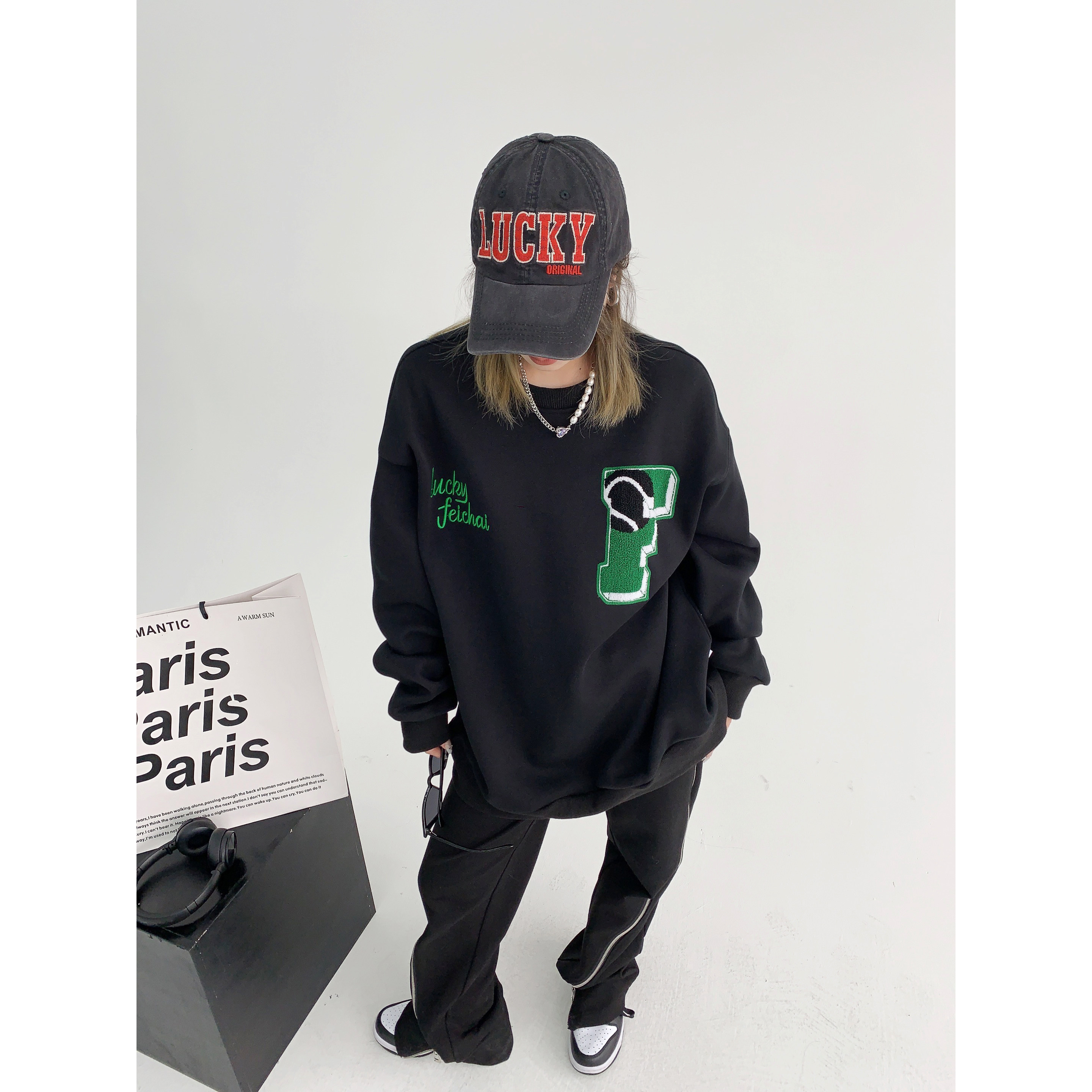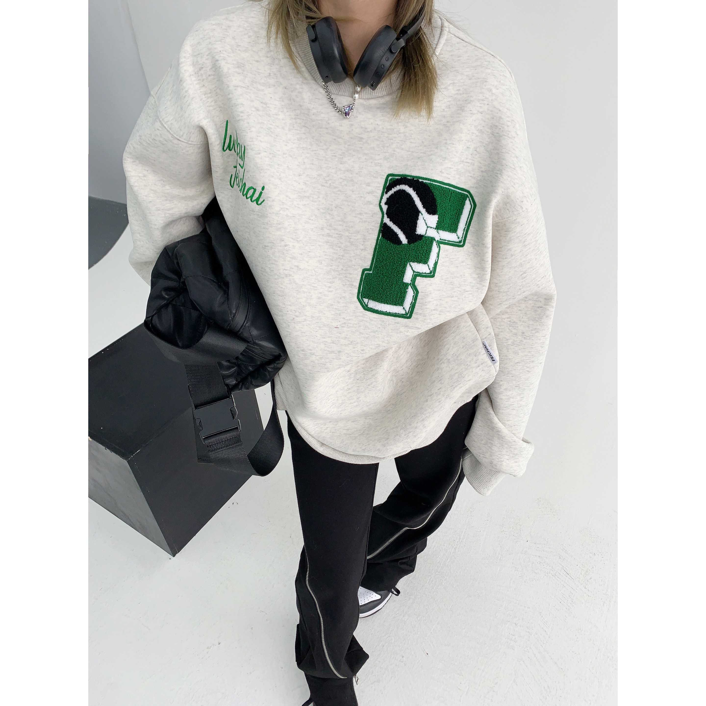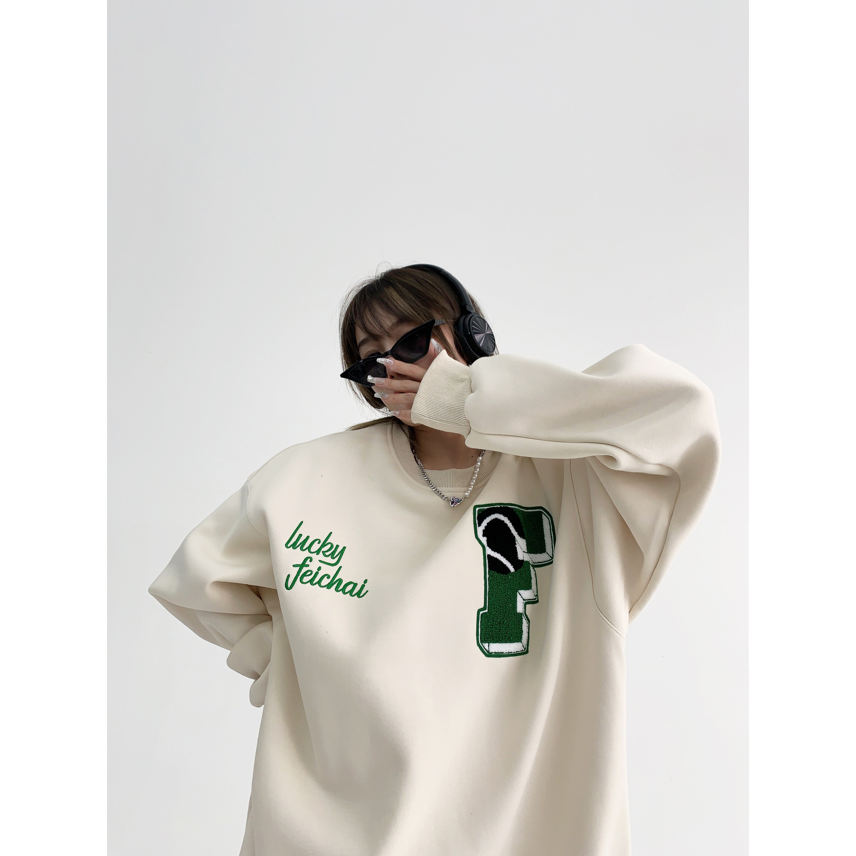 【トップス】アメリカンカジュアル オーバーサイズ 裏起毛 クルーネック 刺繍 スウェットパーカー レディース レトロ風【FCシリーズ】