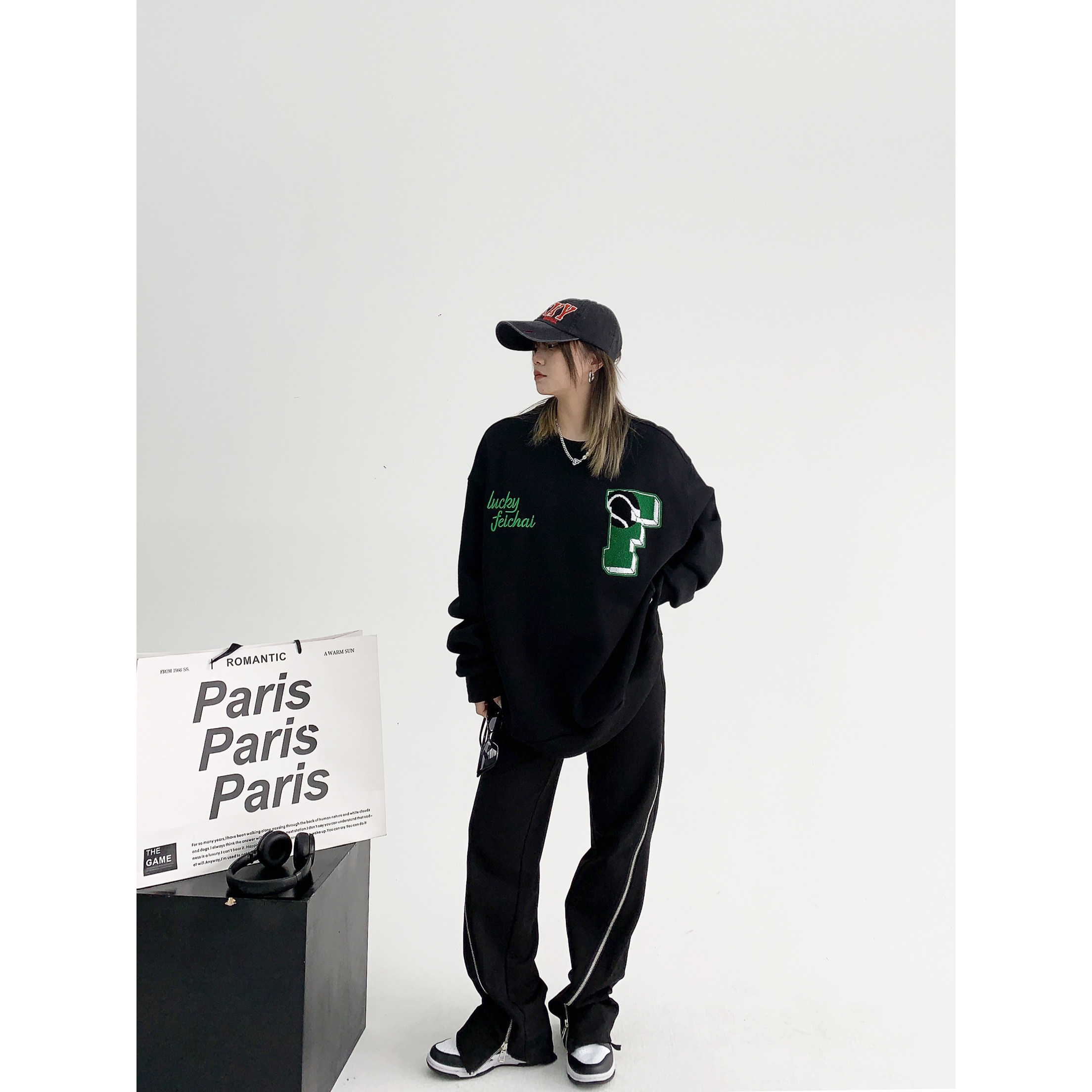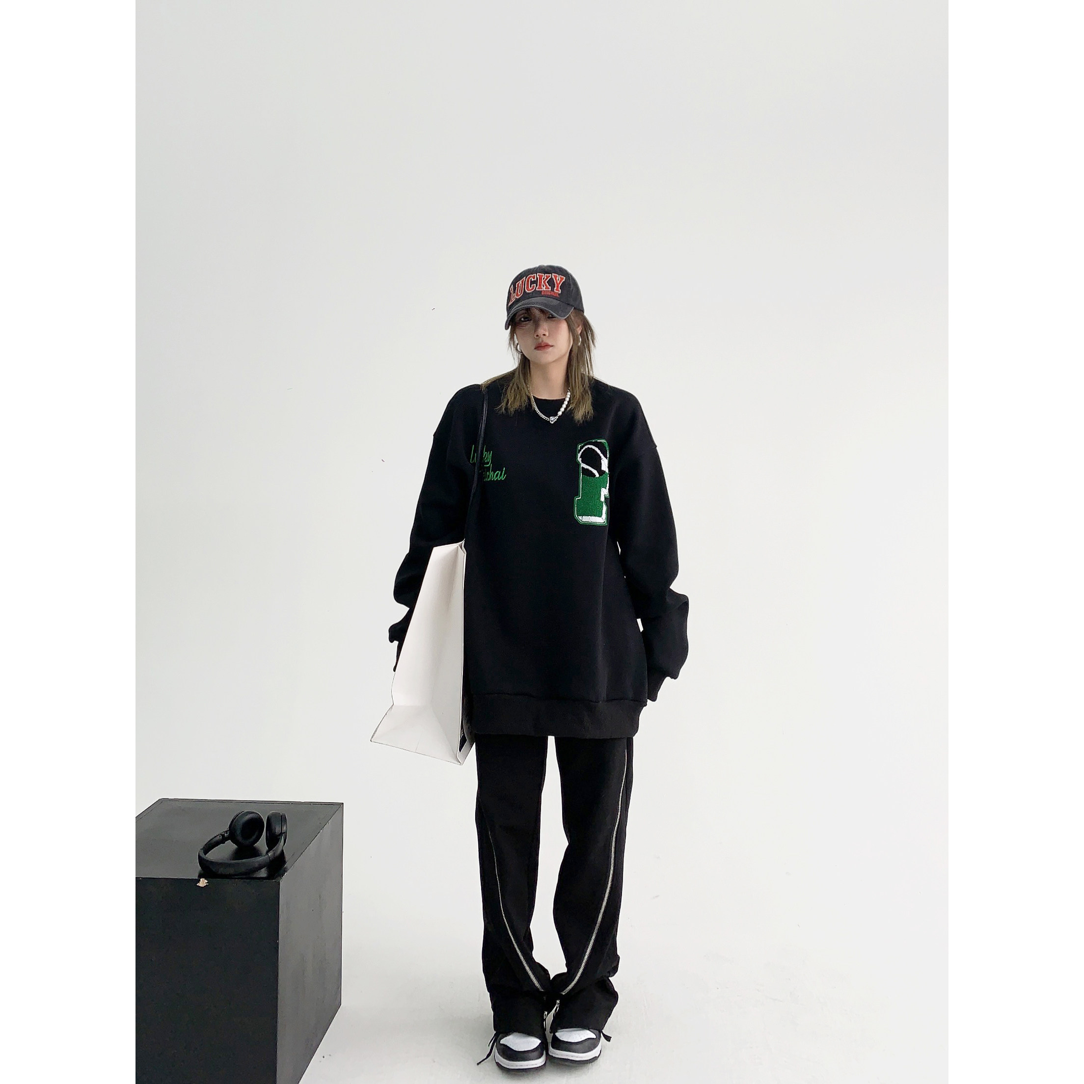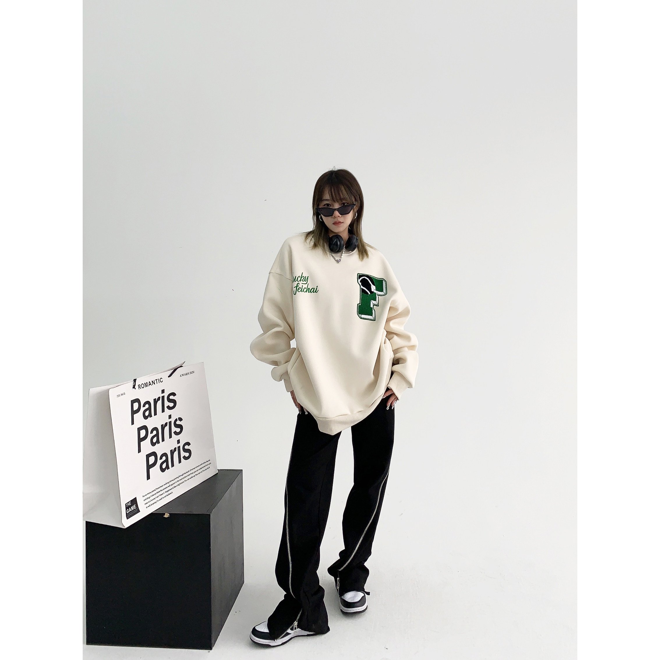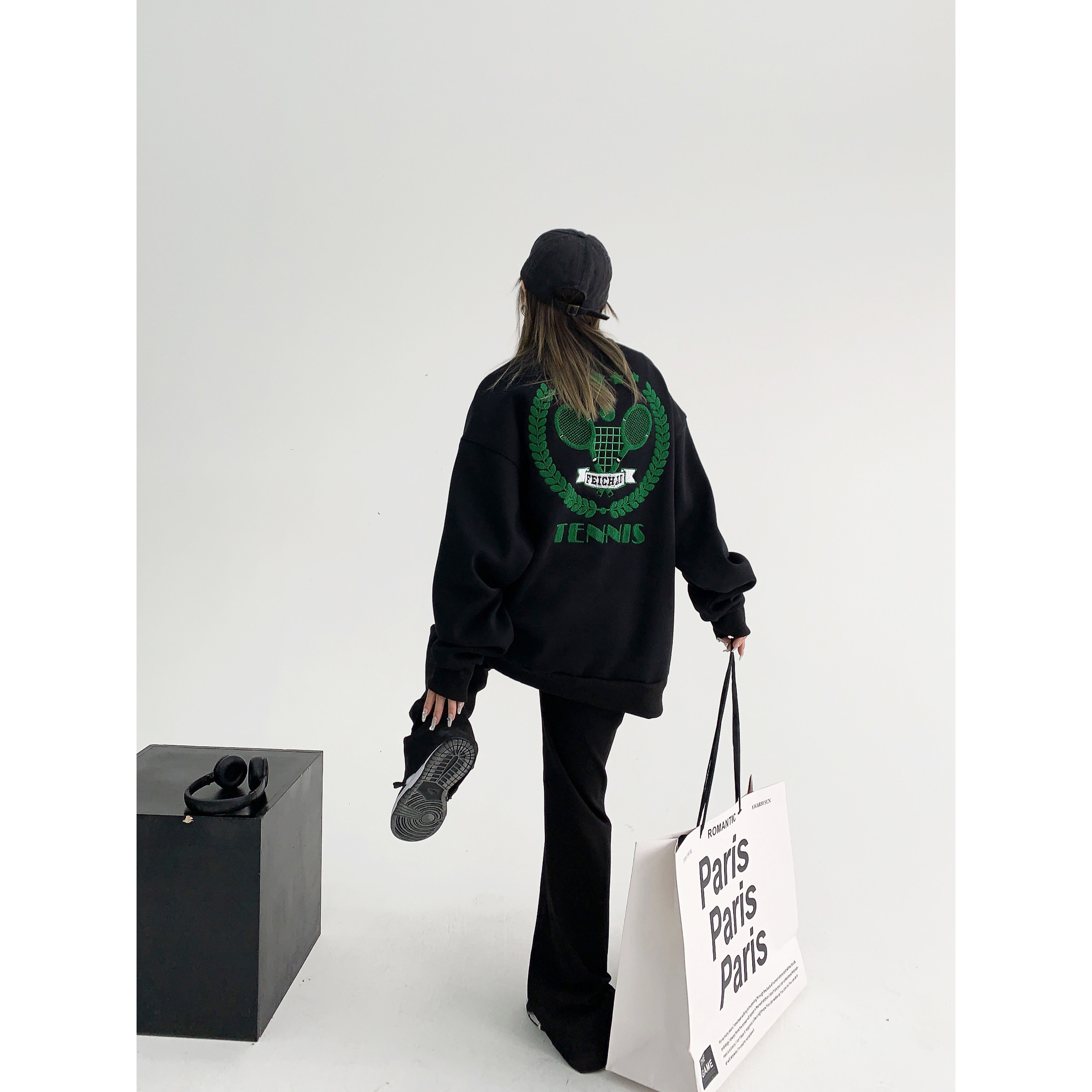 【トップス】アメリカンカジュアル オーバーサイズ 裏起毛 クルーネック 刺繍 スウェットパーカー レディース レトロ風【FCシリーズ】