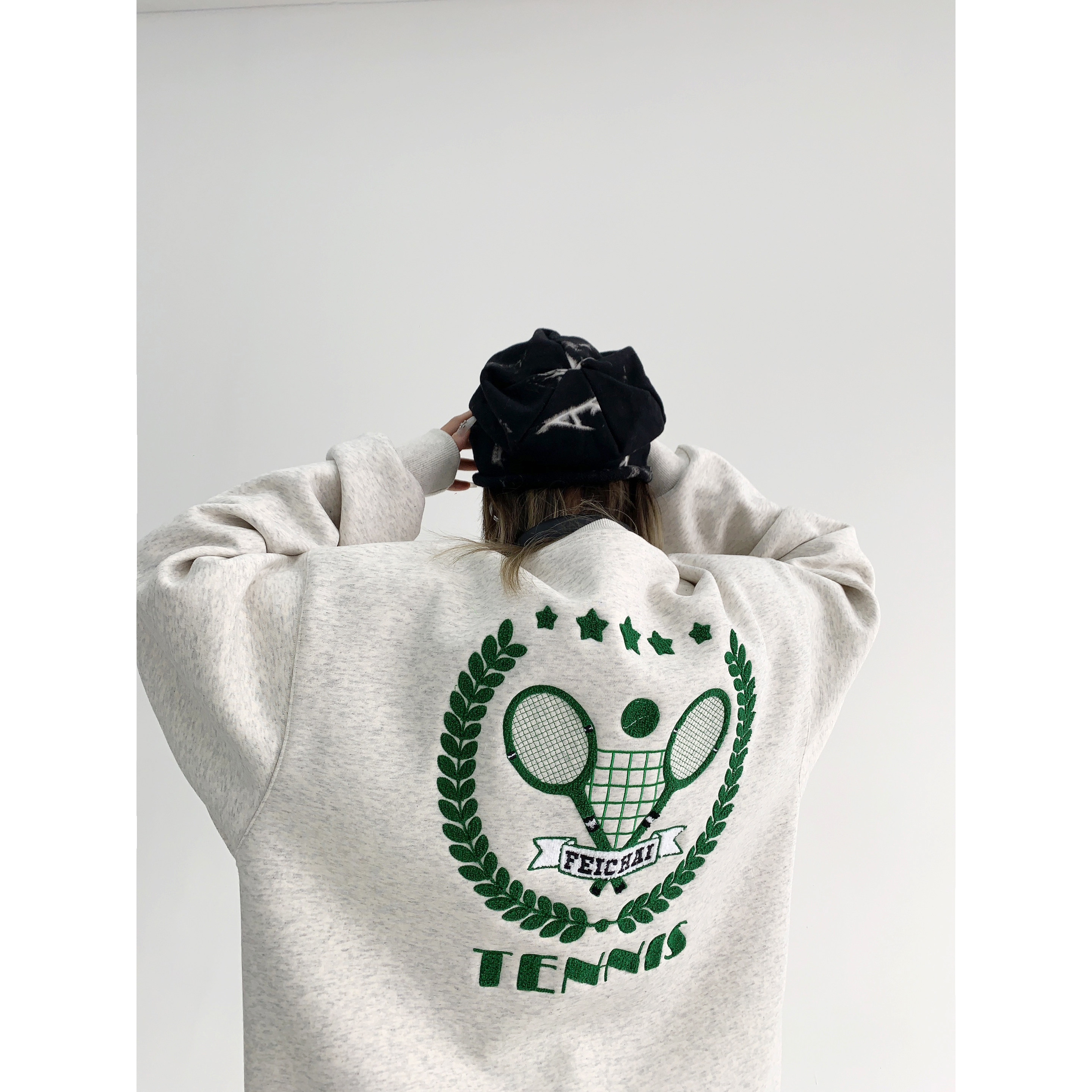 【商品名】【トップス】アメリカンカジュアル オーバーサイズ 裏起毛 クルーネック 刺繍 スウェットパーカー レディース レトロ風【FCシリーズ】