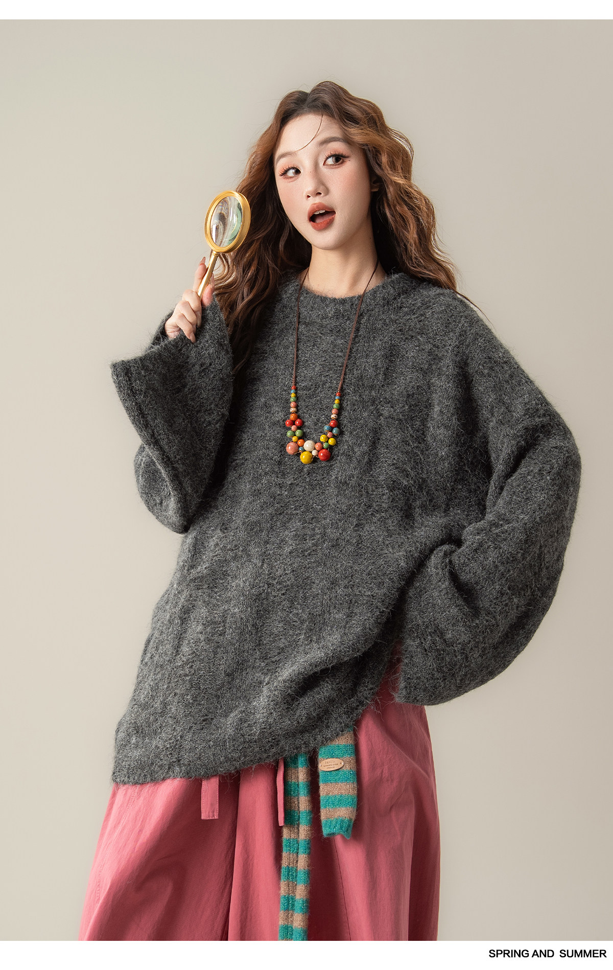 【トップス】ルーズ感 クルーネック ニットセーター レディース やわらか素材 ベーシック【FCシリーズ】