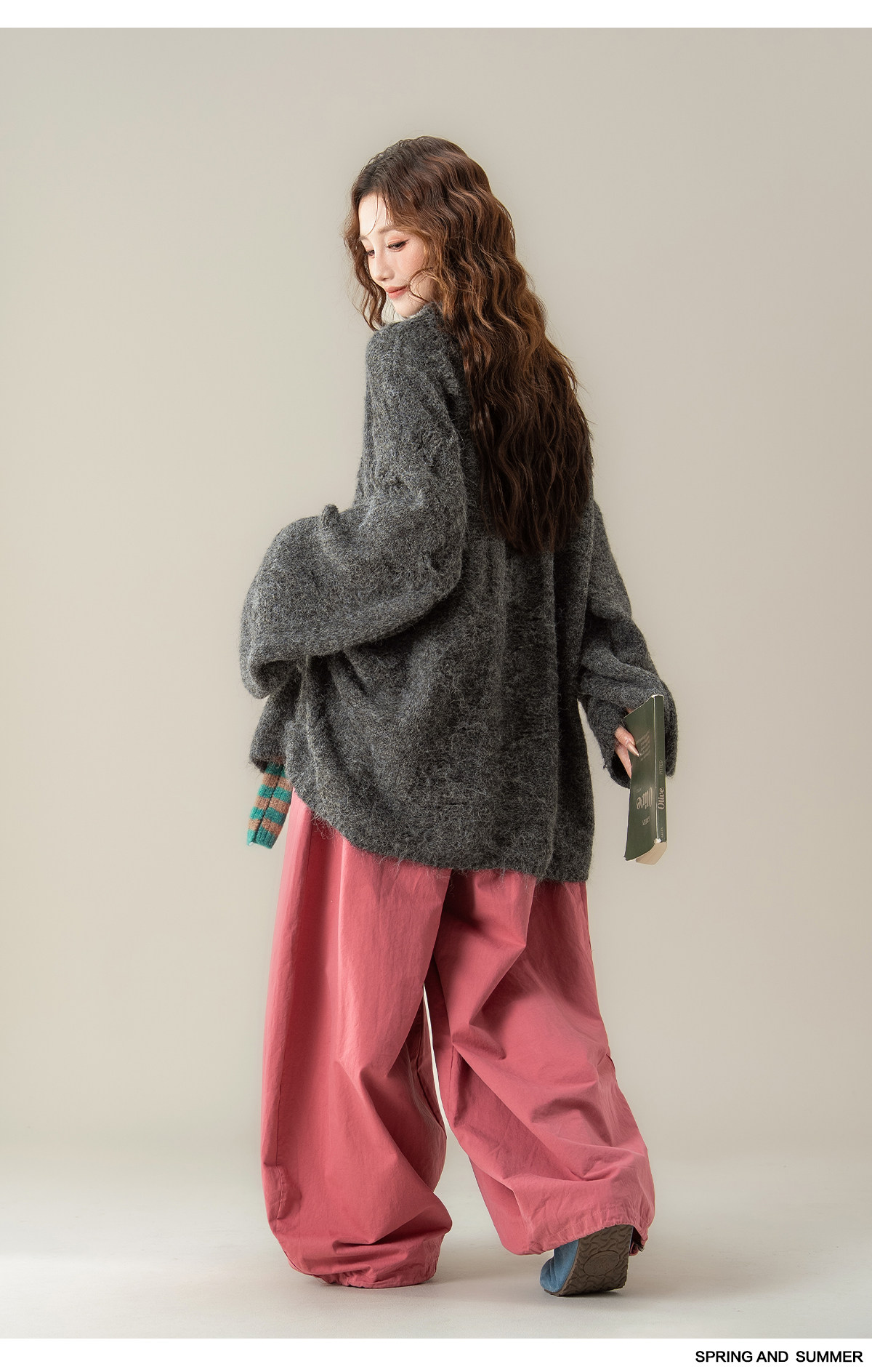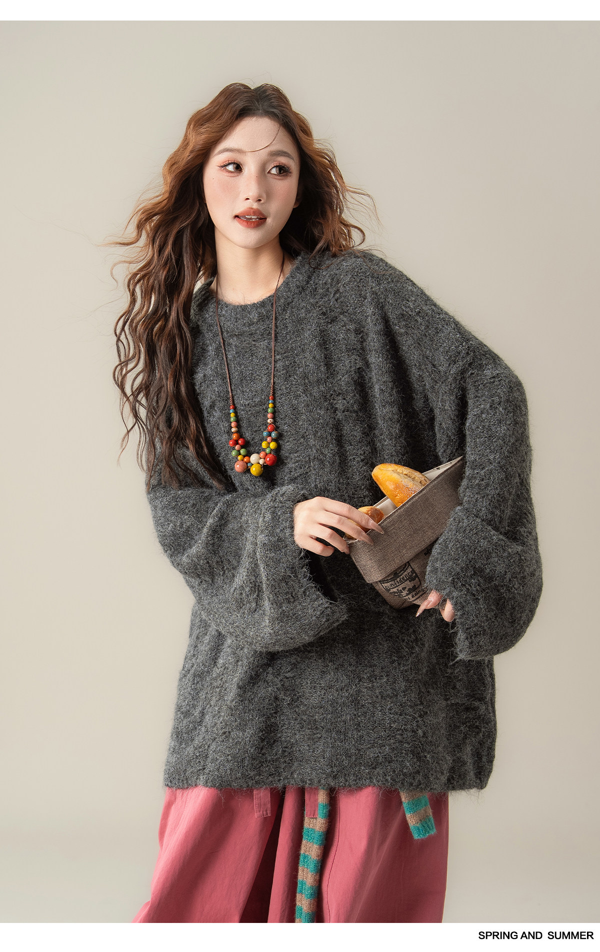 【トップス】アメリカンレトロ トマト柄 クルーネック ニットパーカー レディース 秋 ゆったり 着回し セーター【FCシリーズ】