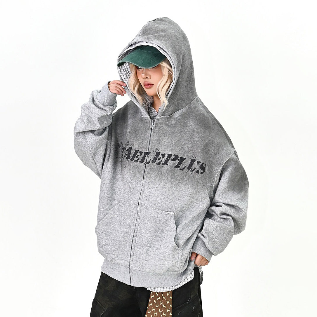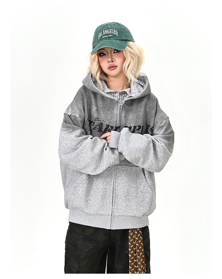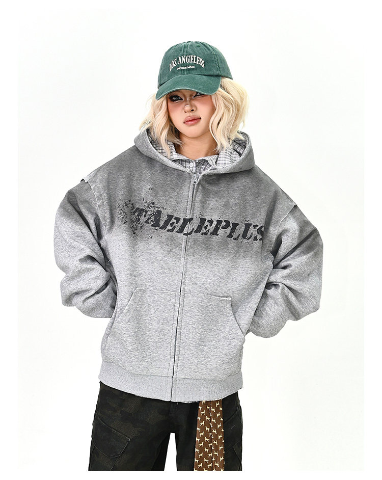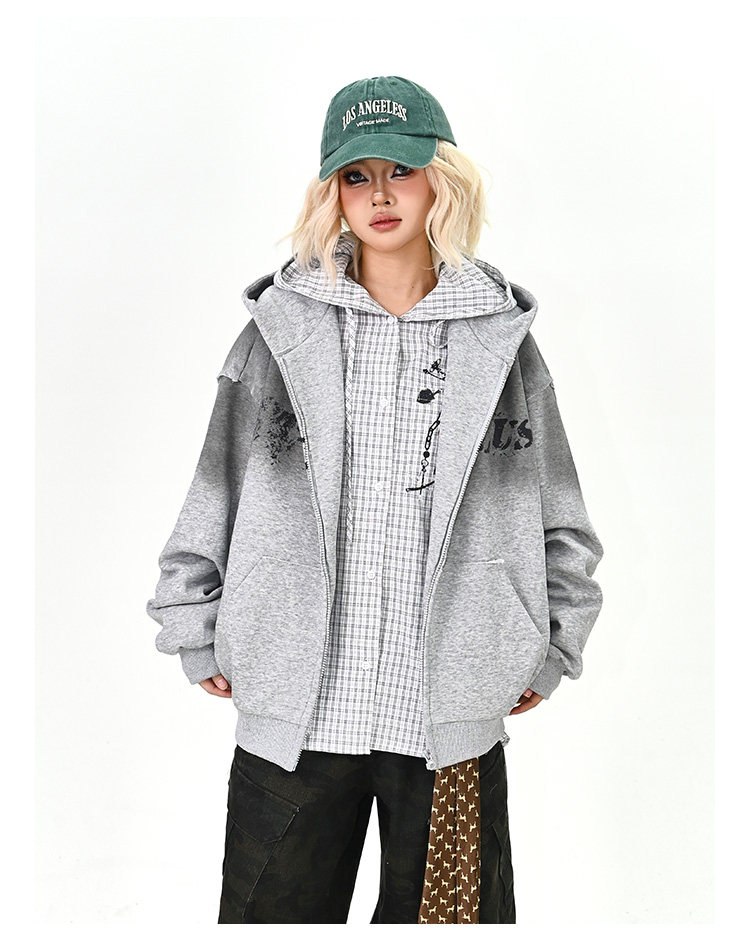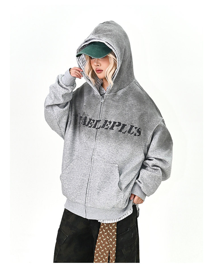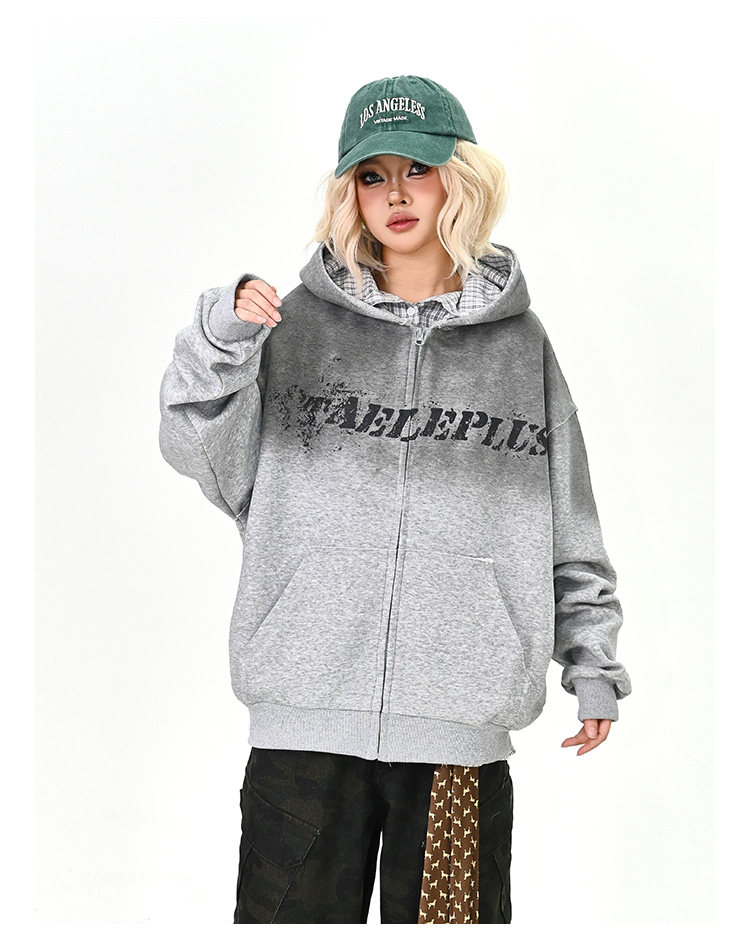 【アウター】グラデーションロゴ フード付きジップパーカーカーディガン 春 新作 ゆったり ユニセックス アメリカンカレッジ【FCシリーズ】