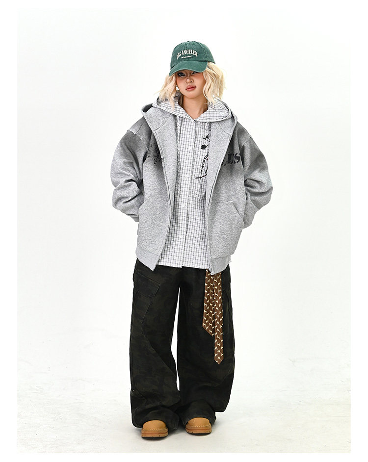 【アウター】アメリカンヴィンテージ レオパード ロゴ ジップアップパーカー ゆったり 男女兼用 カジュアルカーディガン【FCシリーズ】