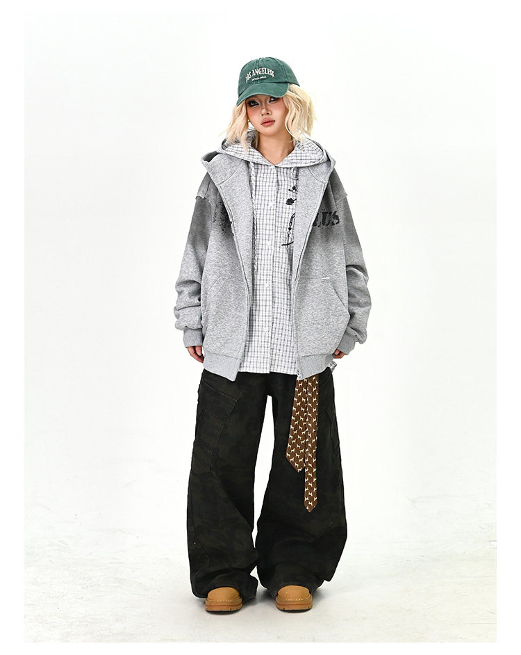 【トップス】アメリカンレトロ デザイン フードパーカー 春 男女兼用 ゆったり カジュアル 着回し アウター【FCシリーズ】