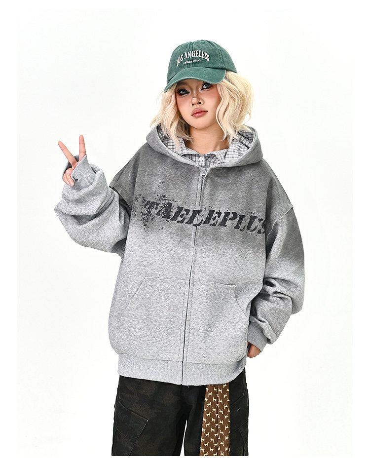 【商品名】【アウター】グラデーションロゴ フード付きジップパーカーカーディガン 春 新作 ゆったり ユニセックス アメリカンカレッジ【FCシリーズ】