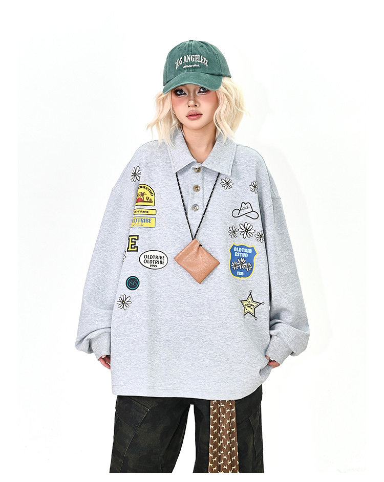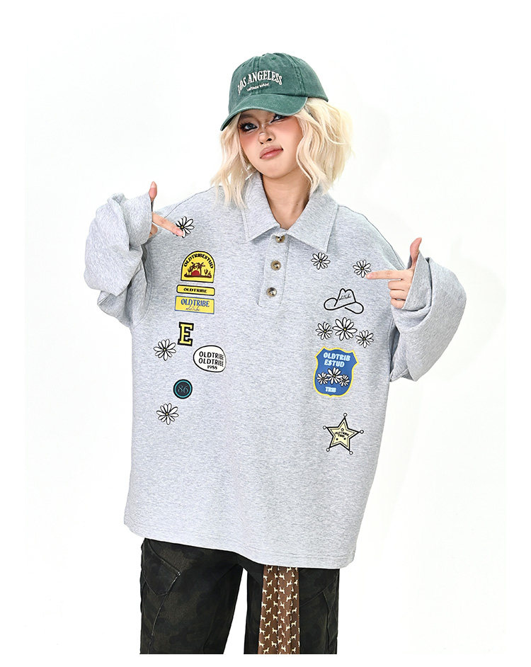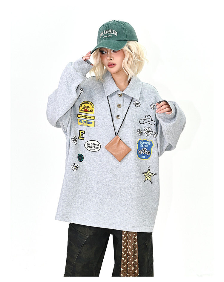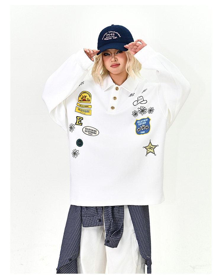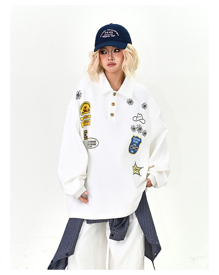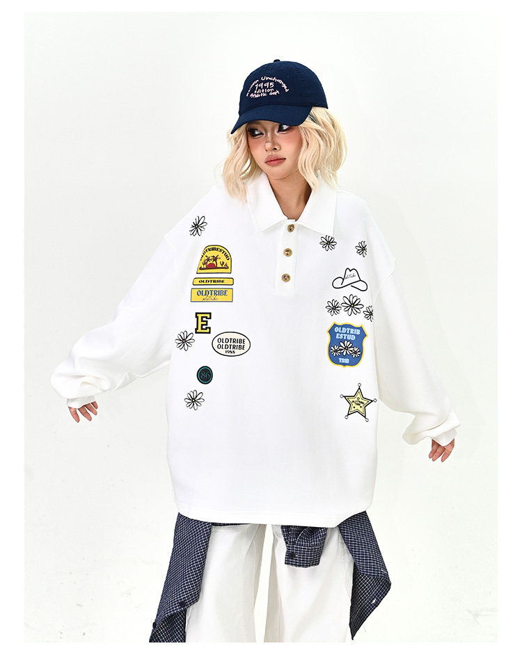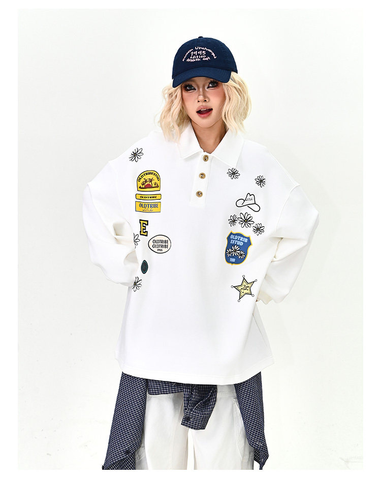 【商品名】【トップス】ワッペンPOLOスウェット 春新作 ゆったり アメリカンカレッジ 男女兼用 パーカー【FCシリーズ】