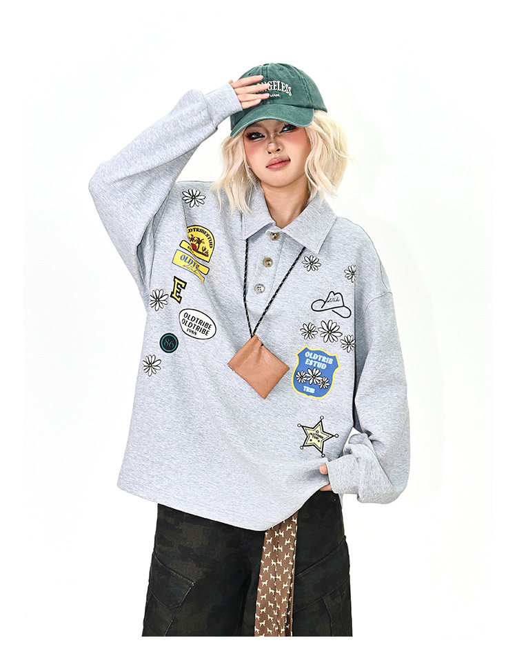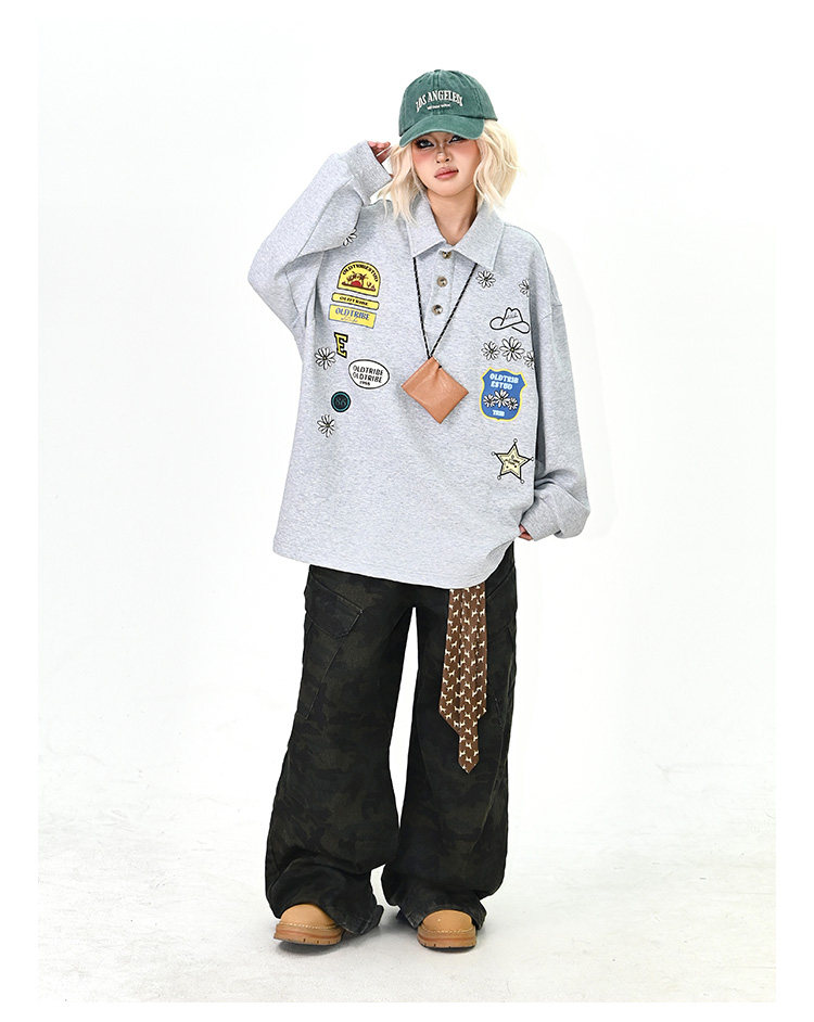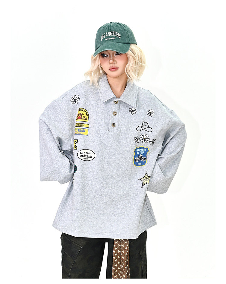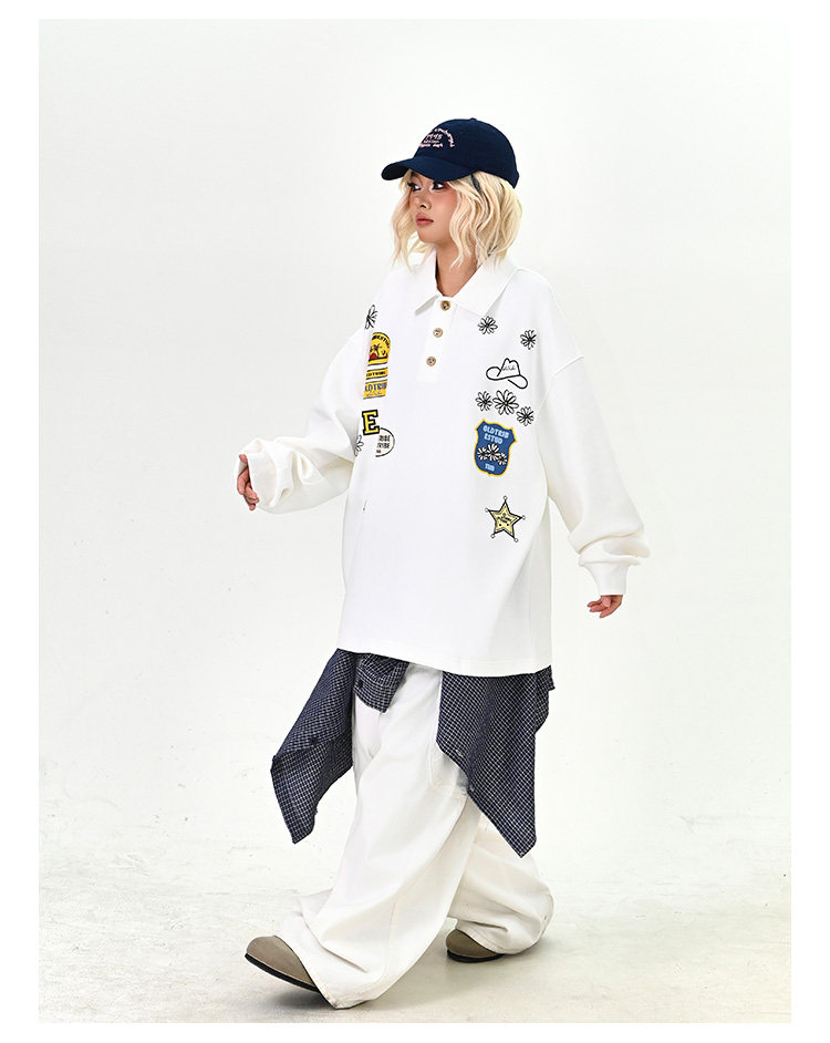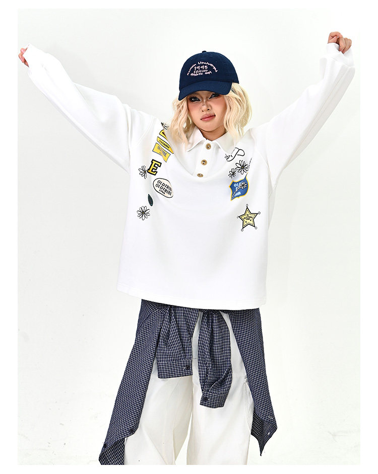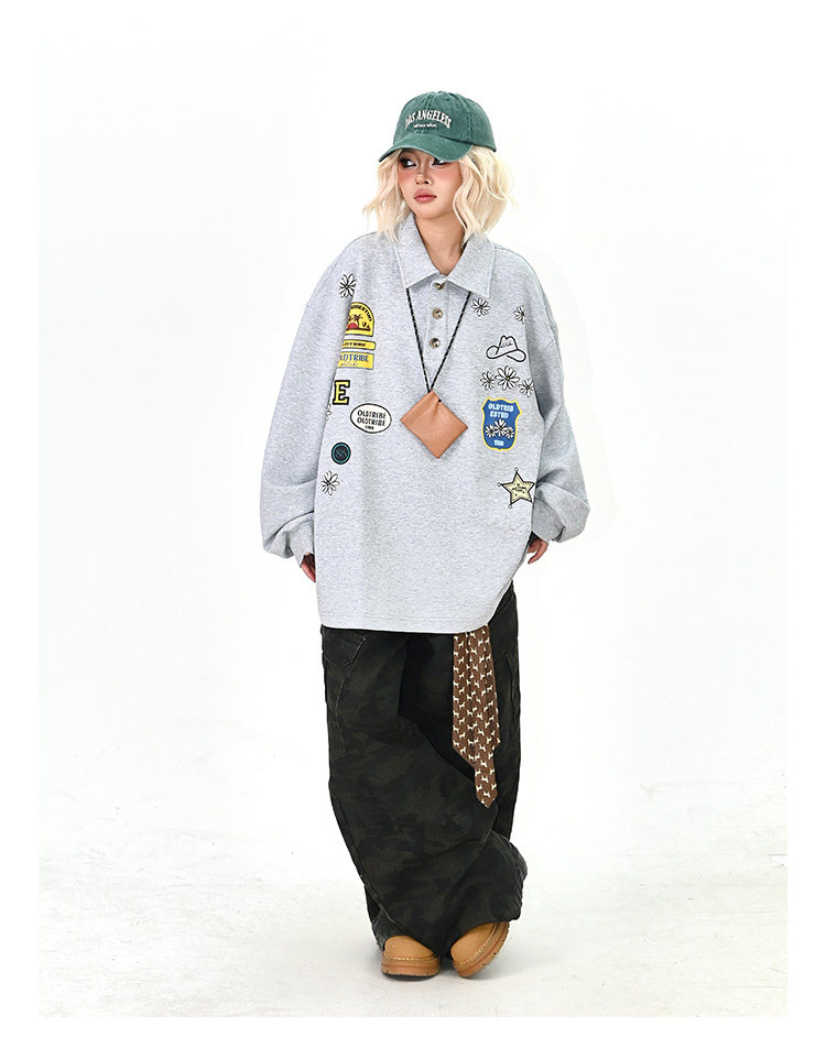 【商品名】【トップス】ワッペンPOLOスウェット 春新作 ゆったり アメリカンカレッジ 男女兼用 パーカー【FCシリーズ】