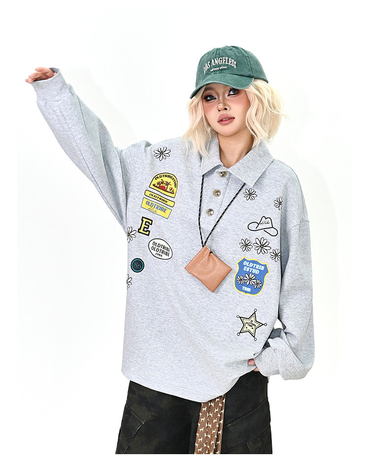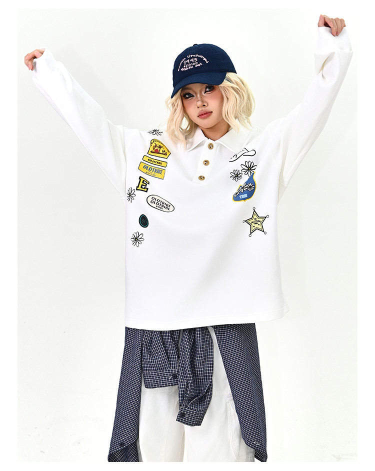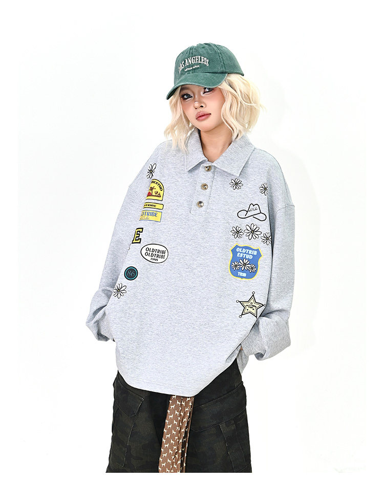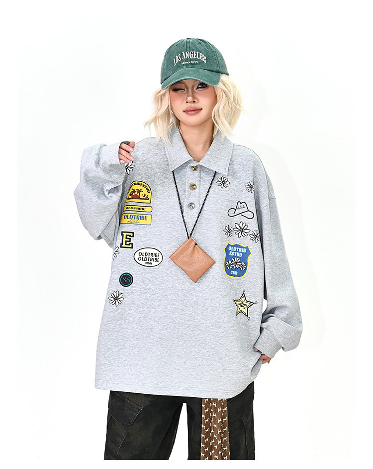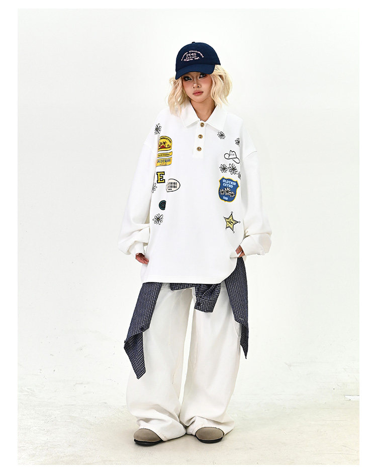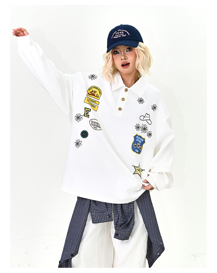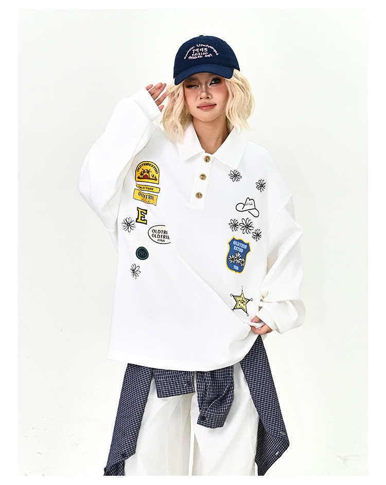 【商品名】【トップス】ワッペンPOLOスウェット 春新作 ゆったり アメリカンカレッジ 男女兼用 パーカー【FCシリーズ】