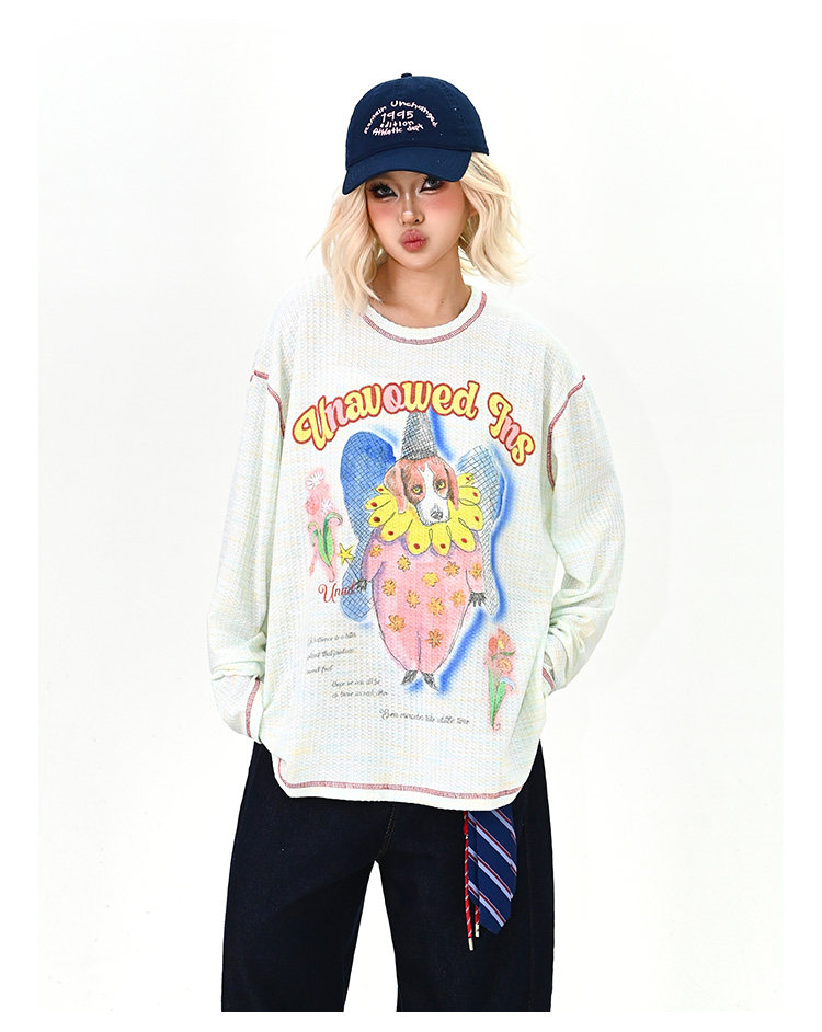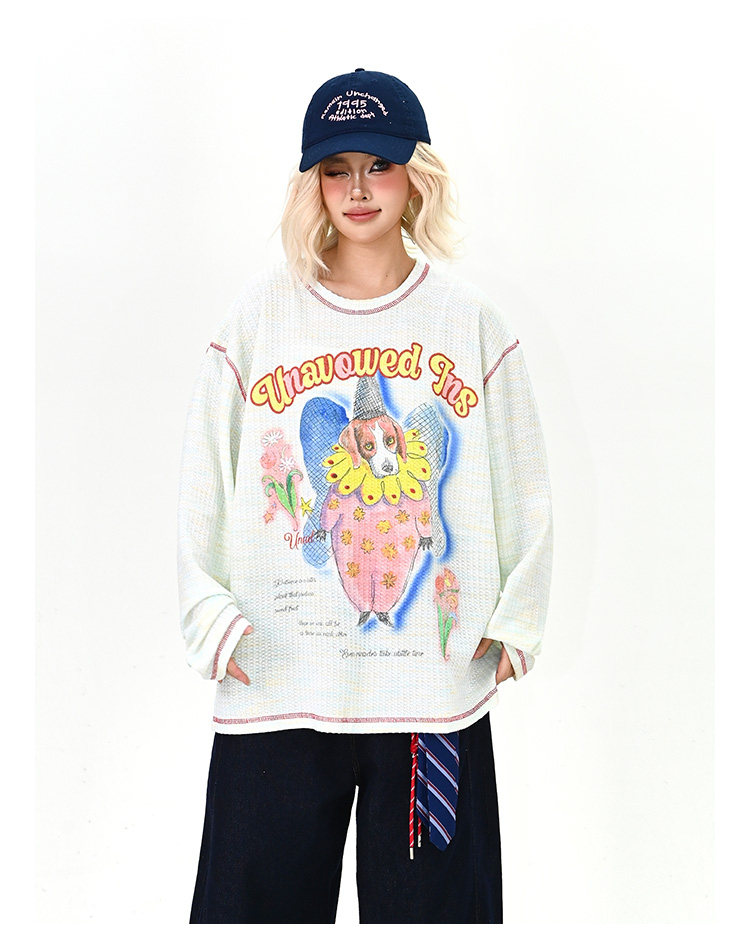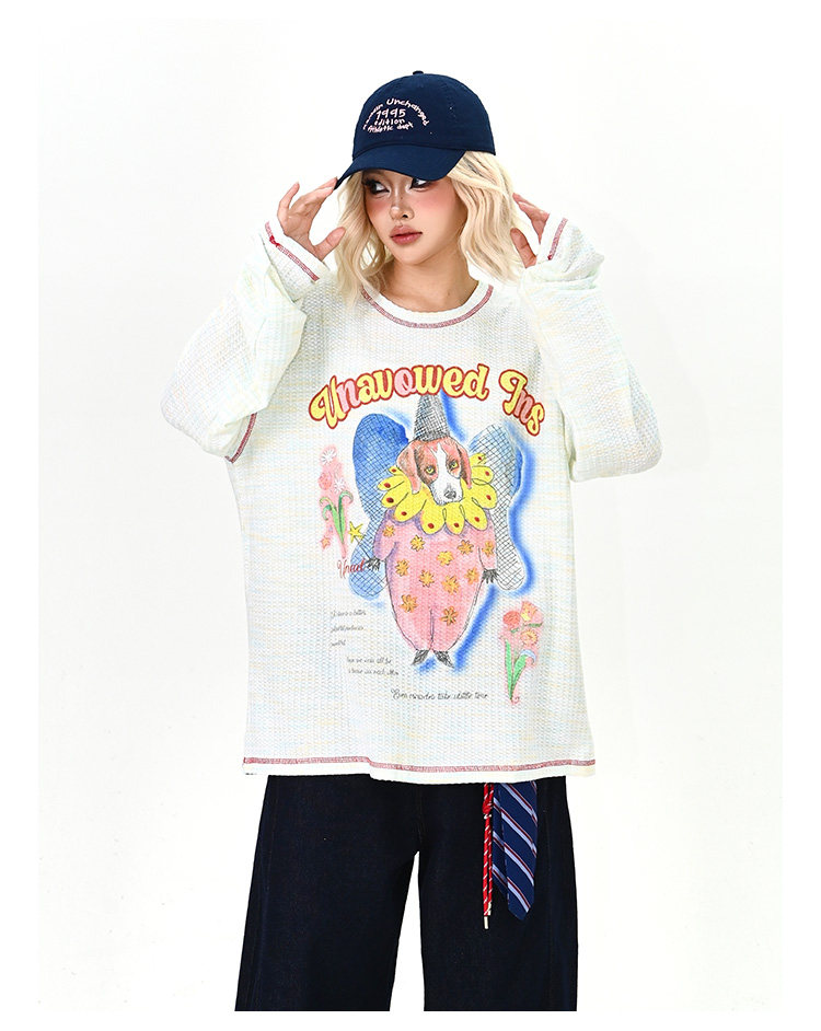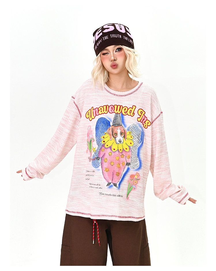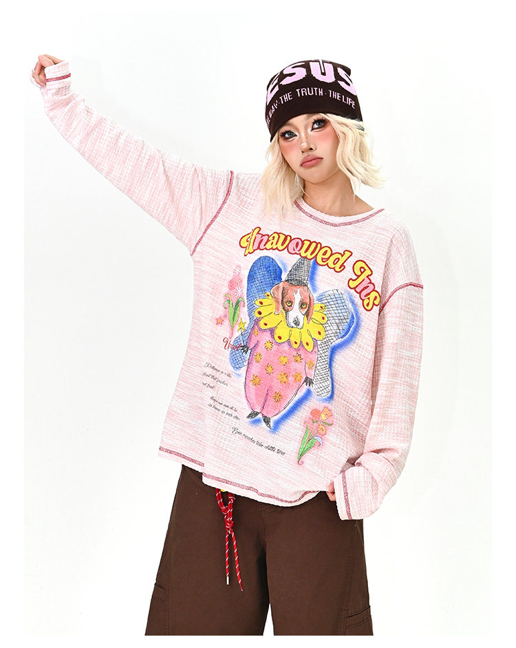 【トップス】ドーパミン アニメプリント 長袖Tシャツ オーバーサイズ ストリート系 ユニセックス【FCシリーズ】