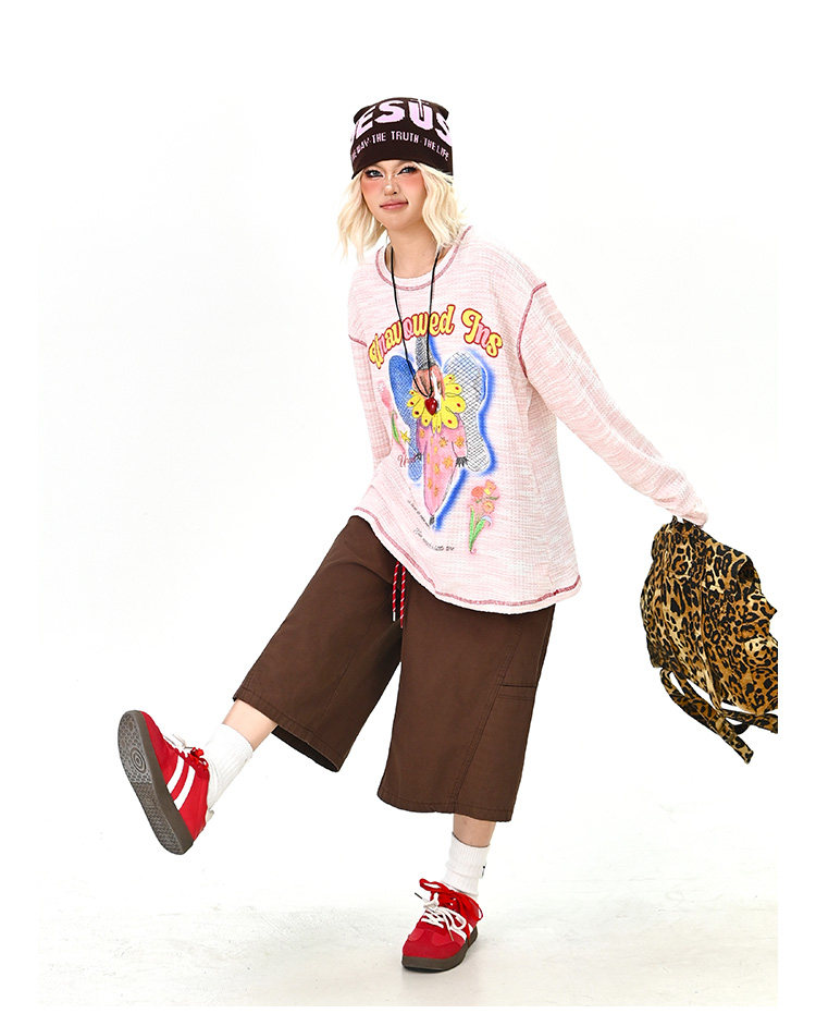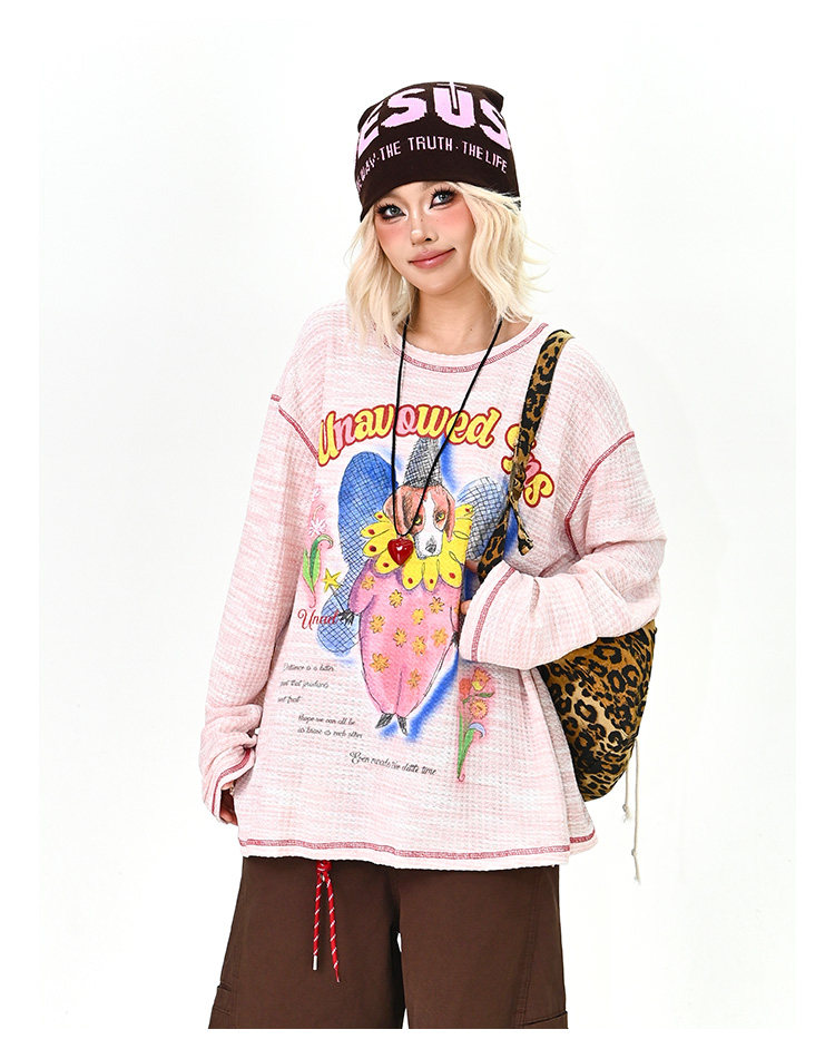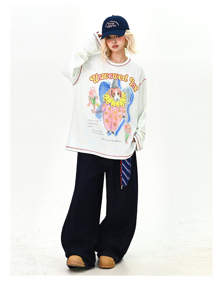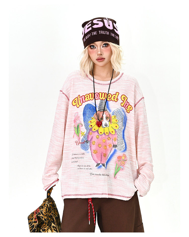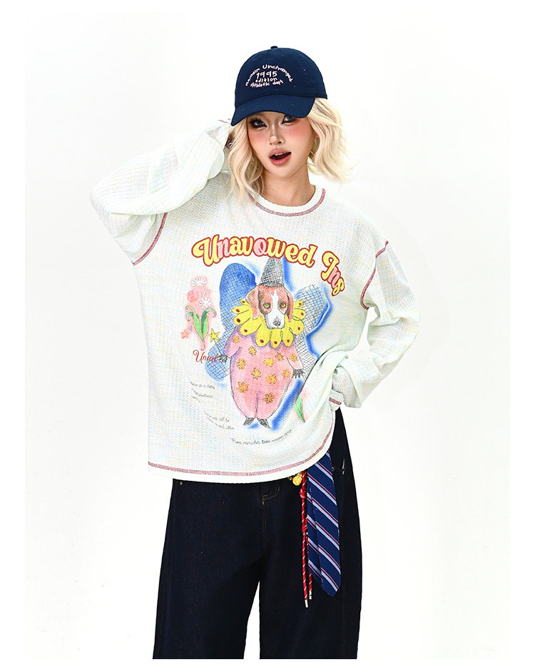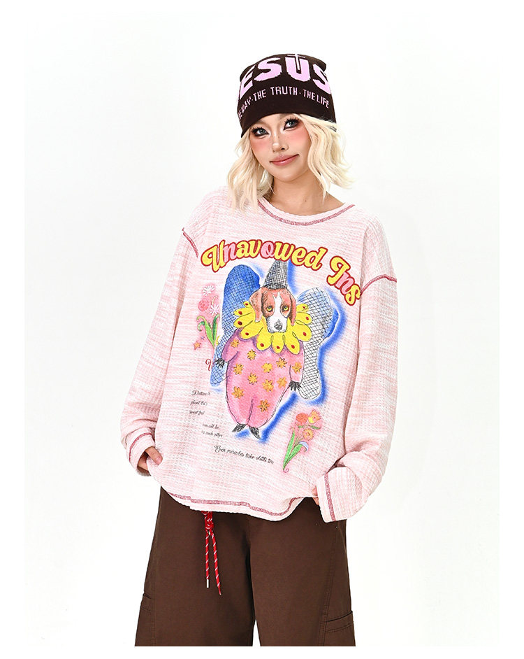 【トップス】ドーパミン アニメプリント 長袖Tシャツ オーバーサイズ ストリート系 ユニセックス【FCシリーズ】
