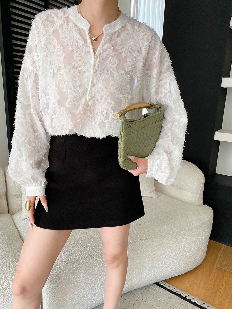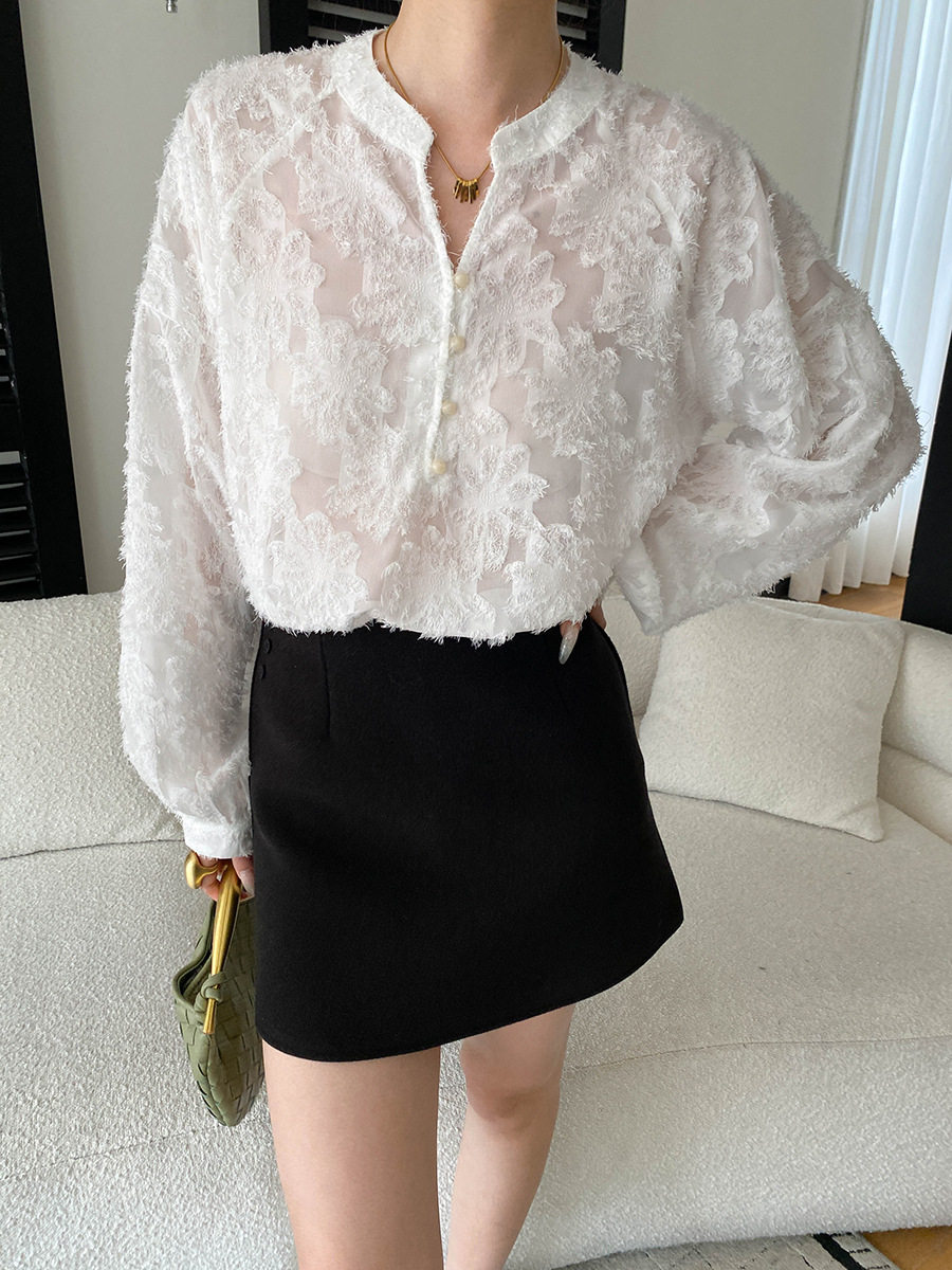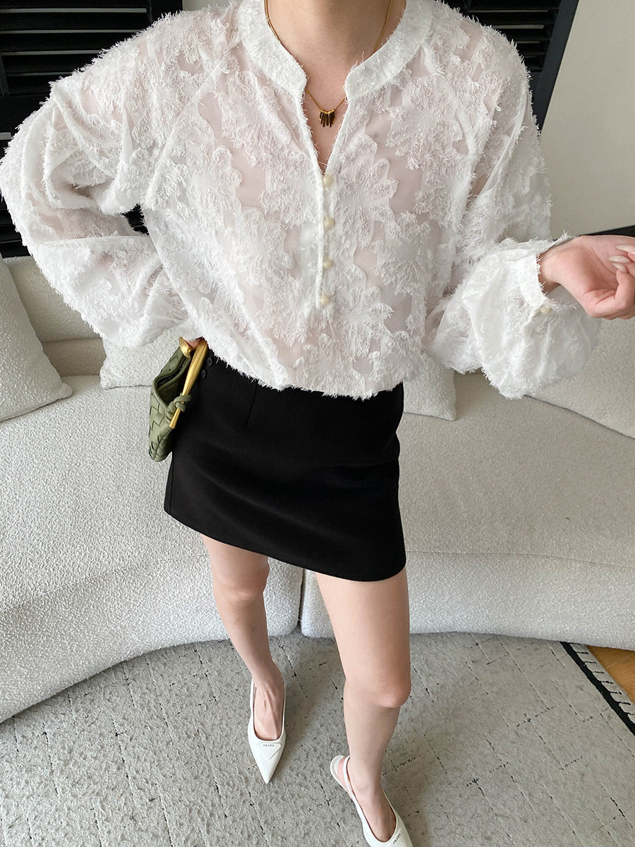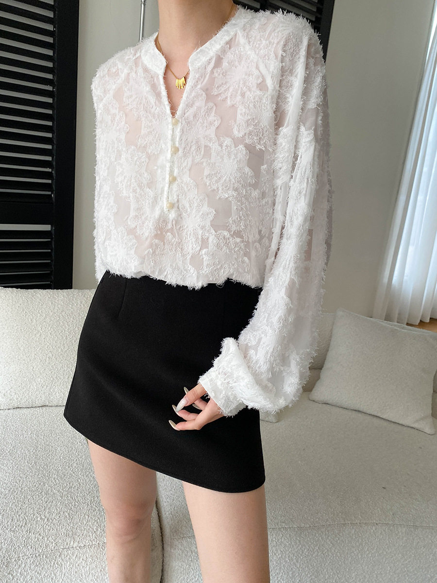 【トップス】カットワーク Vネック フレンチ フレンチ ブラウス 【SNシリーズ】