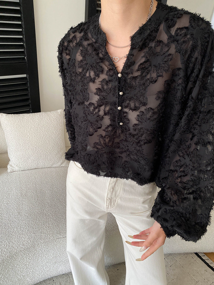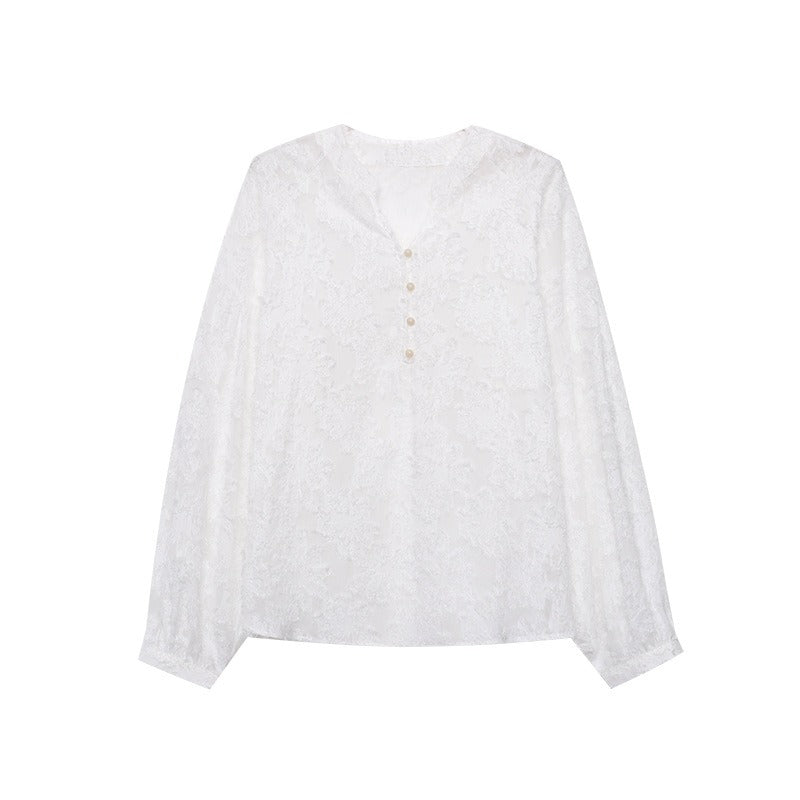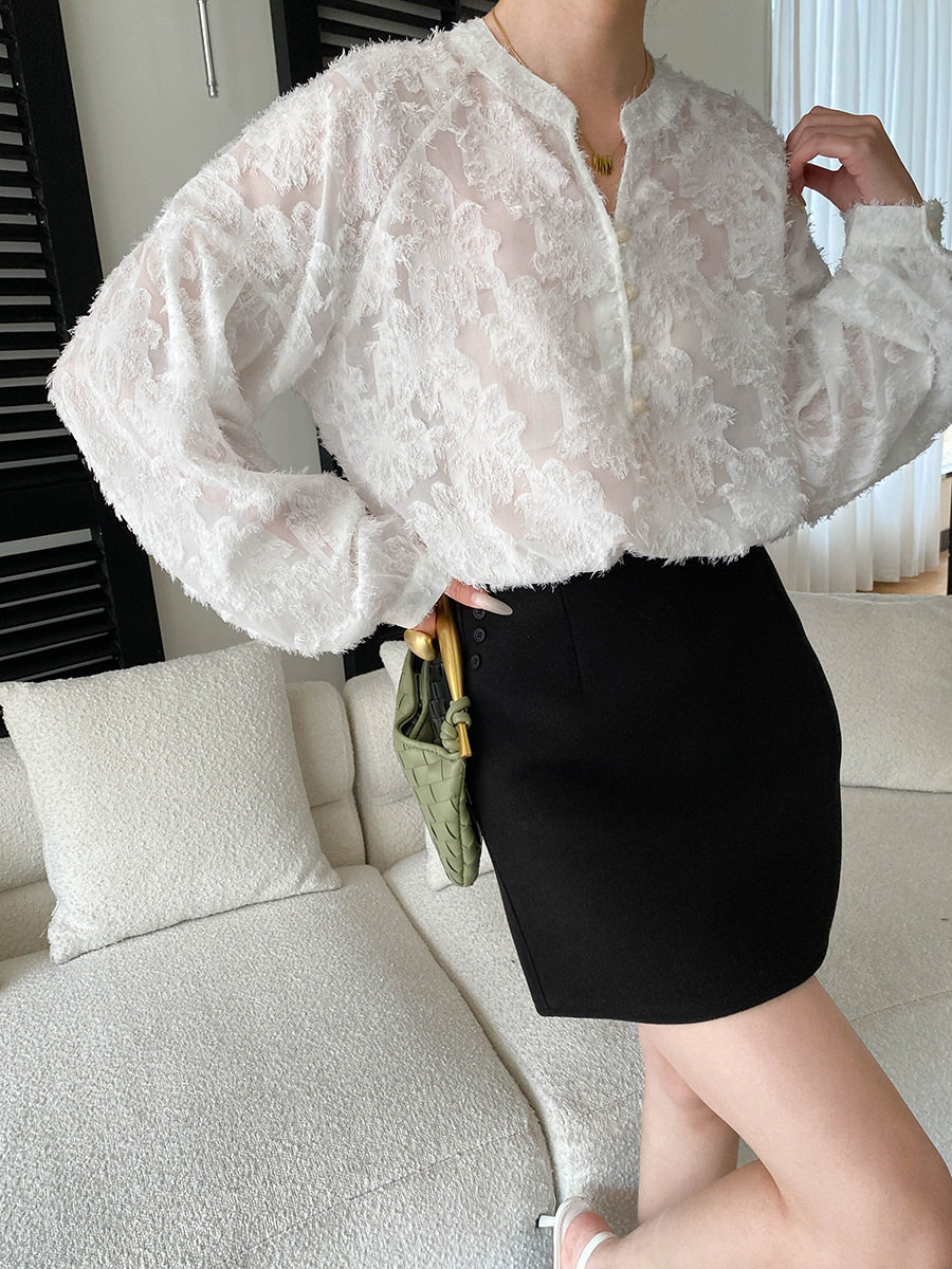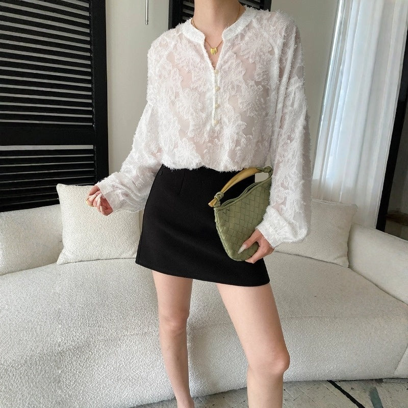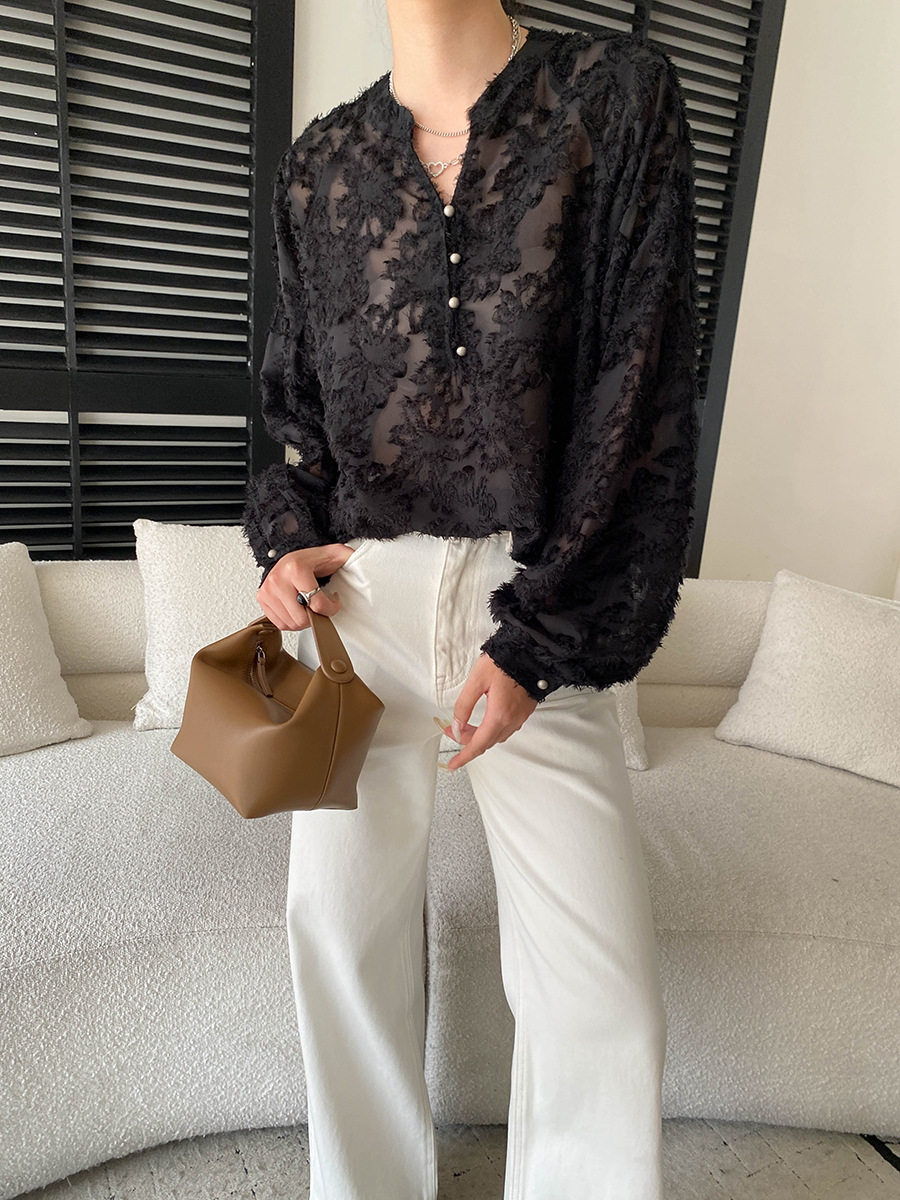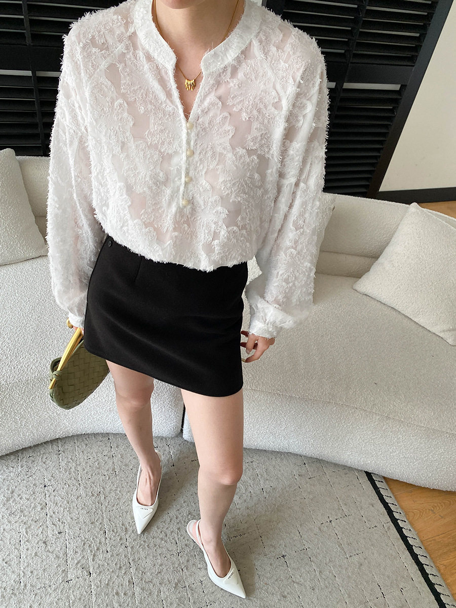 【トップス】カットワーク Vネック フレンチ フレンチ ブラウス 【SNシリーズ】