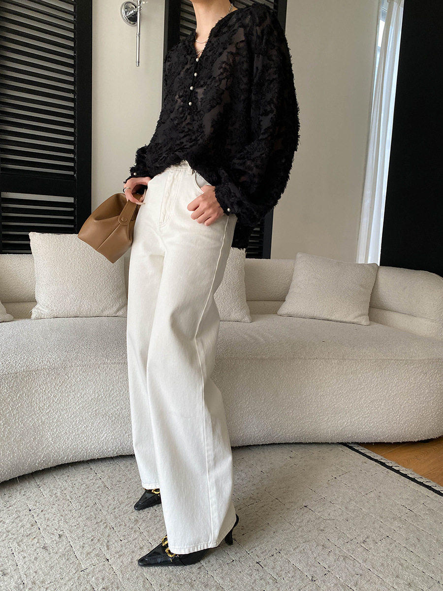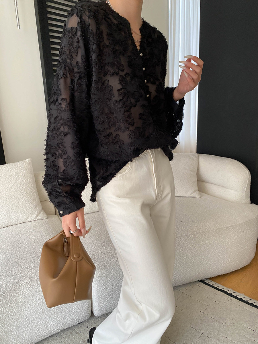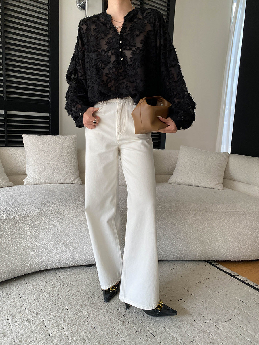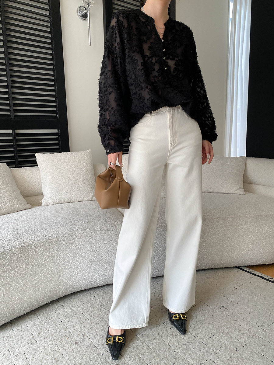 【トップス】カットワーク Vネック フレンチ フレンチ ブラウス 【SNシリーズ】