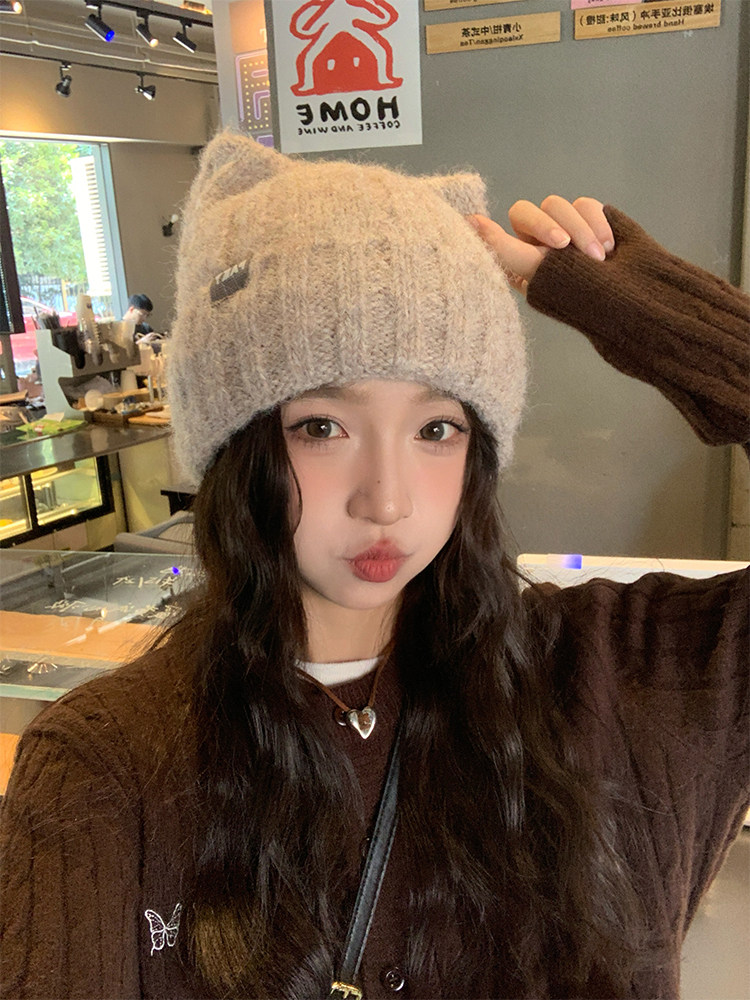 【グッズ】猫耳ニット帽 秋冬 レディース 新作 保温 可愛い 韓国カジュアル ハット