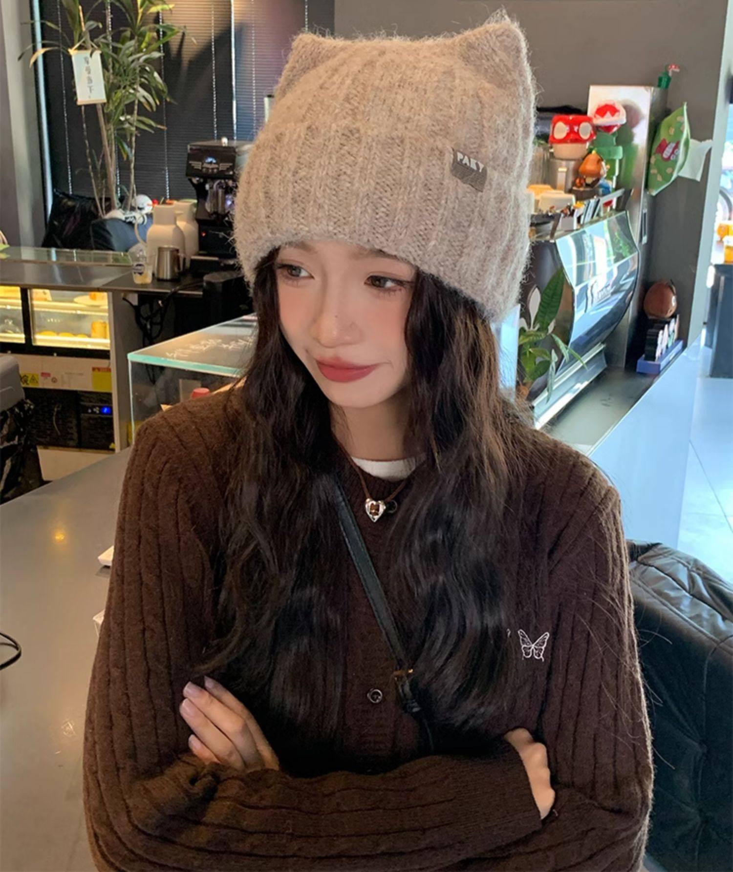 【商品名】【グッズ】猫耳ニット帽 秋冬 レディース 新作 保温 可愛い 韓国カジュアル ハット