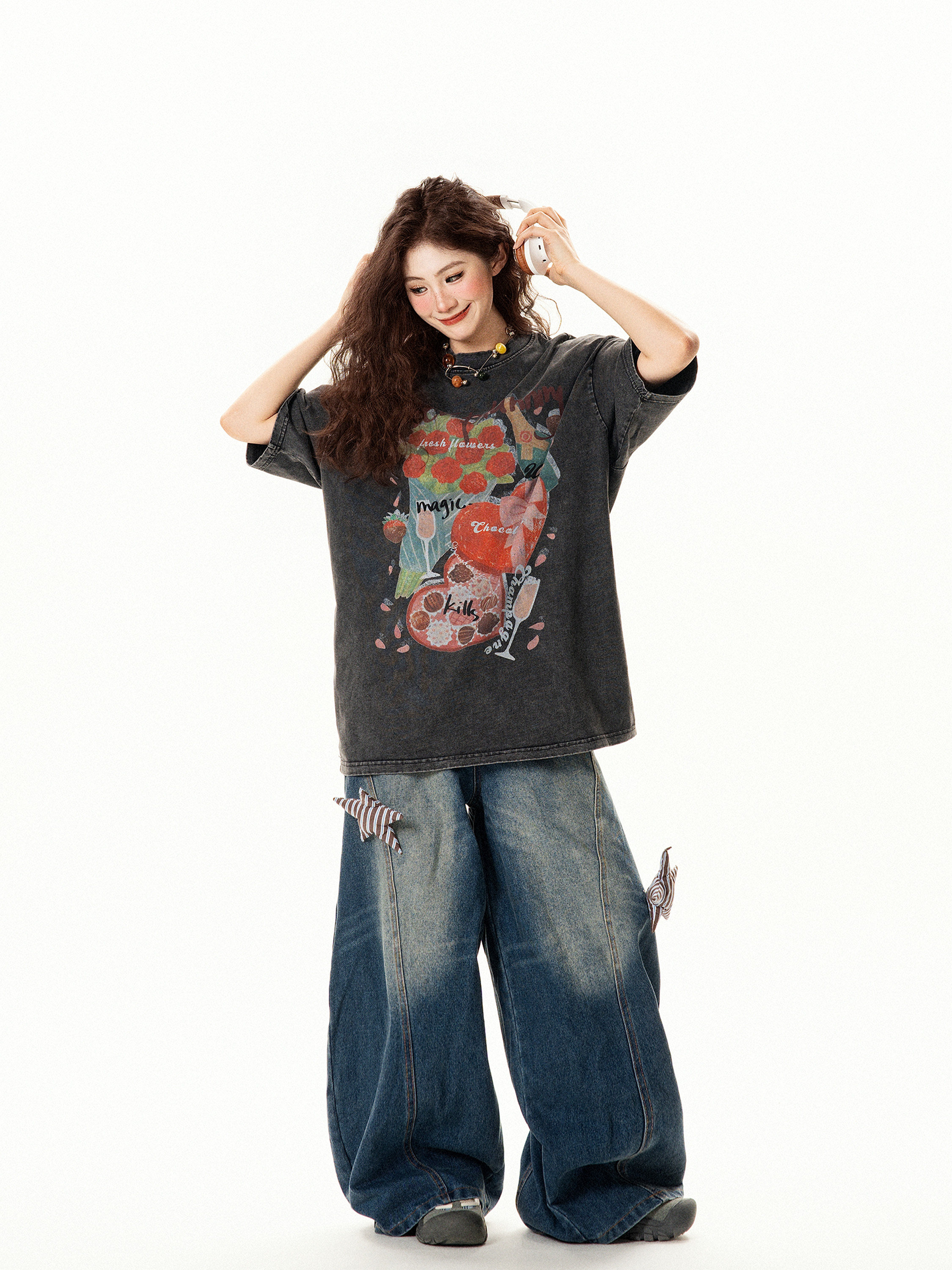 【トップス】アメリカンレトロ デザイン感 花柄 半袖Tシャツ レディース 夏 ゆったり 小洒落カジュアル【FCシリーズ】【15〜20日発送】