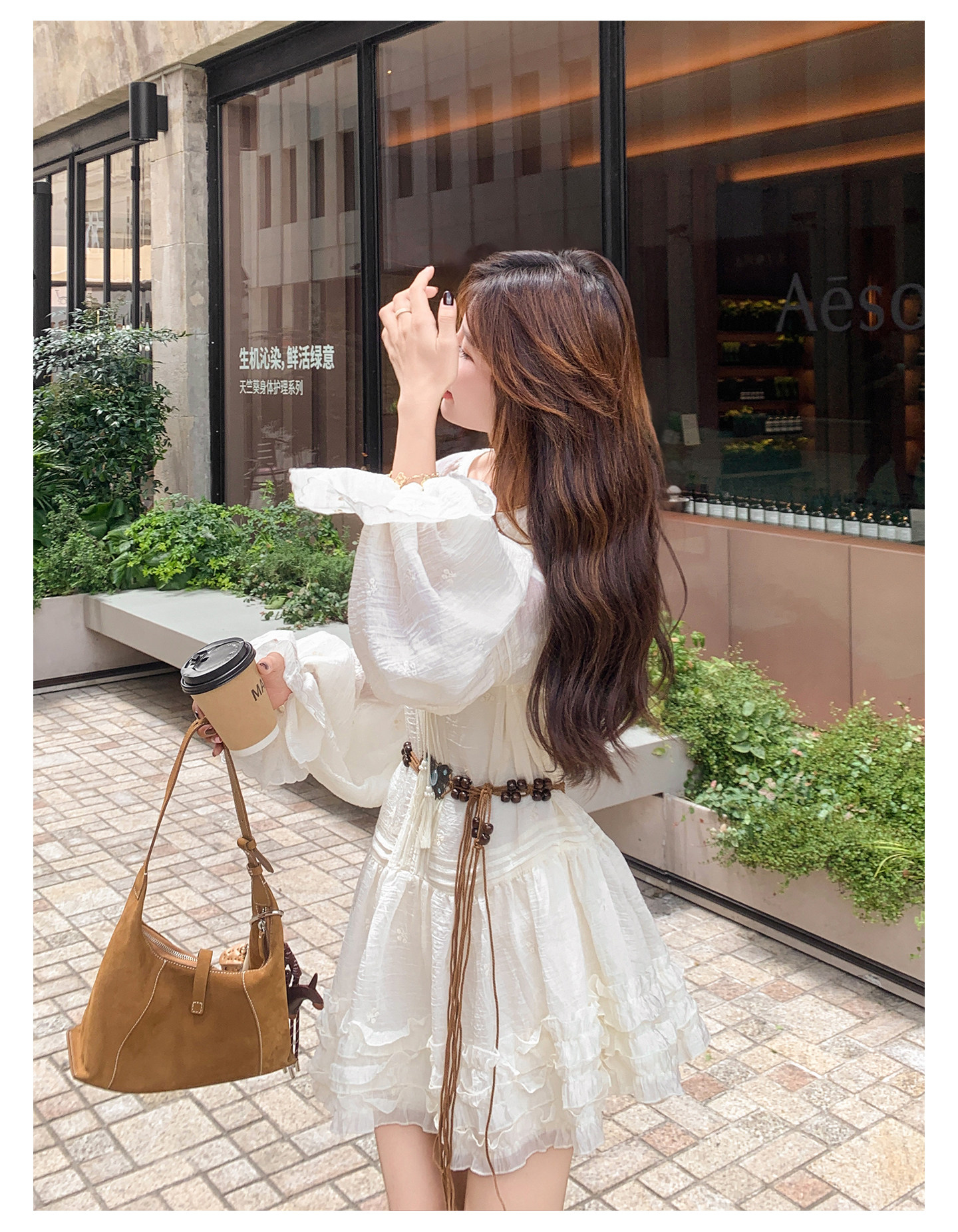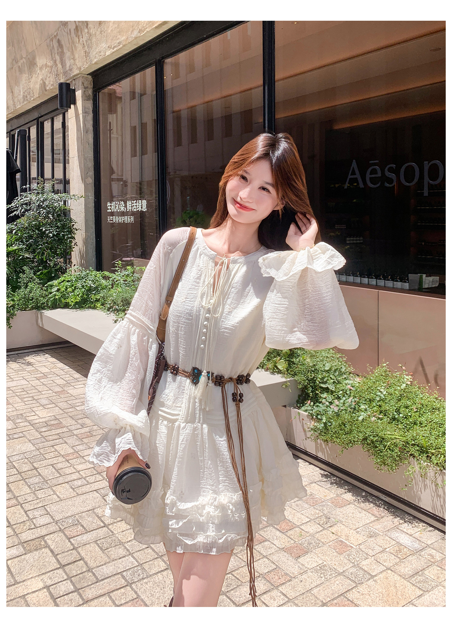 【商品名】【ワンピース】スウィート 若見え フリル フレアスリーブ 合わせやすい 長袖ワンピース【JZシリーズ】