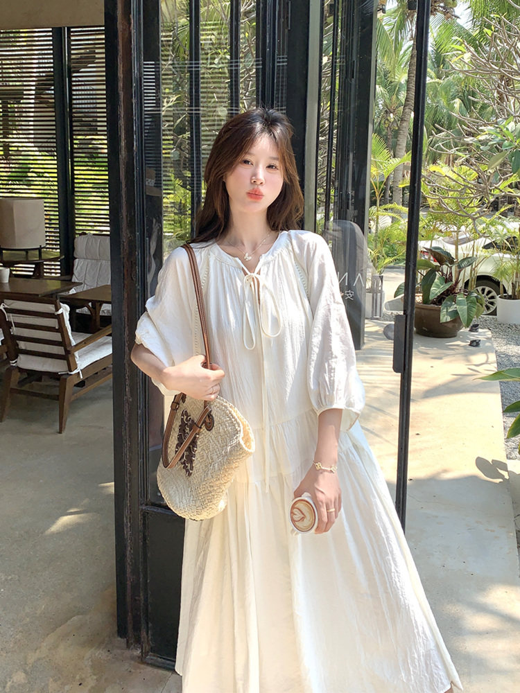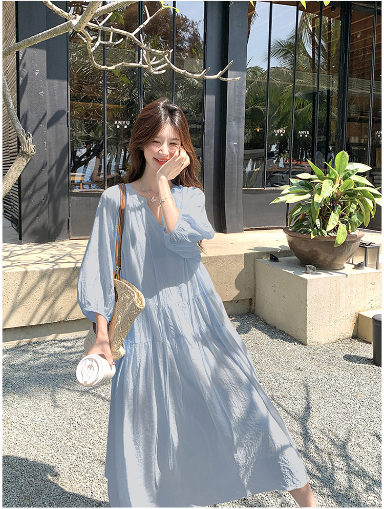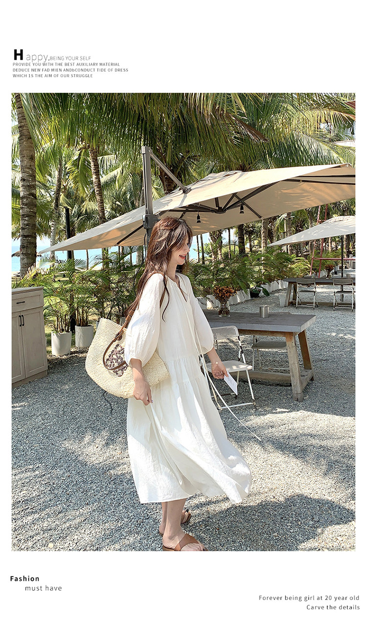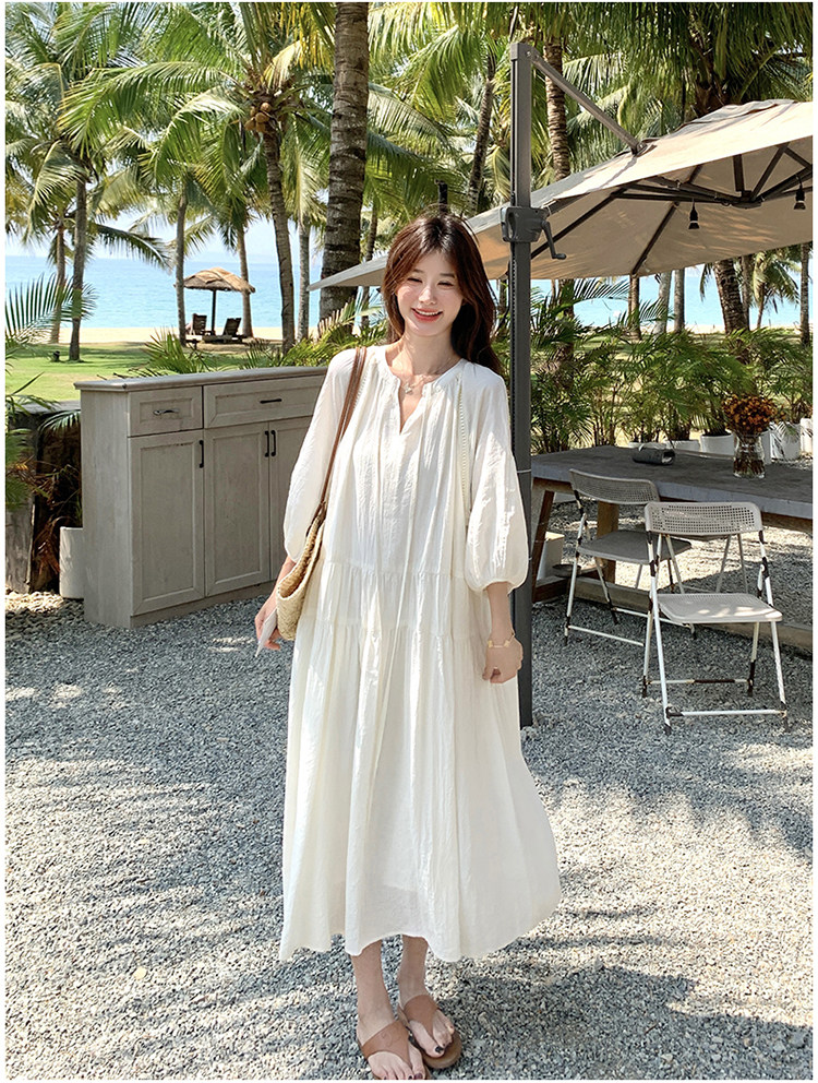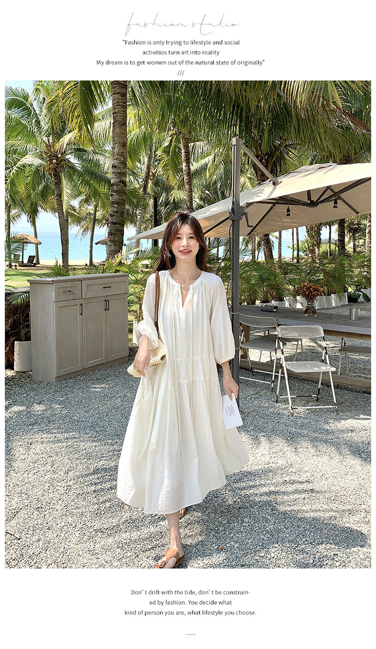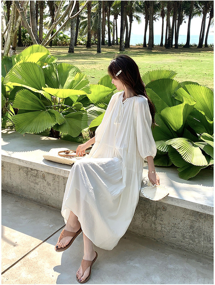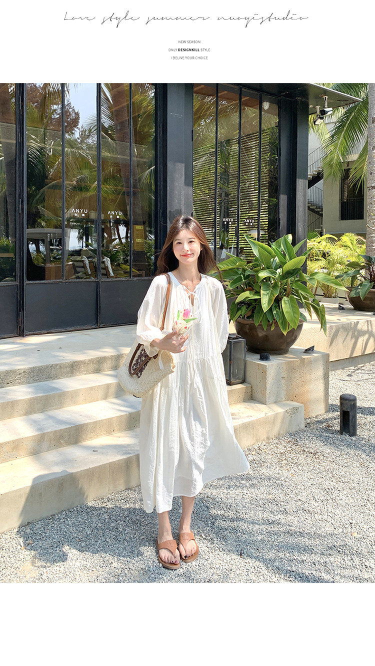 【商品名】【ワンピース】優しい 上品 リゾート風 ゆったり 合わせやすい 長袖ワンピース【JZシリーズ】