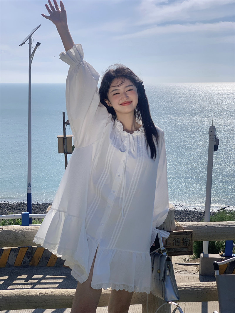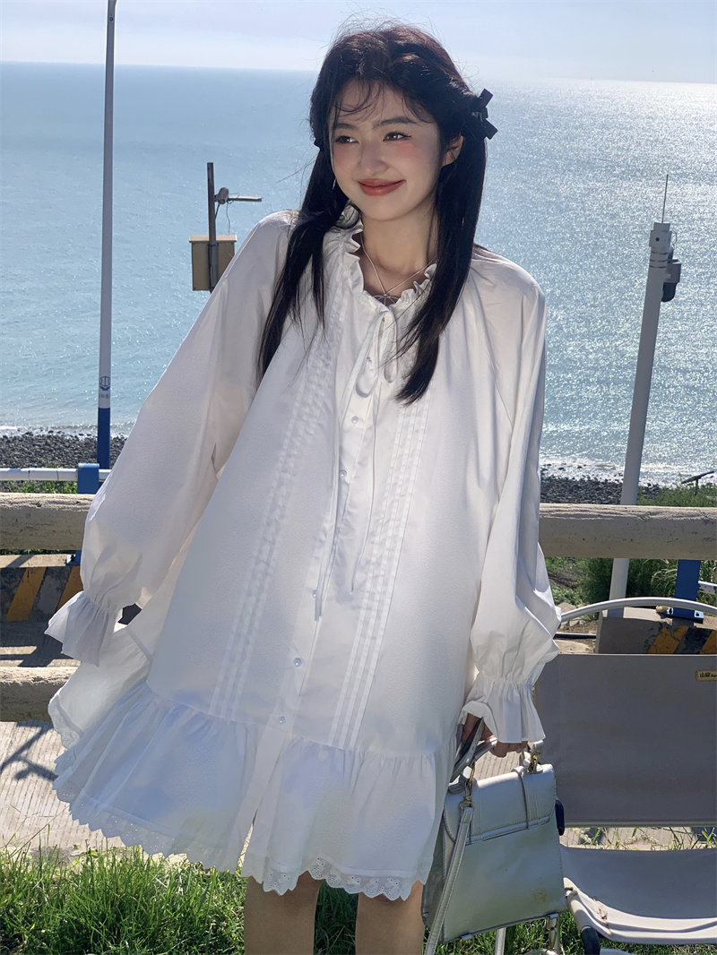 【商品名】【ワンピース】ビッグサイズ 韓国風 高級感 タイアップ シャツワンピース【JZシリーズ】