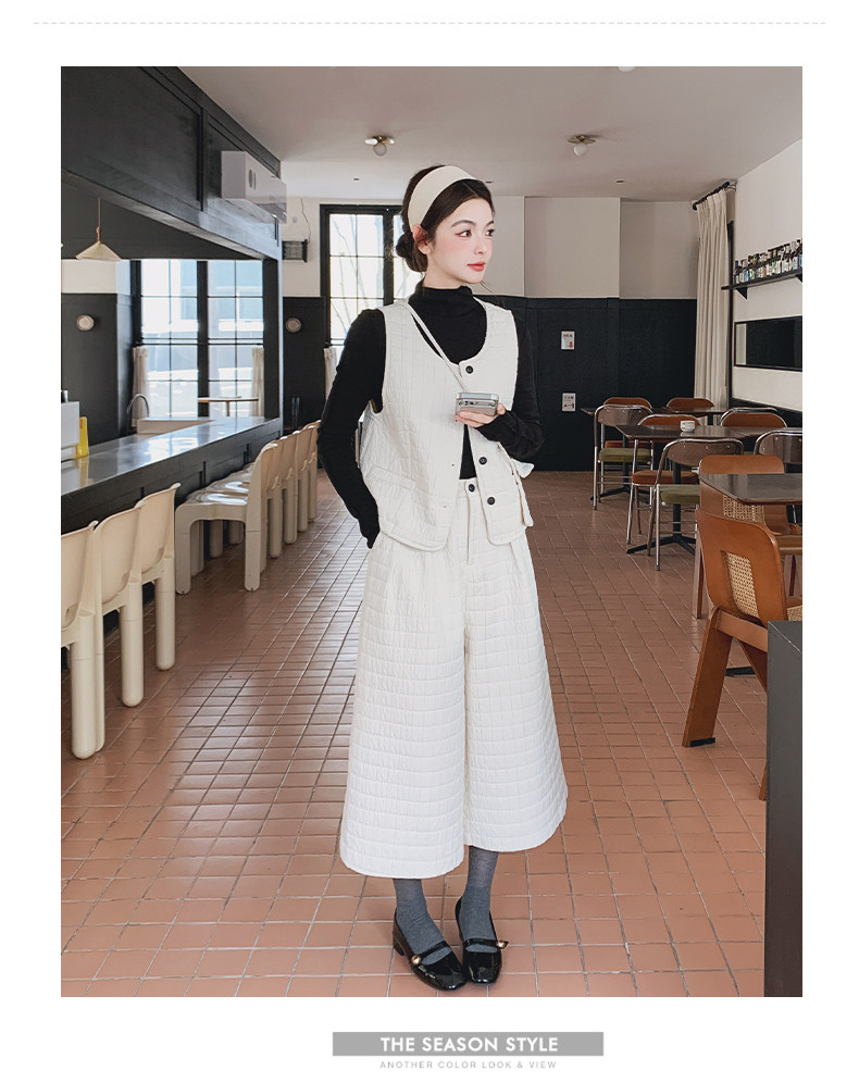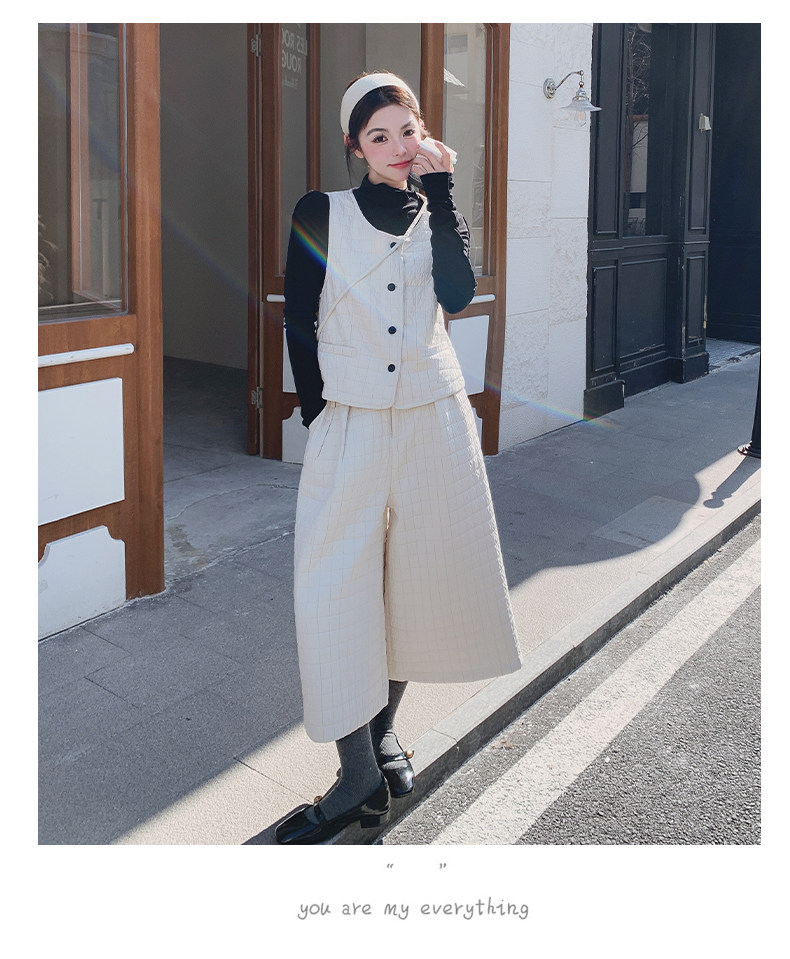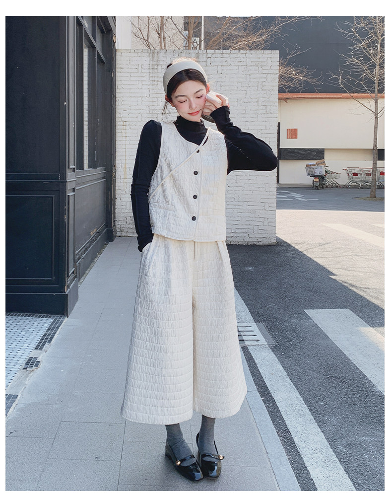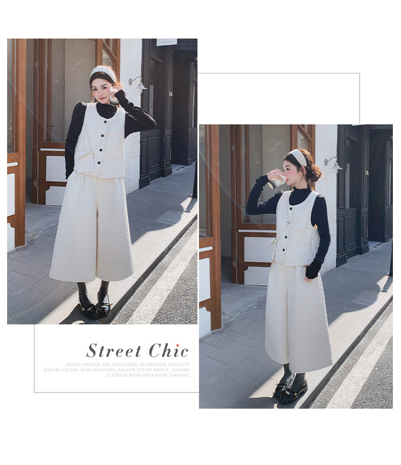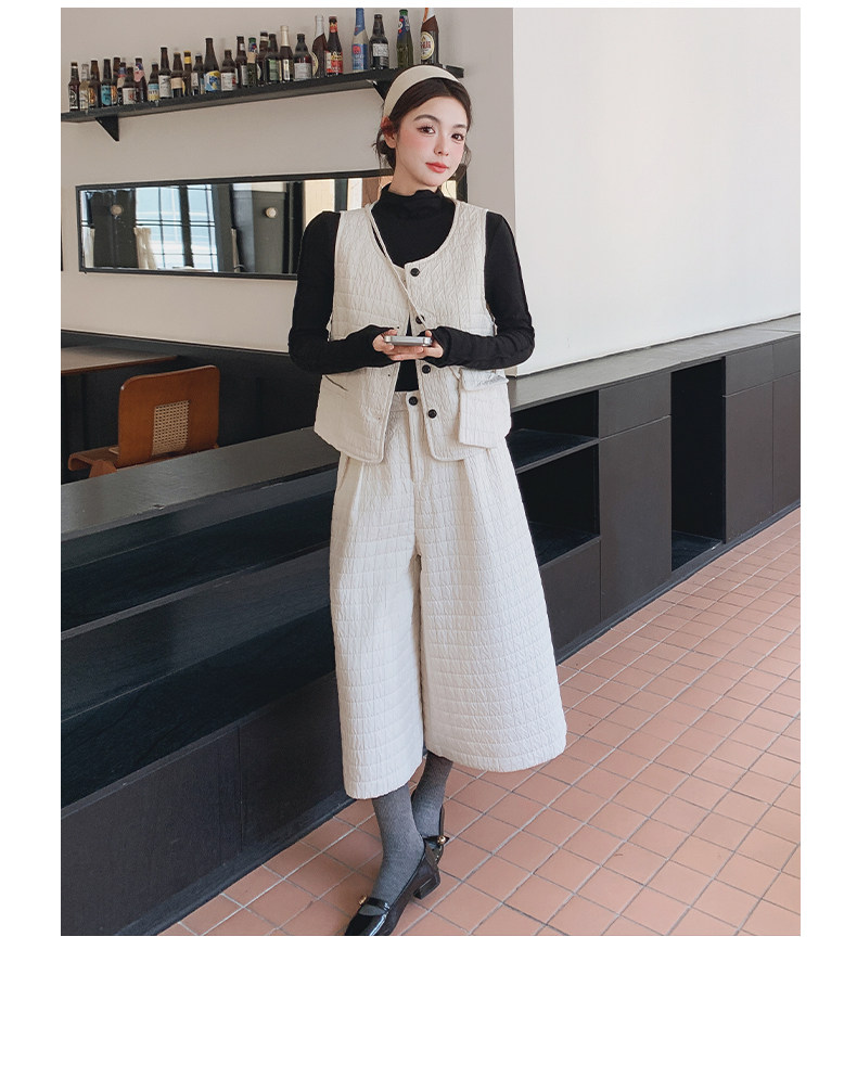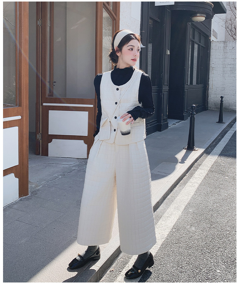 3点セット!【セットアップ】春新作 フェミニン×上品 グレー ベスト+ワイドパンツ+インナー 上下セット 通勤 オシャレ見え 大人可愛い【JZシリーズ】