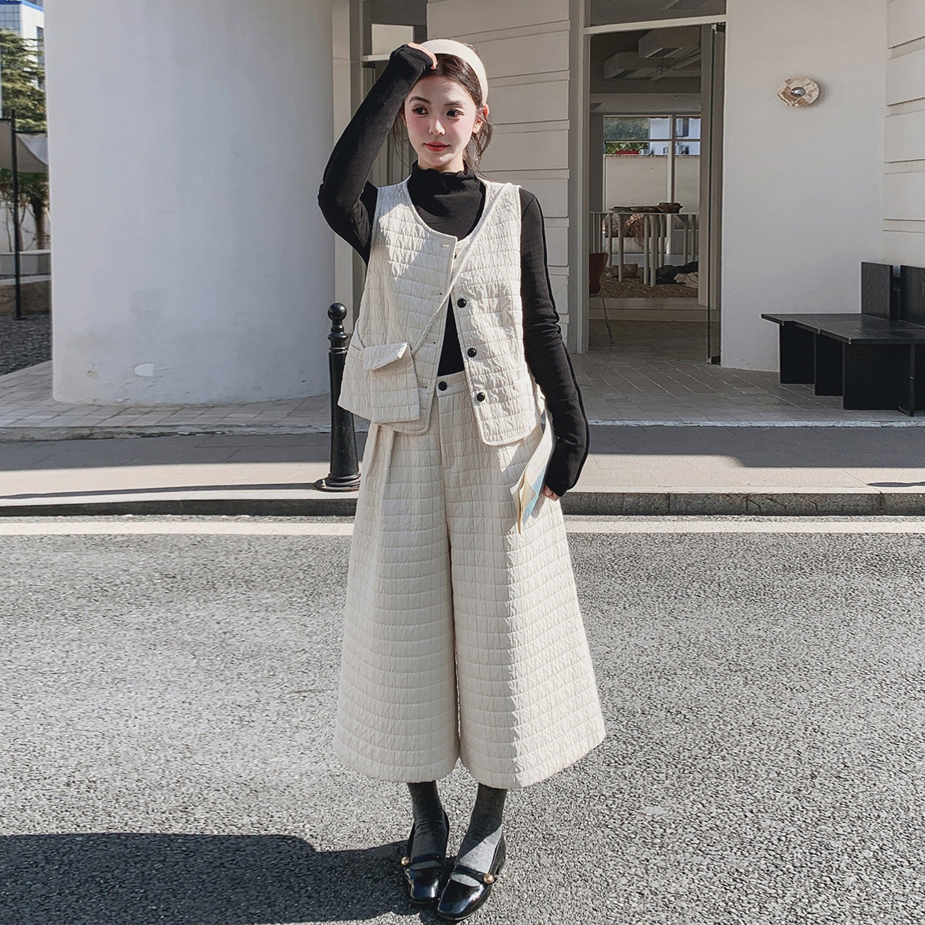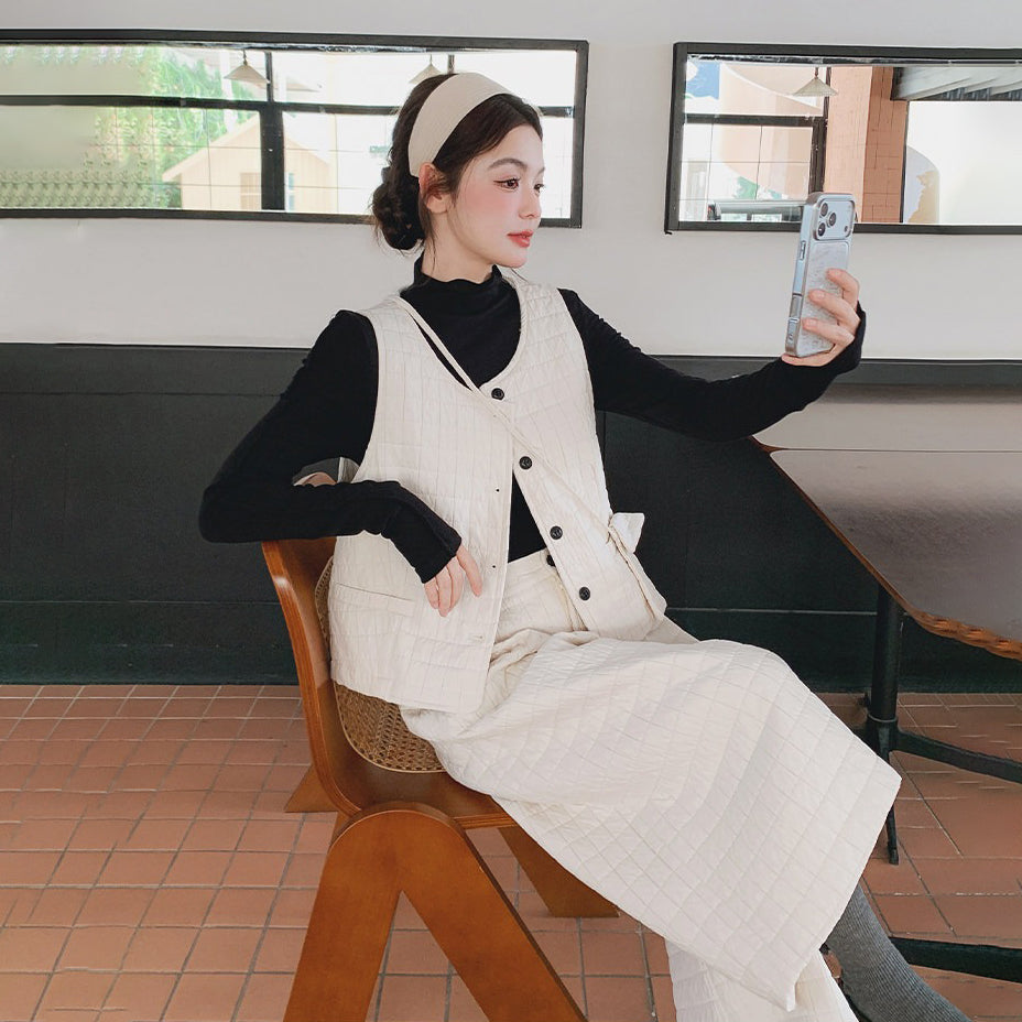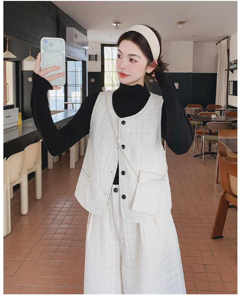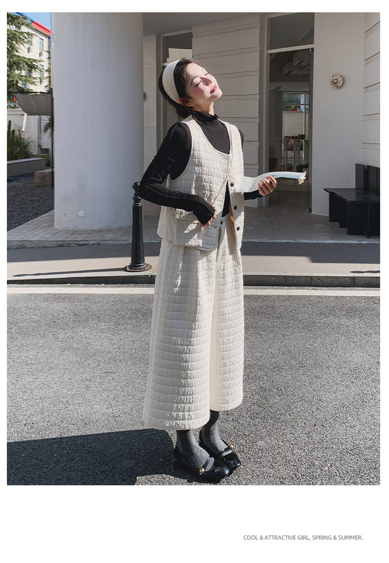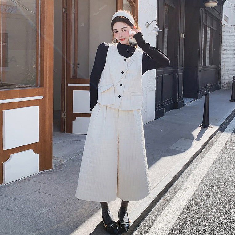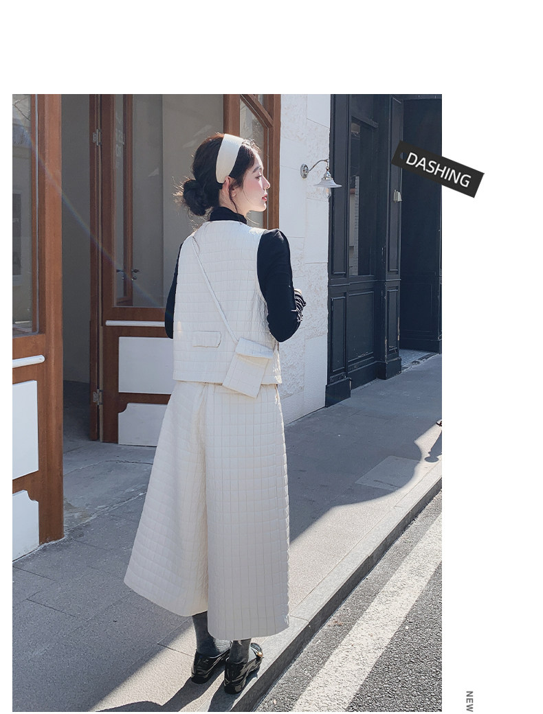 3点セット!【セットアップ】春新作 フェミニン×上品 グレー ベスト+ワイドパンツ+インナー 上下セット 通勤 オシャレ見え 大人可愛い【JZシリーズ】