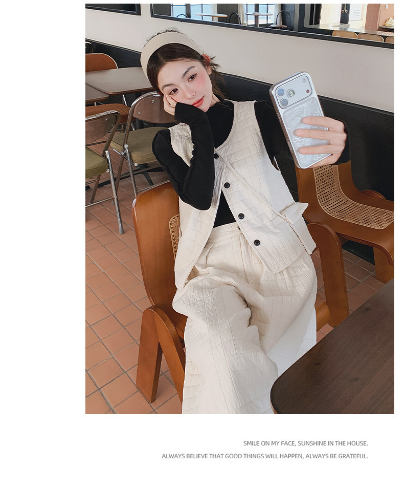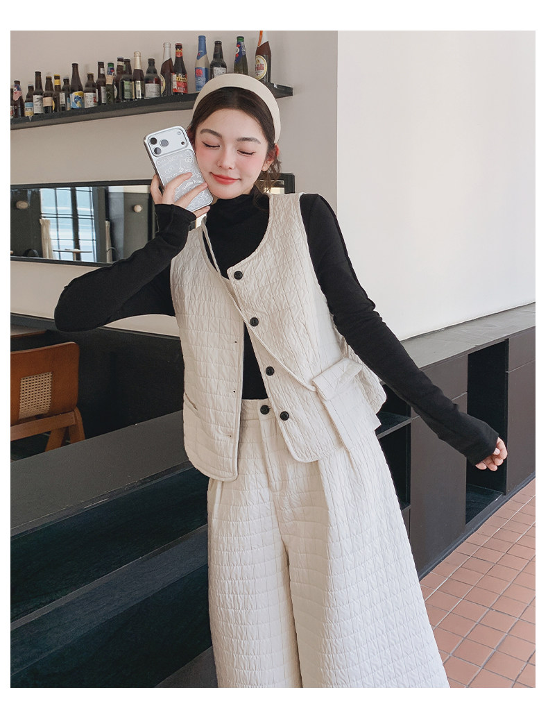 【商品名】3点セット!【セットアップ】春新作 フェミニン×上品 グレー ベスト+ワイドパンツ+インナー 上下セット 通勤 オシャレ見え 大人可愛い【JZシリーズ】