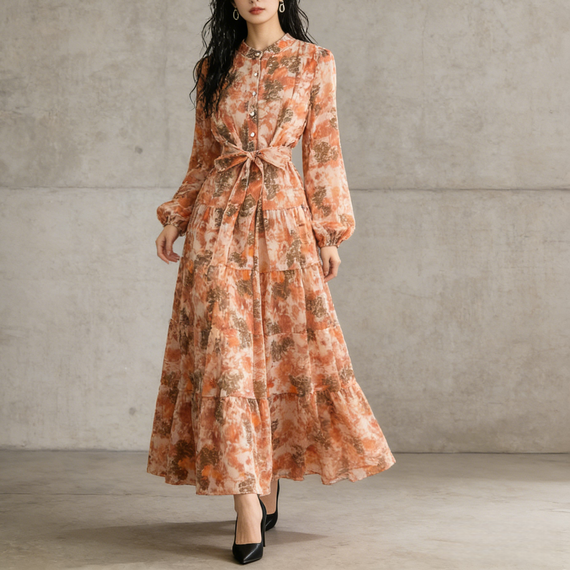 【売り切り|期間限定】残り8点⭐️67%OFF🔥大人気商品🔥【ワンピース】春秋冬 花柄 大きいサイズ ゆるリラックス 長袖 ワンピース【SHシリーズ】