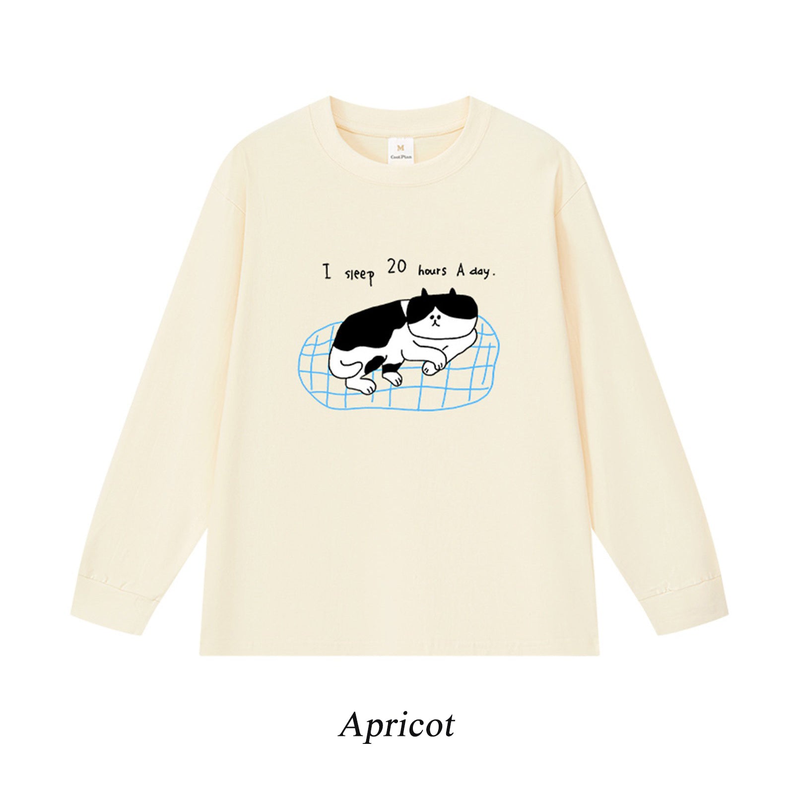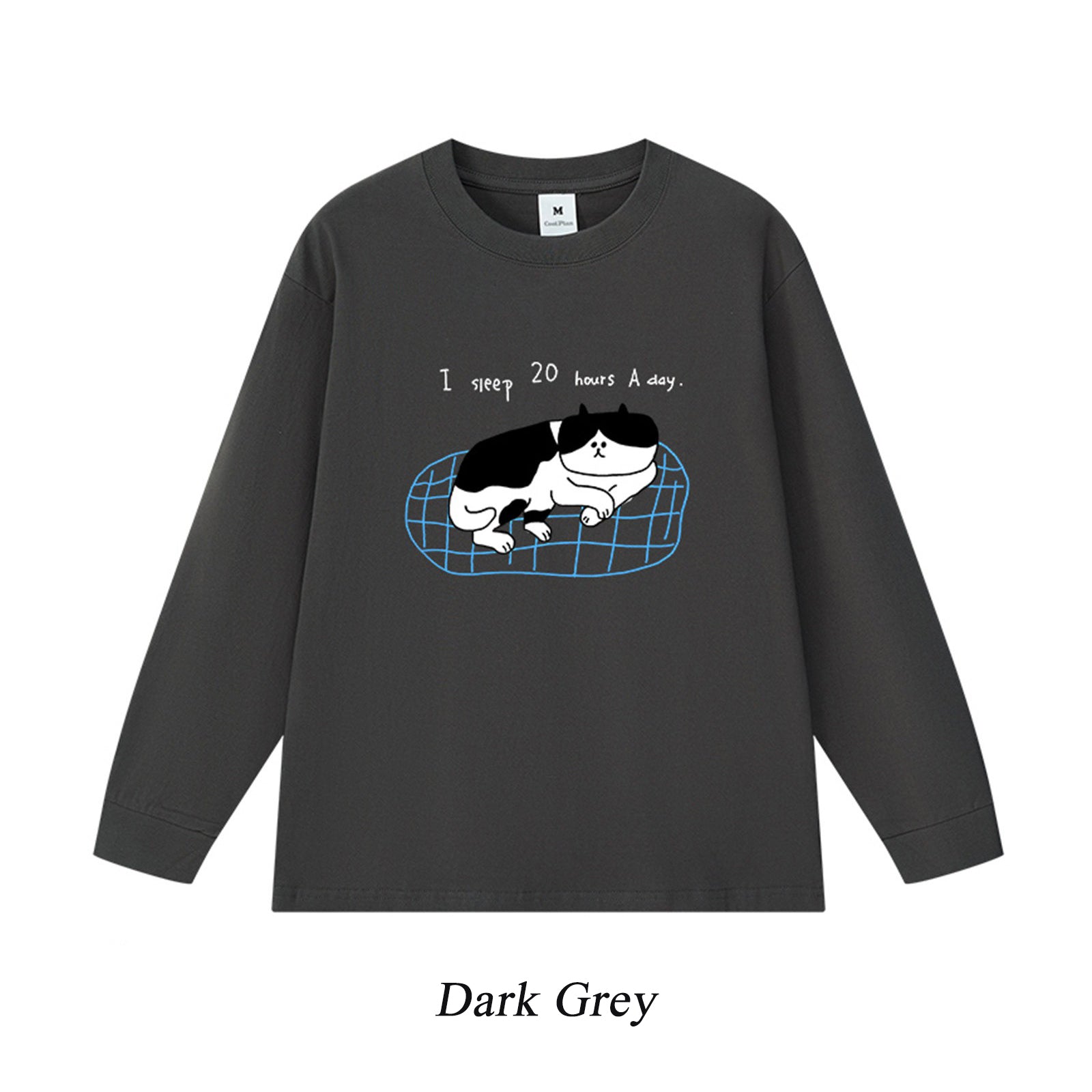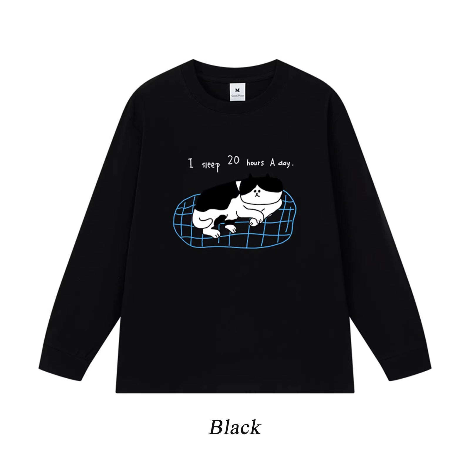 5カラー | S~3XL【トップス】猫のスリープタイム プリント 長袖Tシャツ コットン 秋 ゆったり トップス インナー【FCシリーズ】