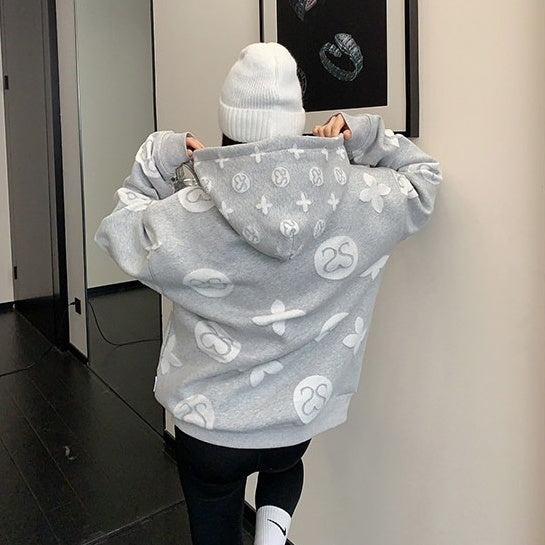 8カラー | S~3XL【トップス】ヒップホップ風 猫狗プリント 手描き クルーネック スウェット 厚手 ルーズ ユニセックス パーカー【FCシリーズ】