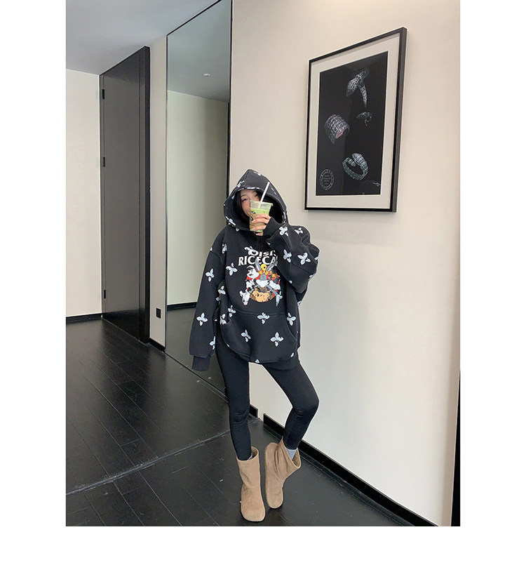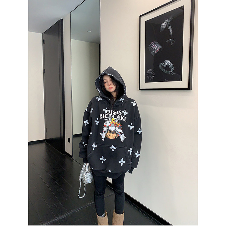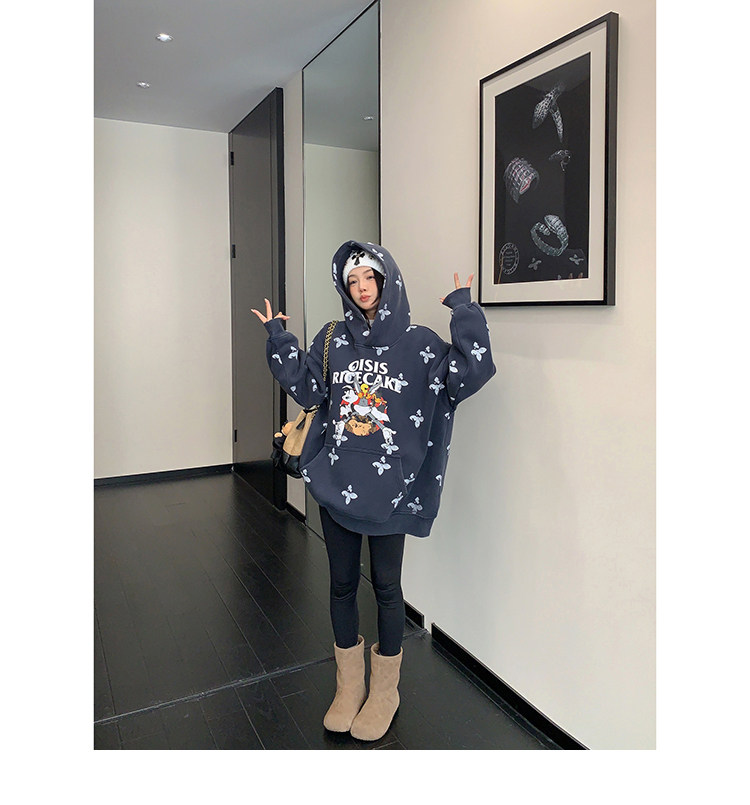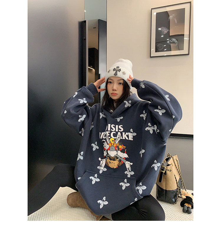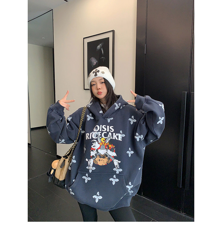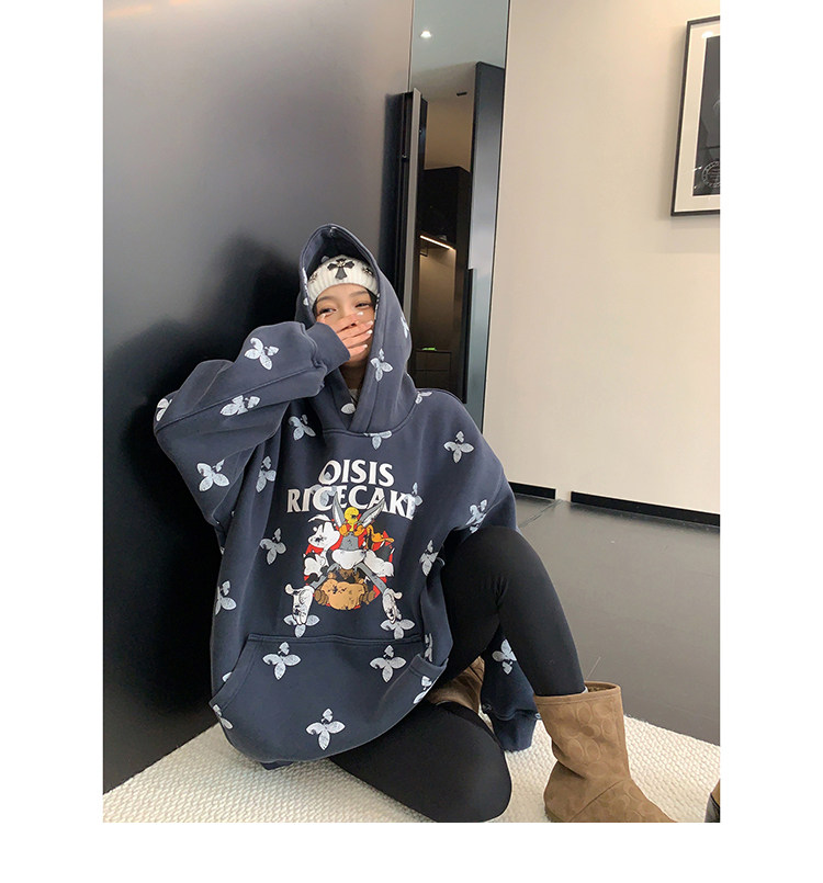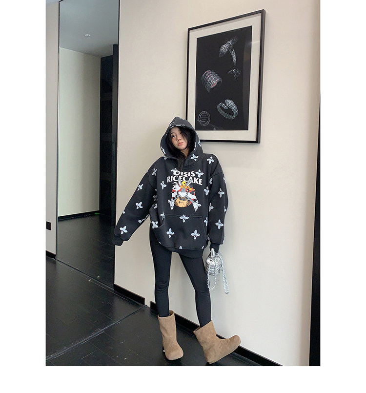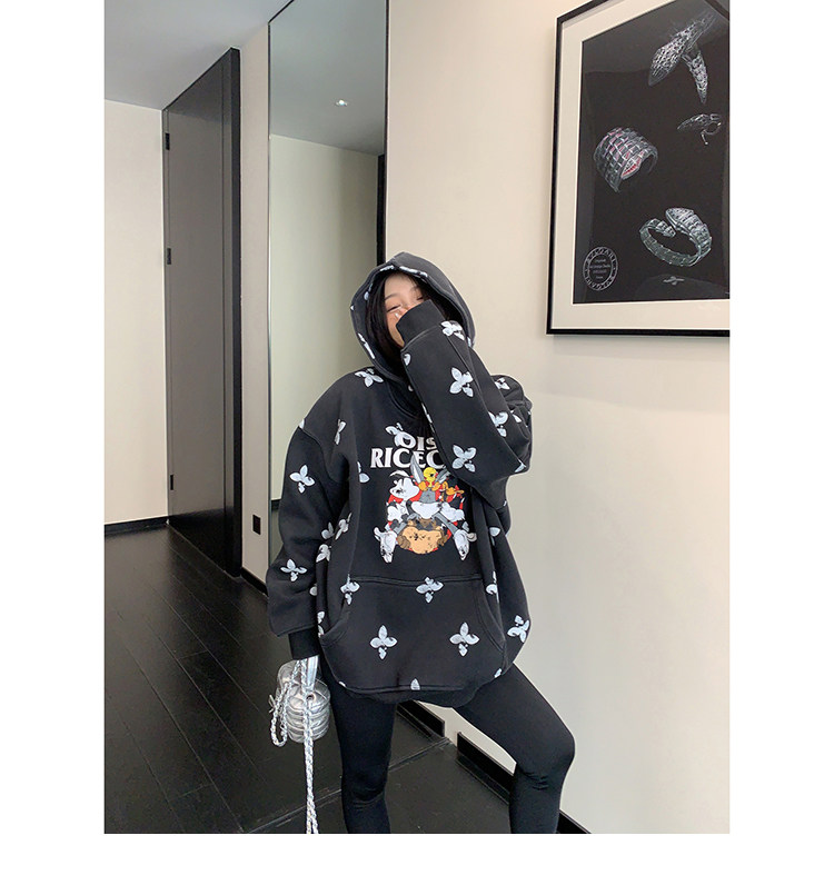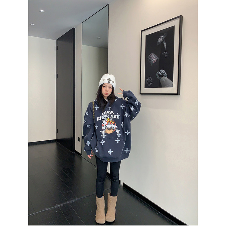 8カラー | S~3XL【トップス】ヒップホップ風 猫狗プリント 手描き クルーネック スウェット 厚手 ルーズ ユニセックス パーカー【FCシリーズ】