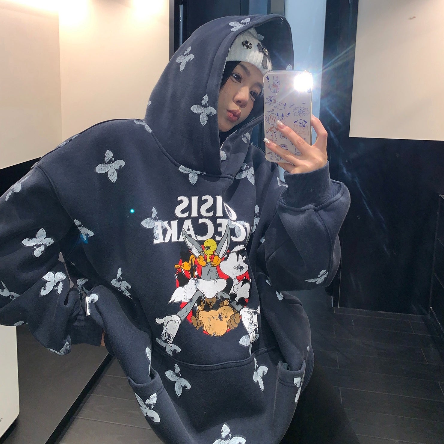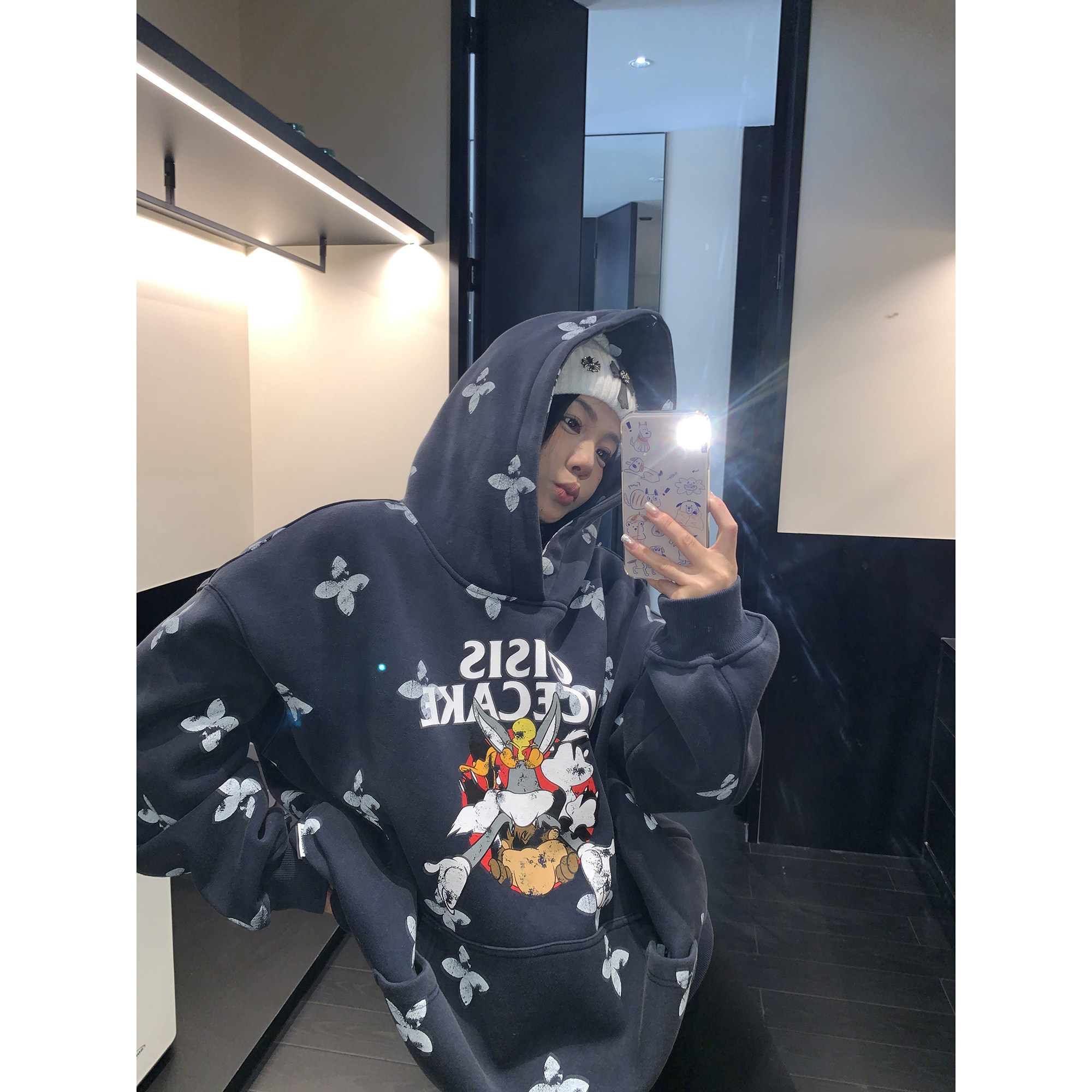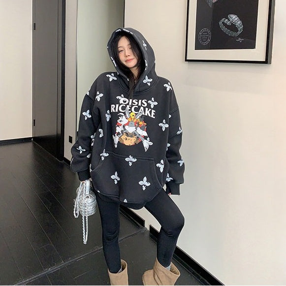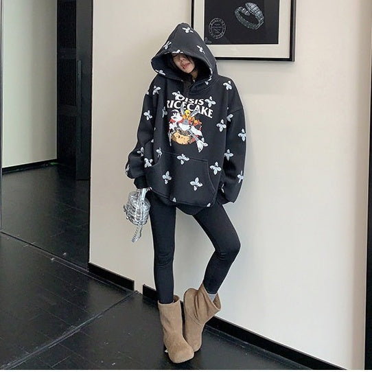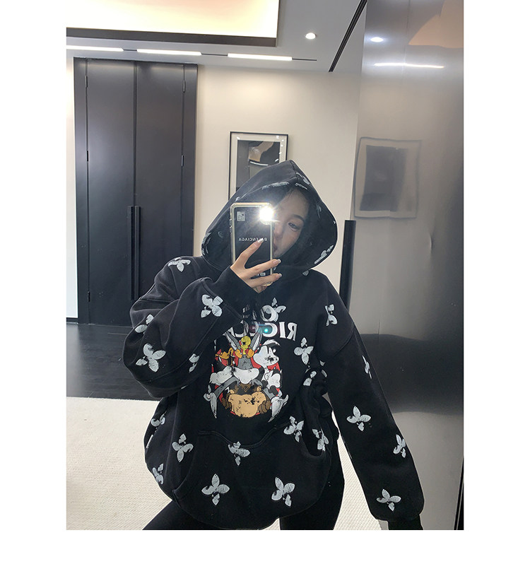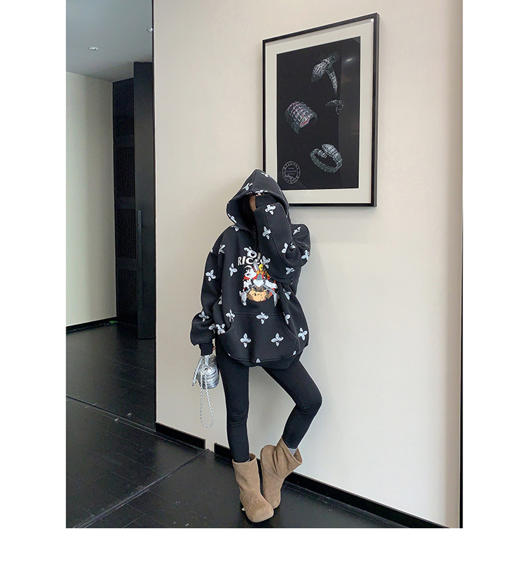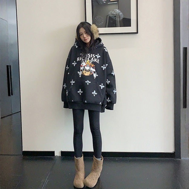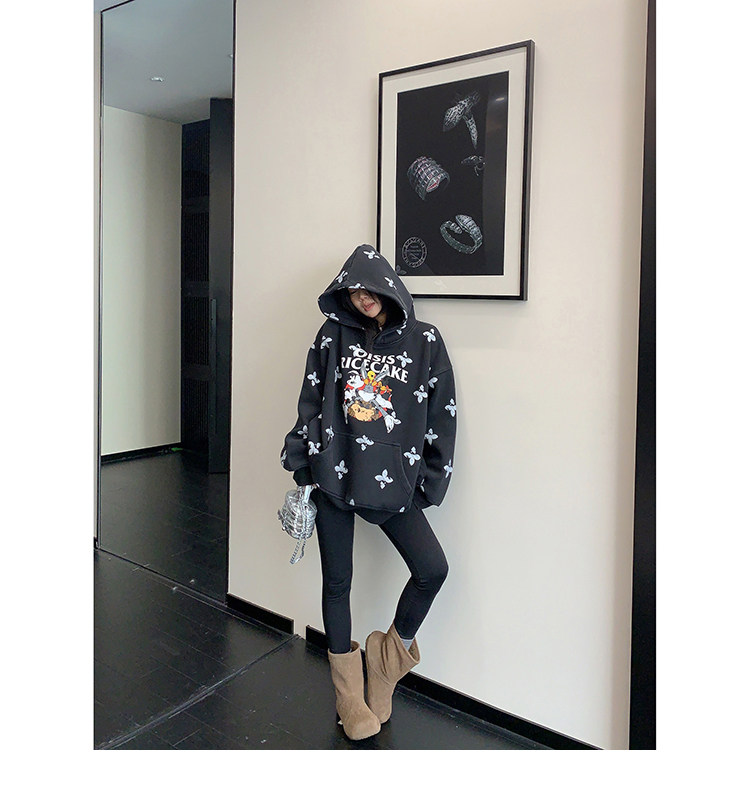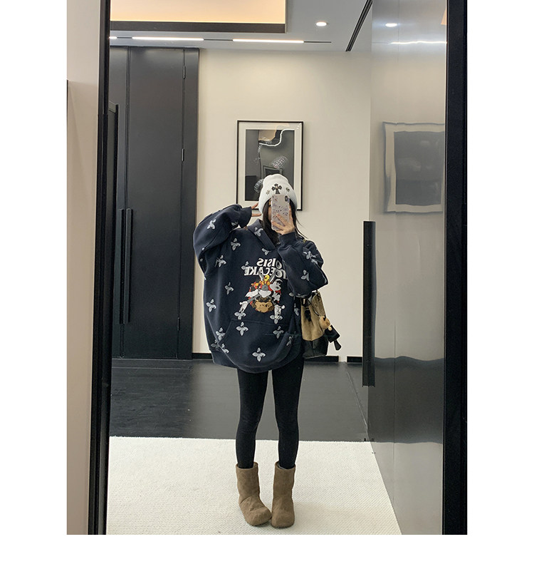 8カラー | S~3XL【トップス】ヒップホップ風 猫狗プリント 手描き クルーネック スウェット 厚手 ルーズ ユニセックス パーカー【FCシリーズ】