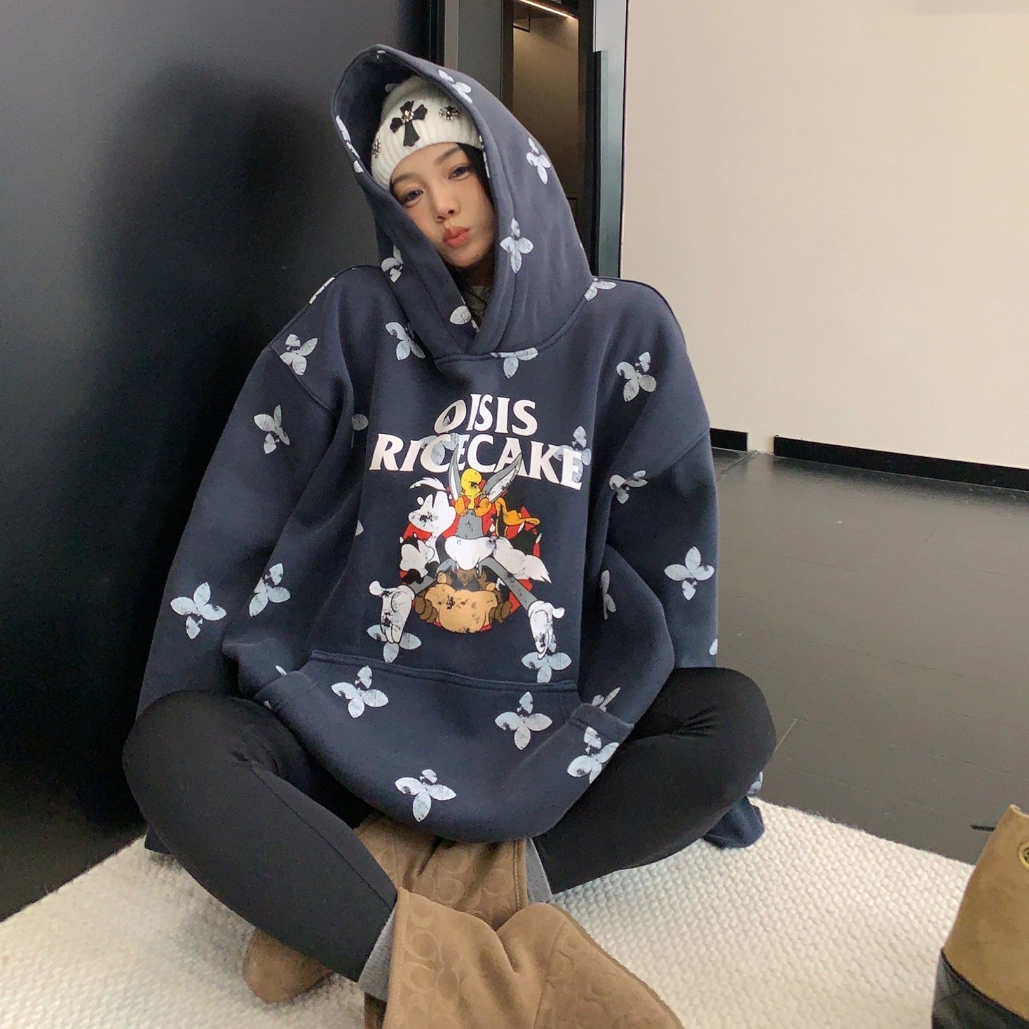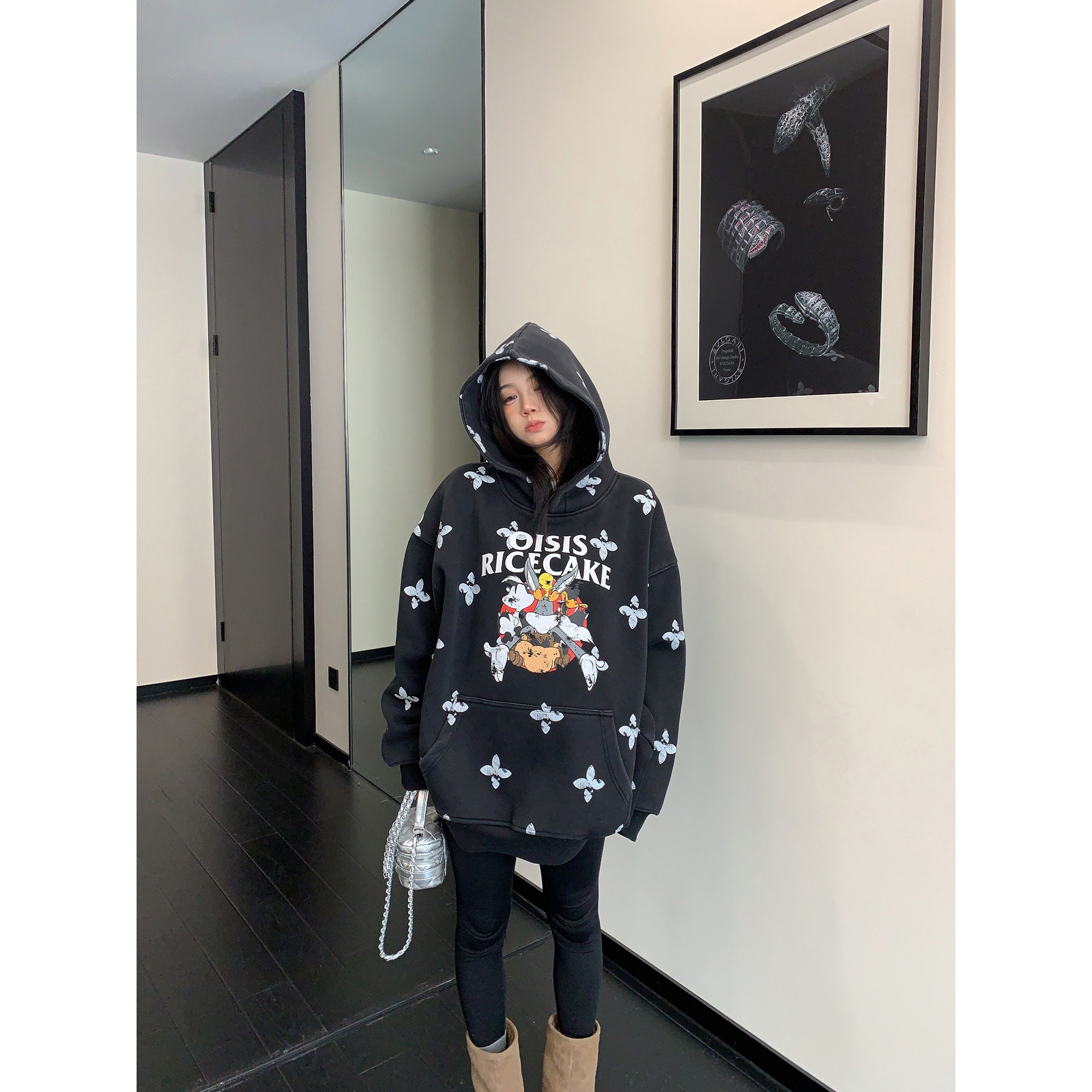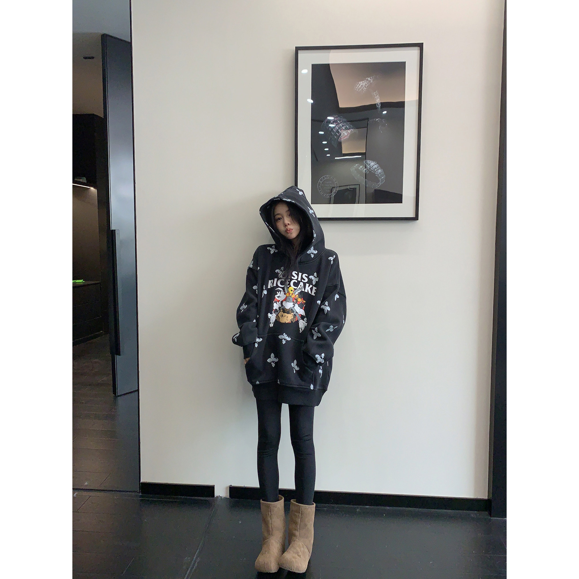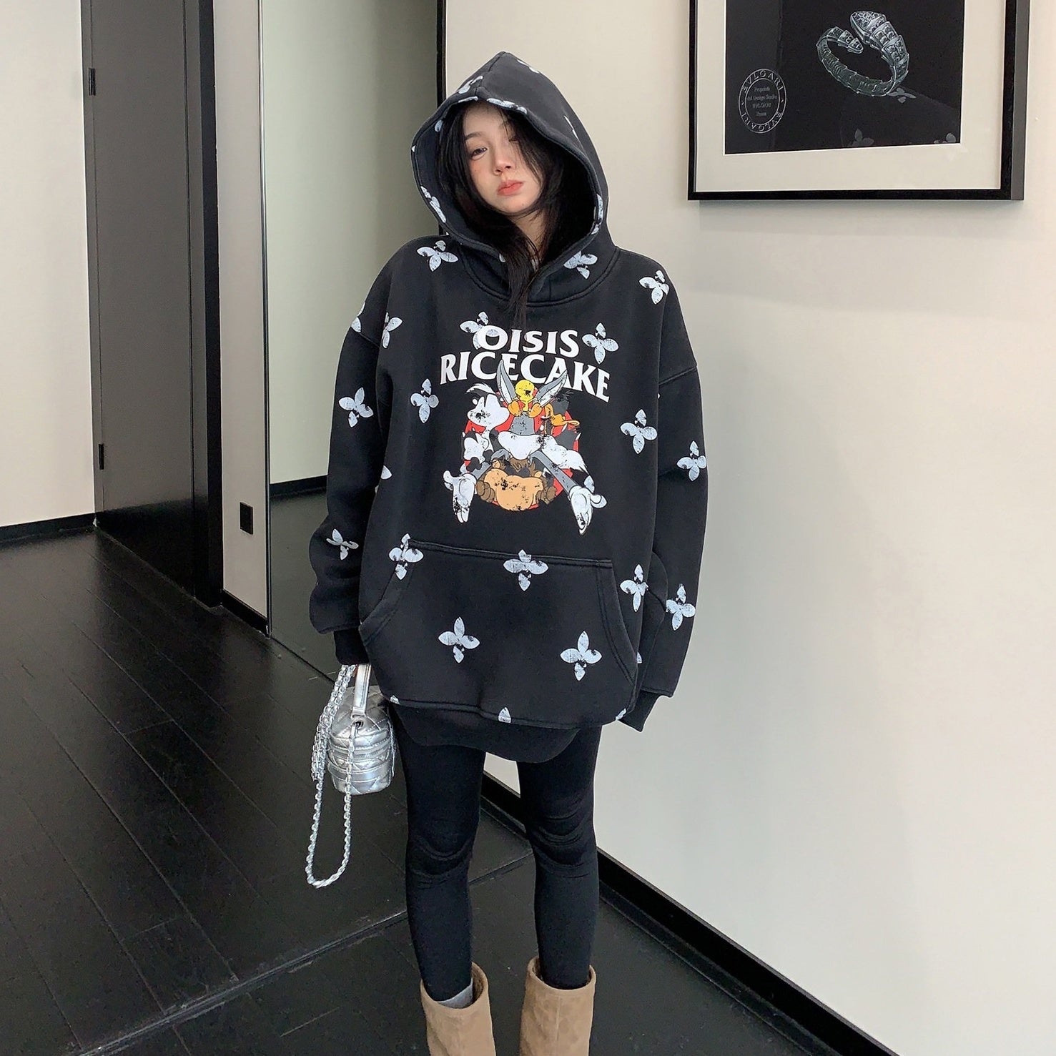 8カラー | S~3XL【トップス】ヒップホップ風 猫狗プリント 手描き クルーネック スウェット 厚手 ルーズ ユニセックス パーカー【FCシリーズ】