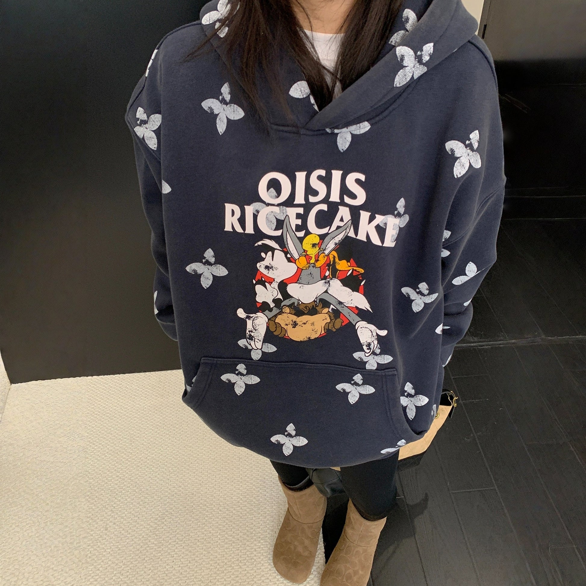 【トップス】レトロ ヴィンテージ加工 キャラクタープリント フード付き パーカー 【FCシリーズ】