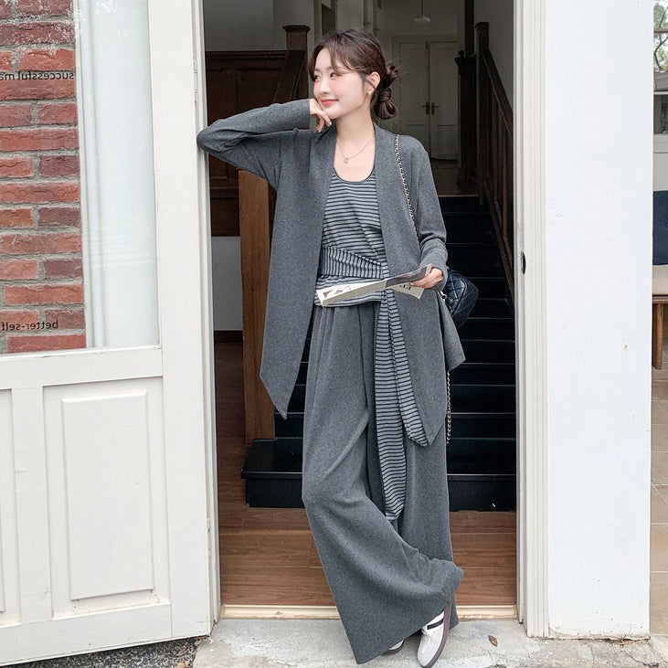【商品名】3点セット!【セットアップ】ゆるふわ風 ニットカーディガン + ベスト + ワイドパンツ 上下セット 早春 2026新作 カジュアル 3点セット【JZシリーズ】