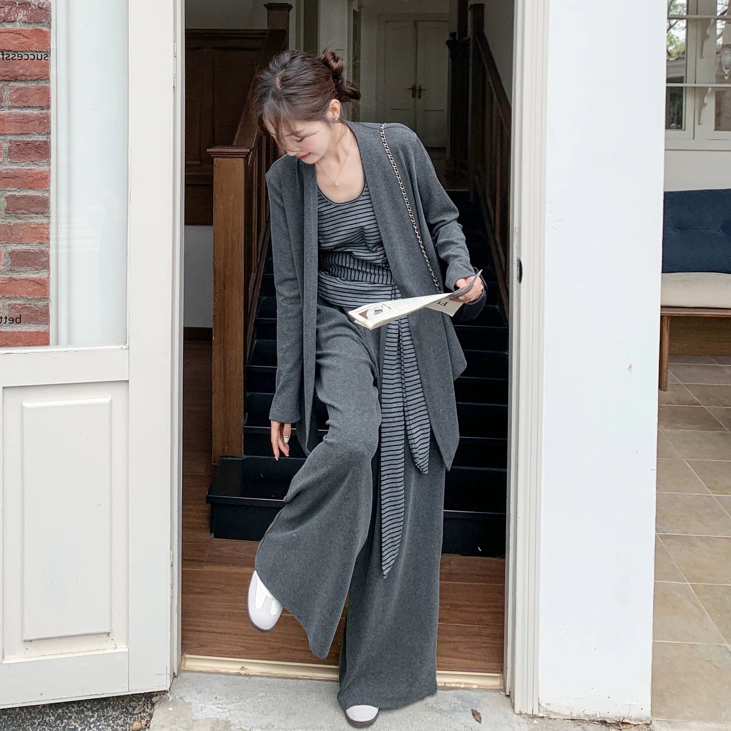 3点セット!【セットアップ】ゆるふわ風 ニットカーディガン + ベスト + ワイドパンツ 上下セット 早春 2026新作 カジュアル 3点セット【JZシリーズ】