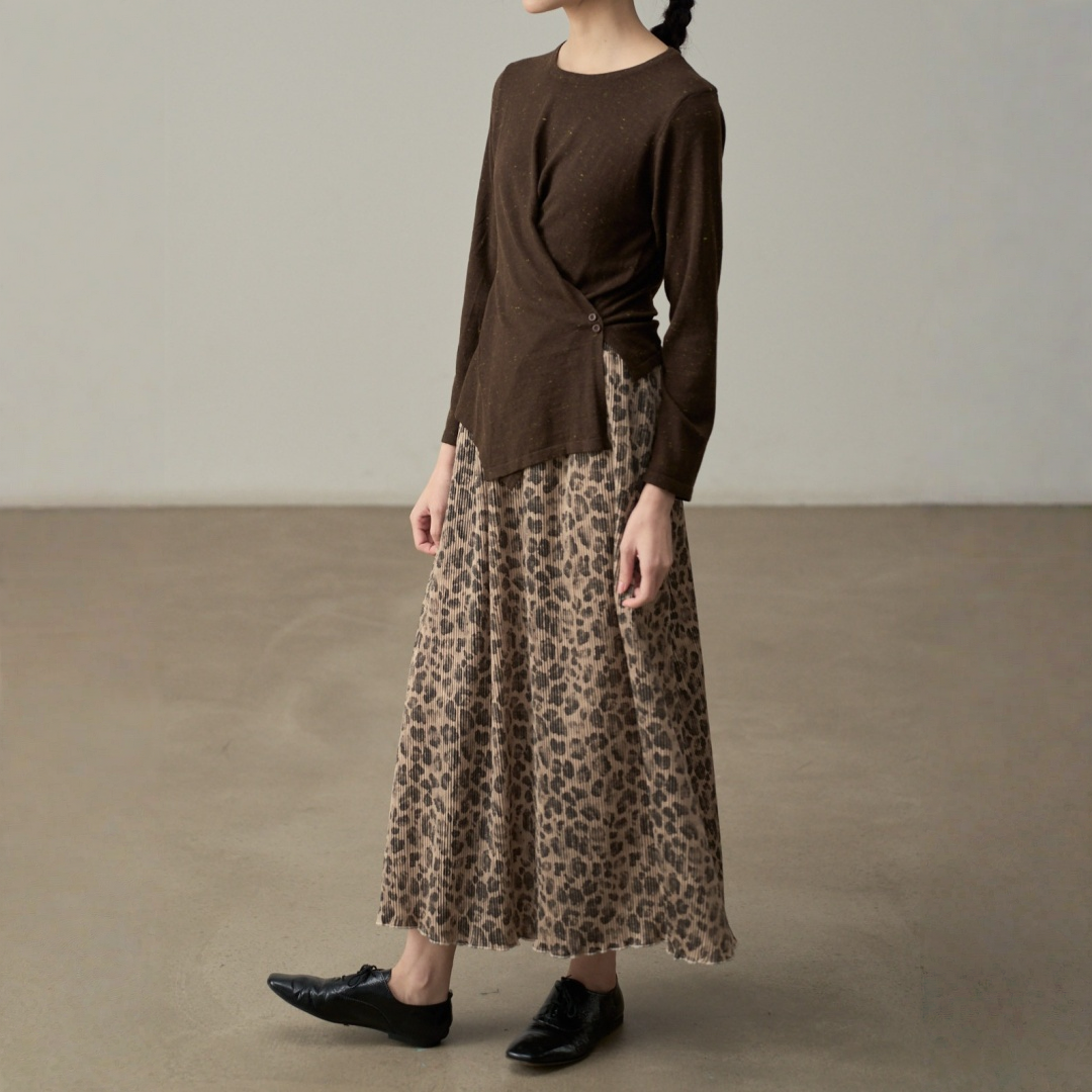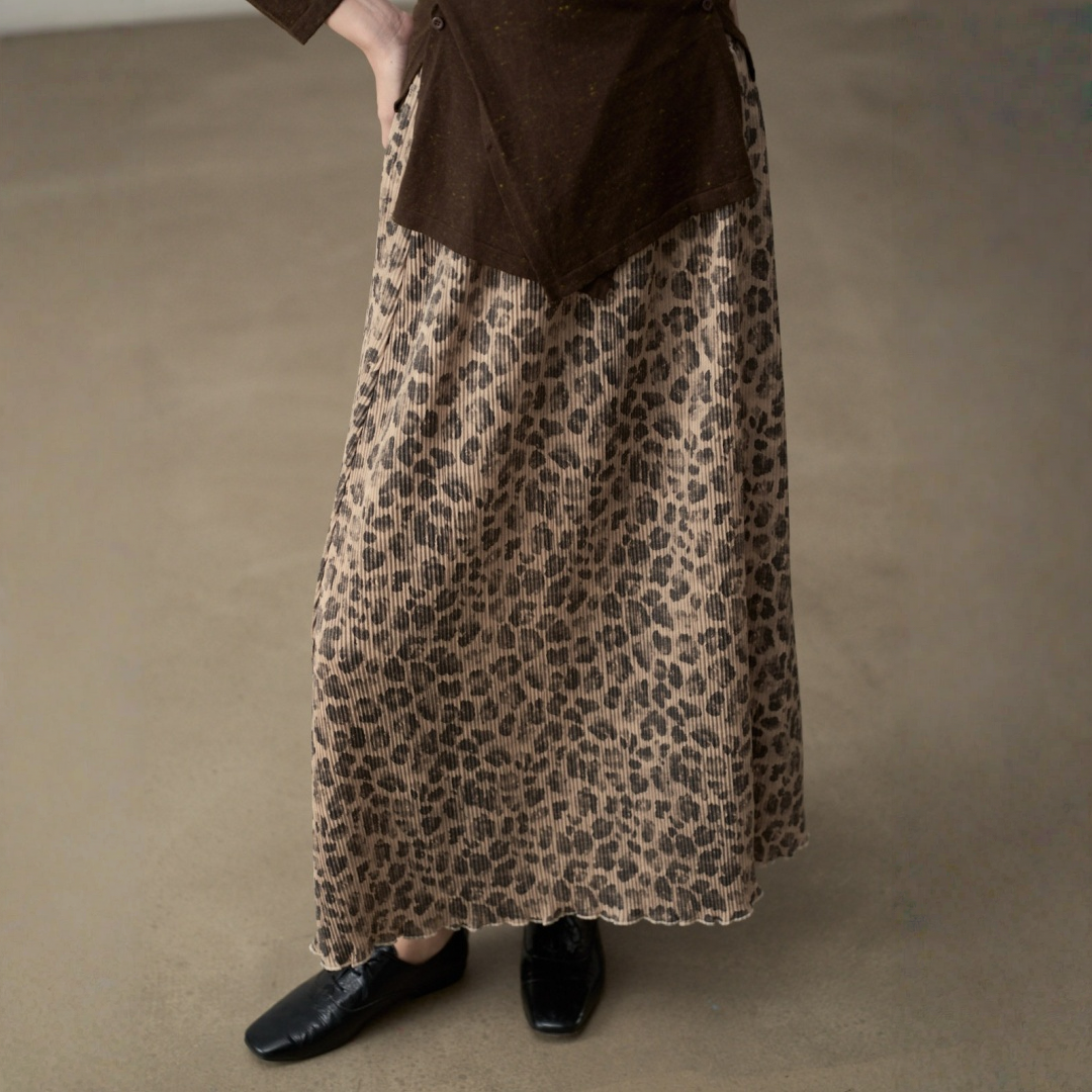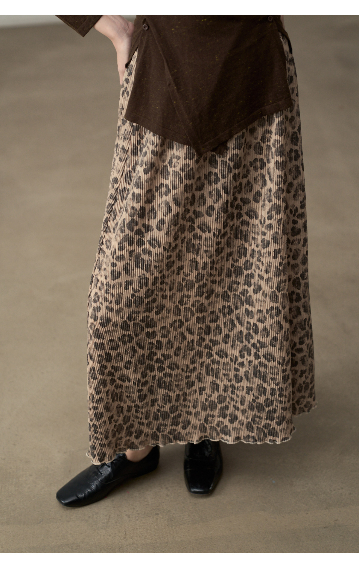 期間限定⭐️60%OFF【ボトムス】クリンクル加工 タイトフィット レオパード柄 プリント ロング丈スカート 【SHシリーズ】