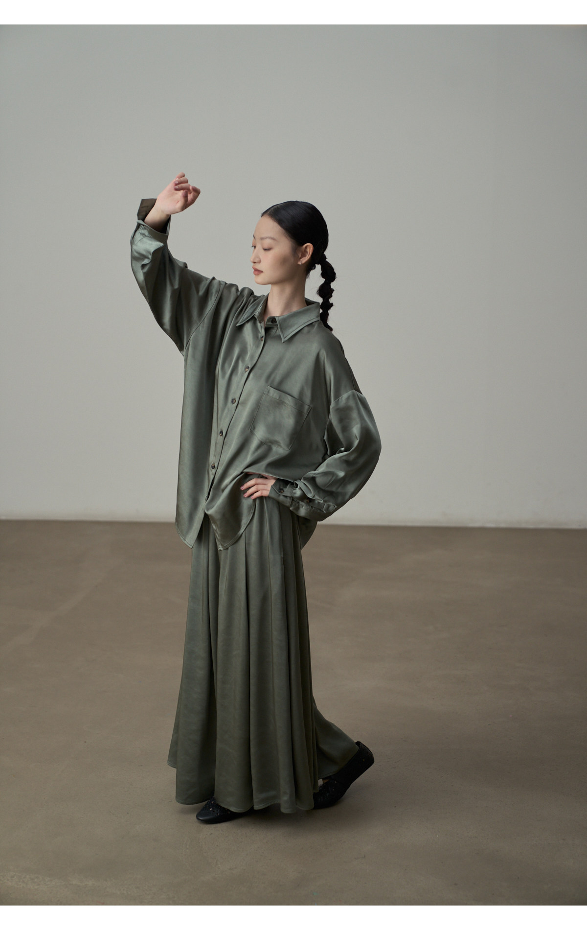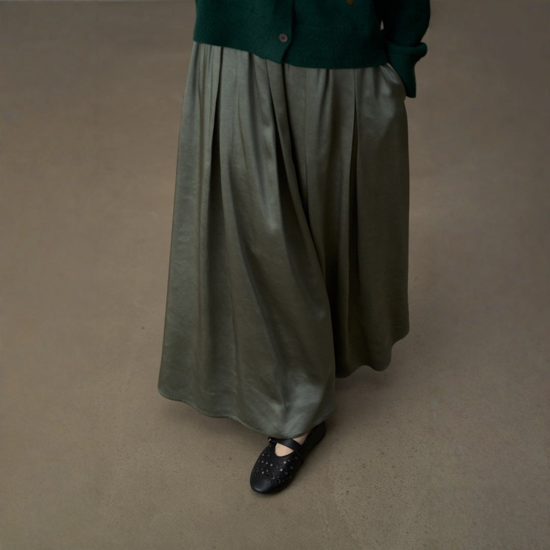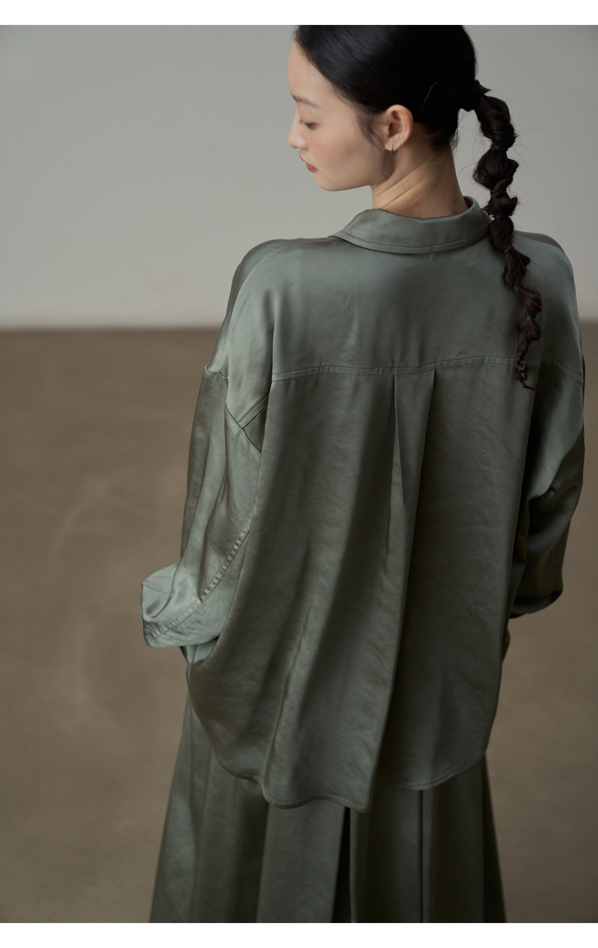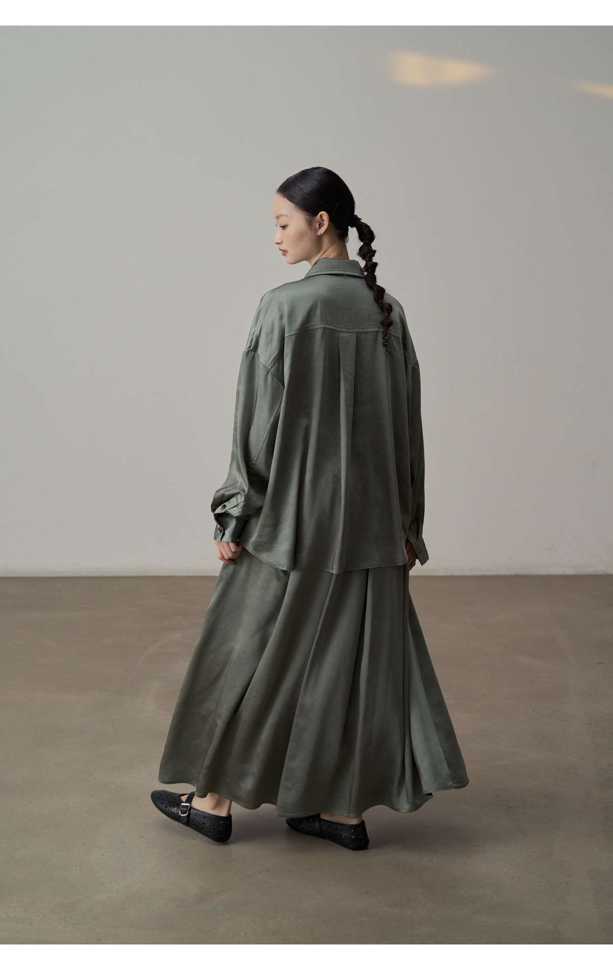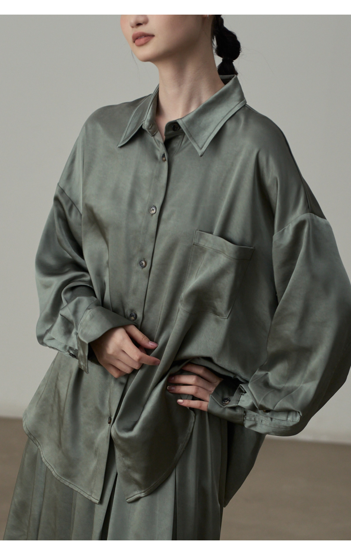 【セットアップ】【単品注文】サテン ゆったり シャツ + フレアプリーツスカート 2点上下セット 【JZシリーズ】