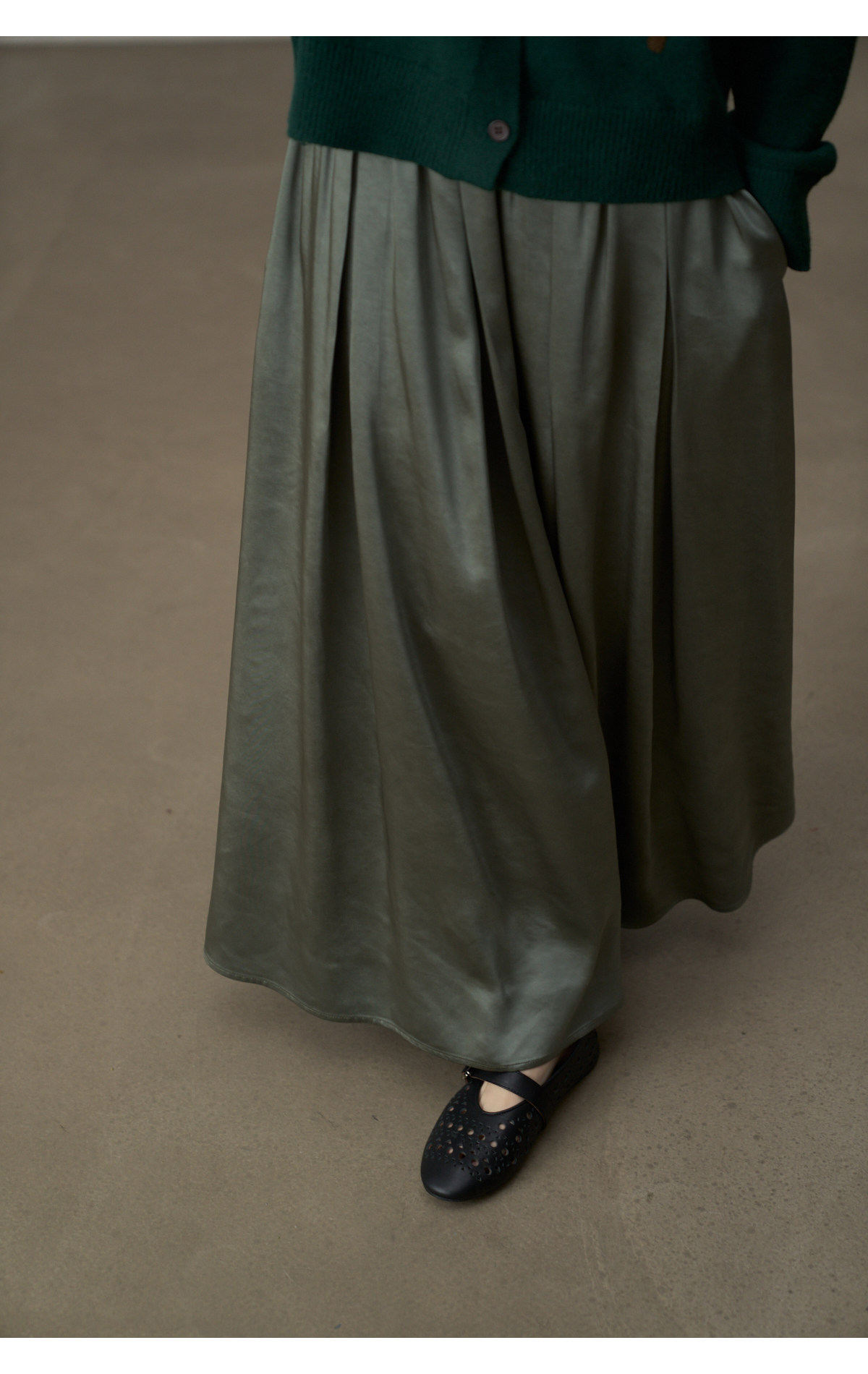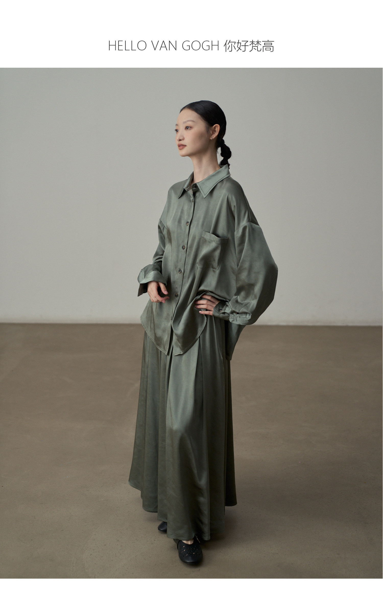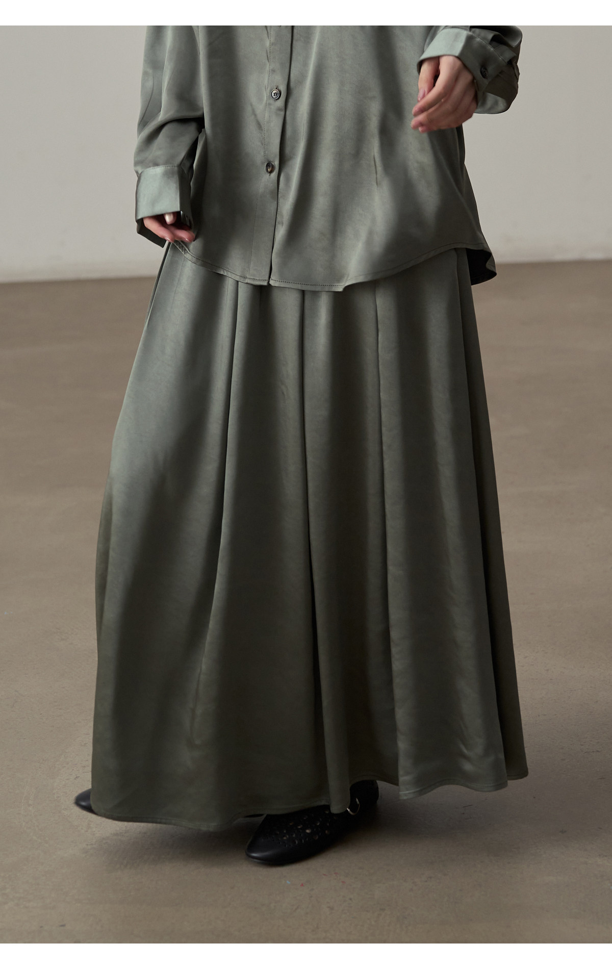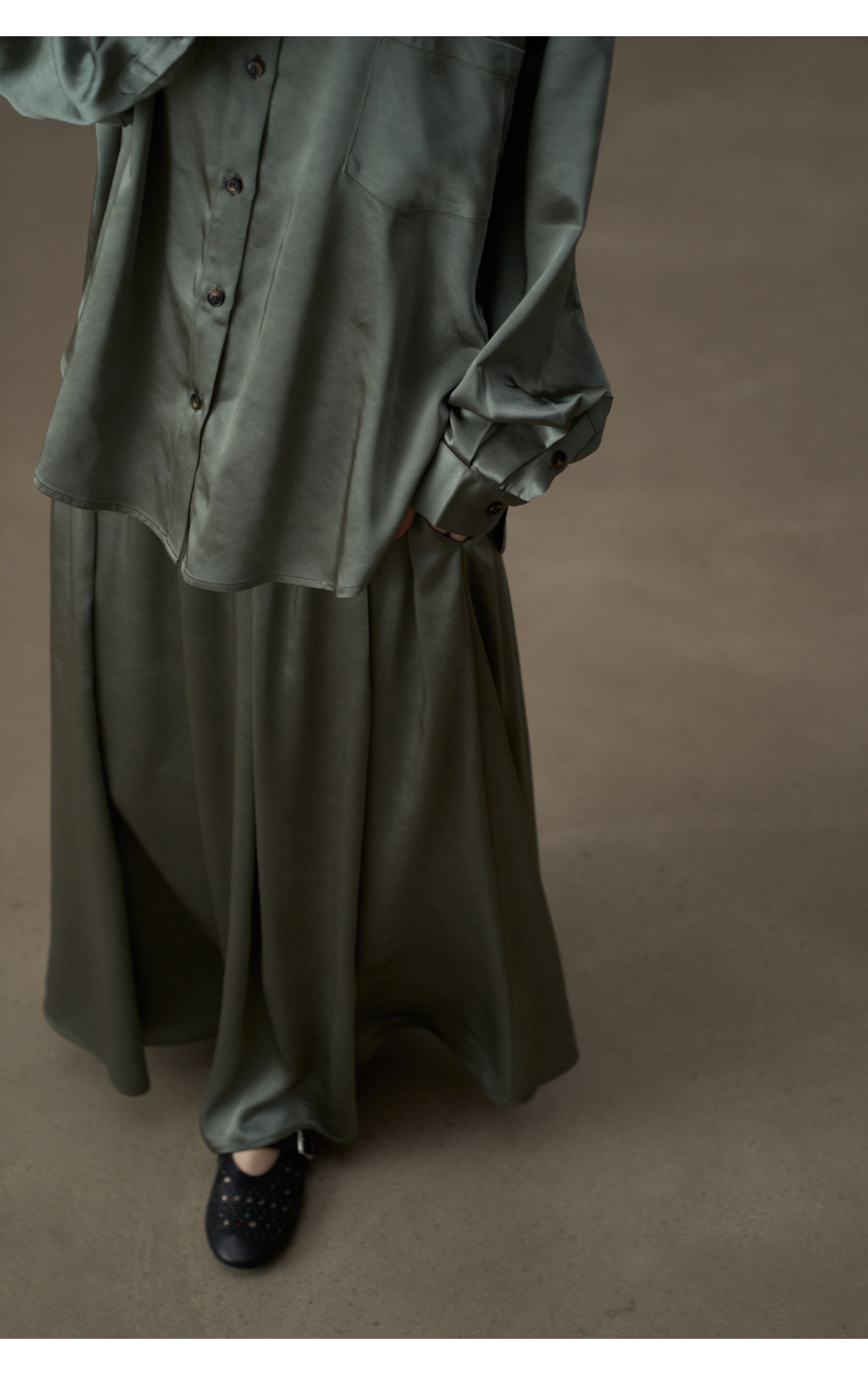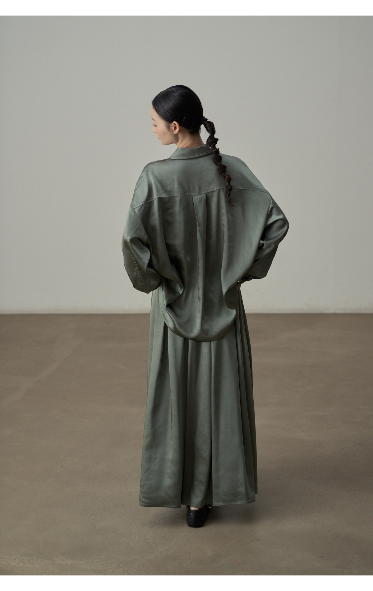 【セットアップ】【単品注文】サテン ゆったり シャツ + フレアプリーツスカート 2点上下セット 【JZシリーズ】