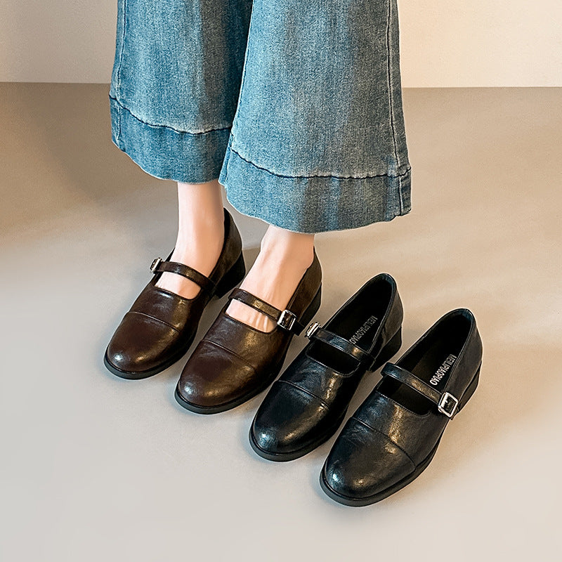 【シューズ】フトレザー ヴィンテージ ローファー 新作 パンプス マリージェーン フレンチスタイル シューズ