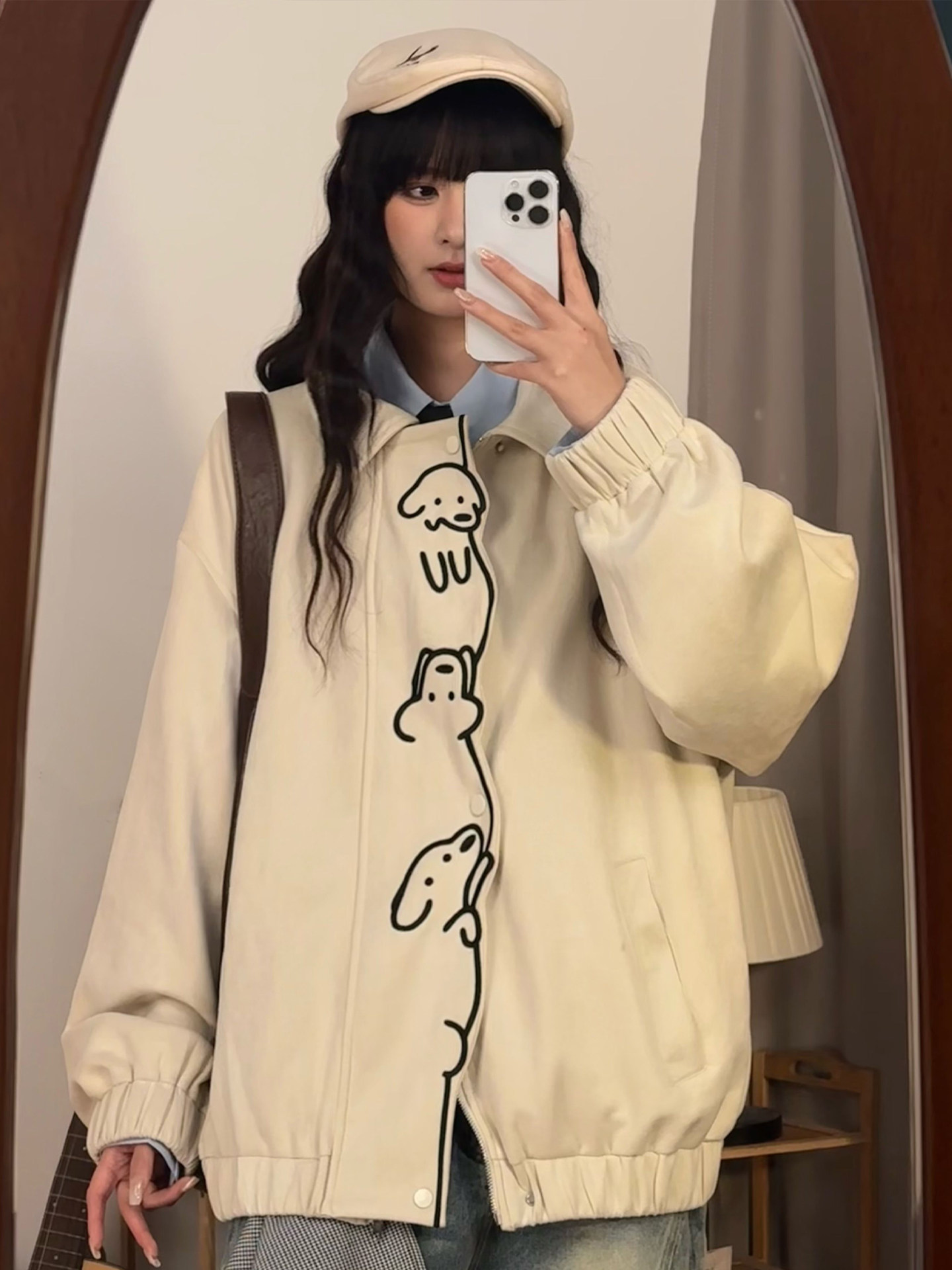 【商品名】【🐶木登りわんちゃん】【アウター】 刺繍 ワッフル生地 男女兼用 長袖 ジャケット【FCシリーズ】