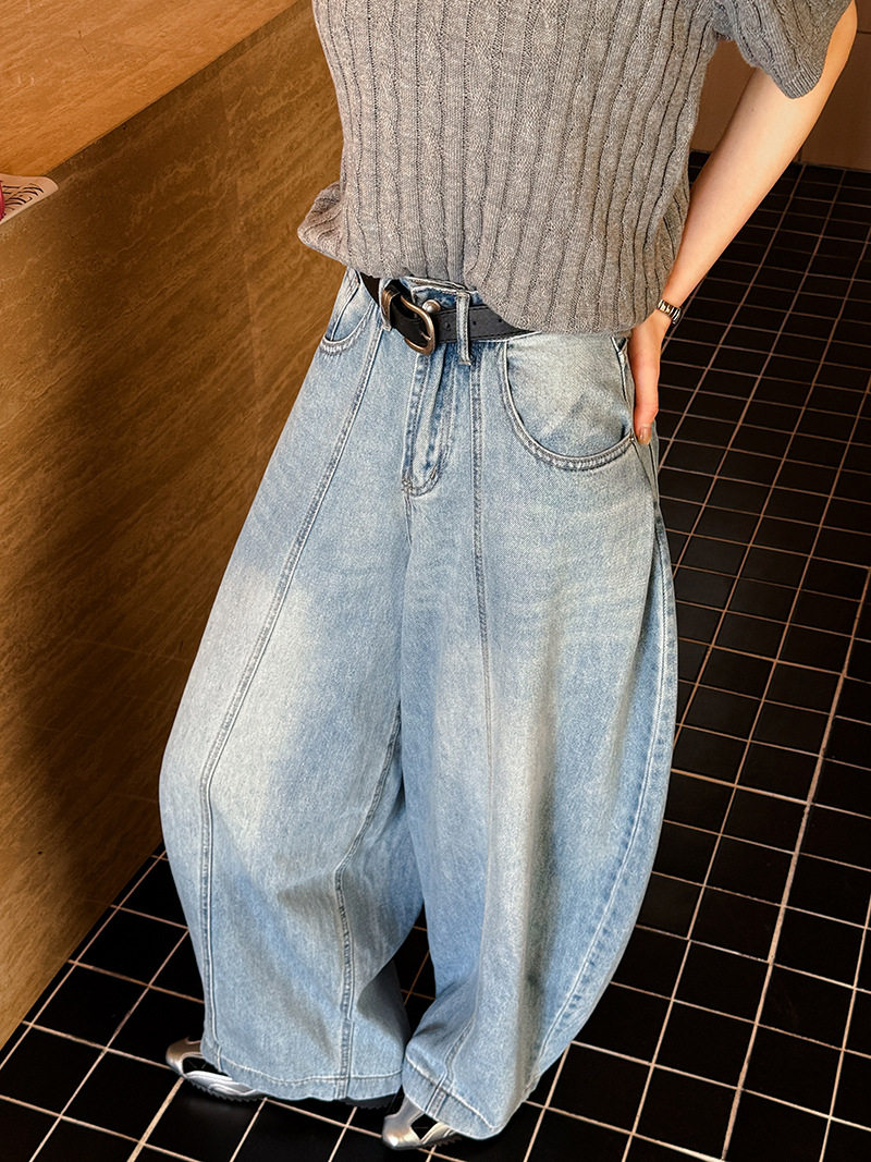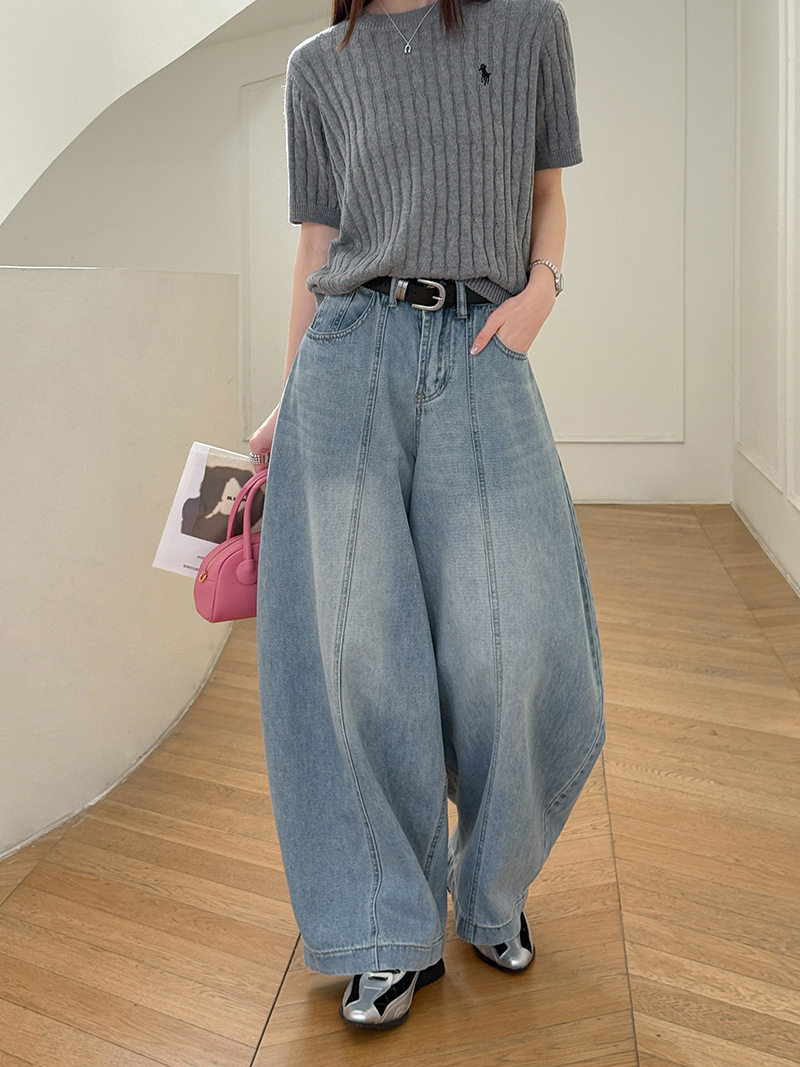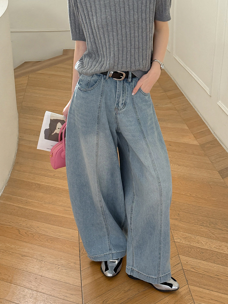 【ボトムス】カーブシルエット ハイウエスト ワイド パンツ 【JZシリーズ】