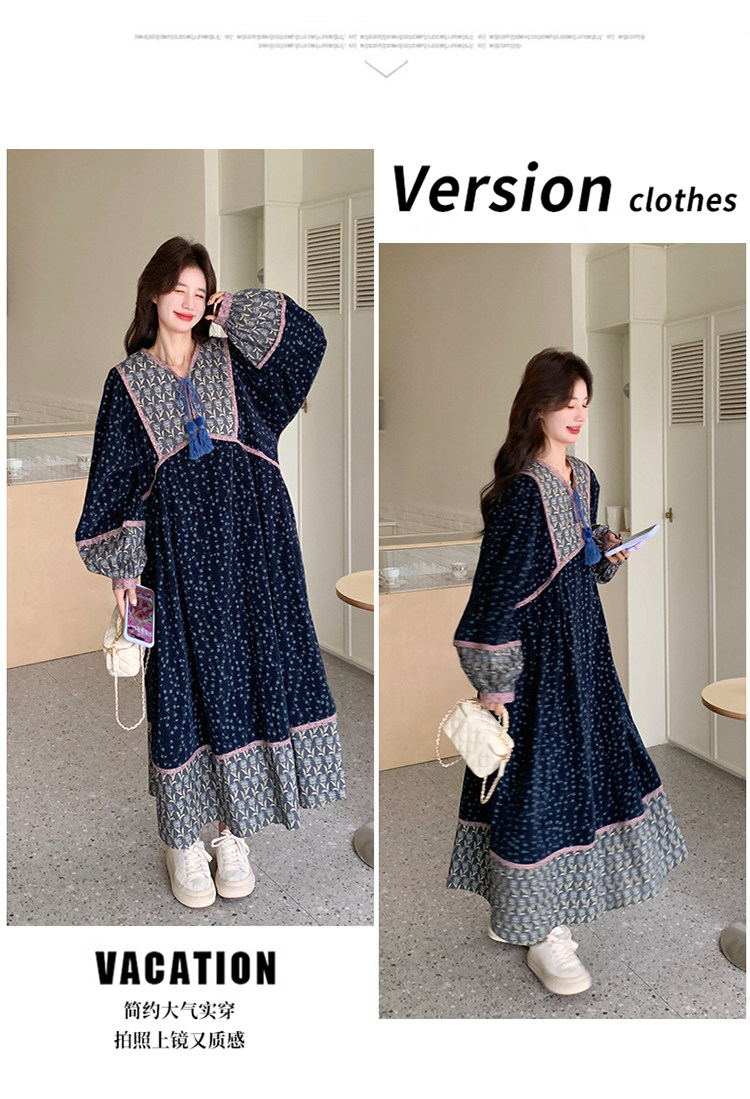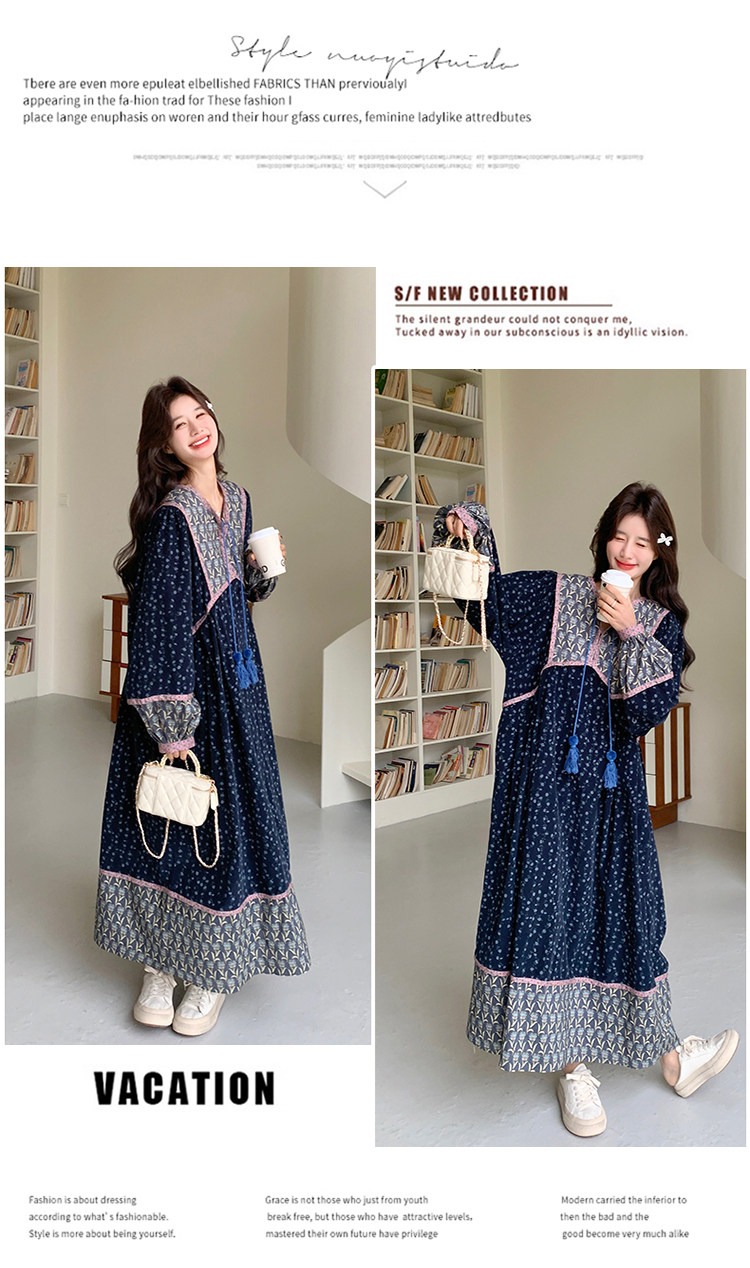 【60%OFF⭐️先行スタート!】【ワンピース】春 秋 冬 大きいサイズ プリント レトロ 長袖 ワンピース【SHシリーズ】