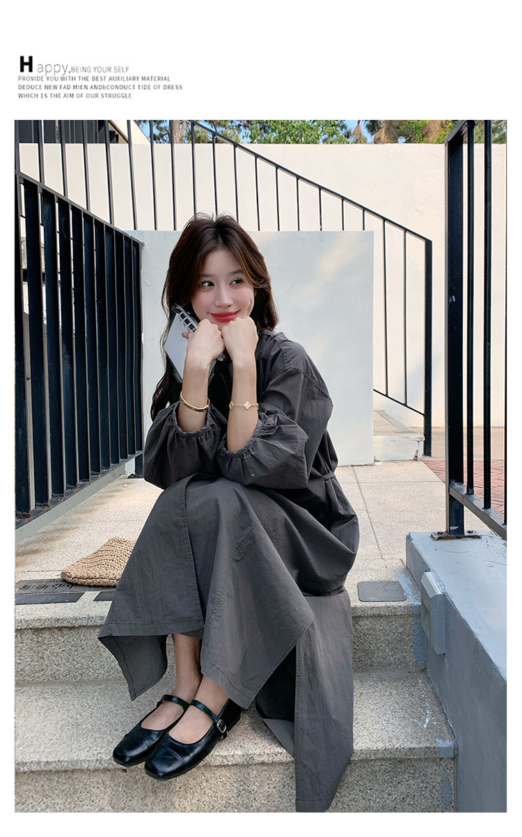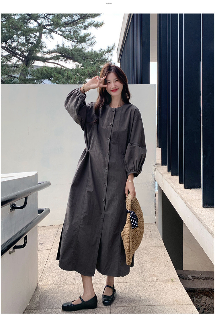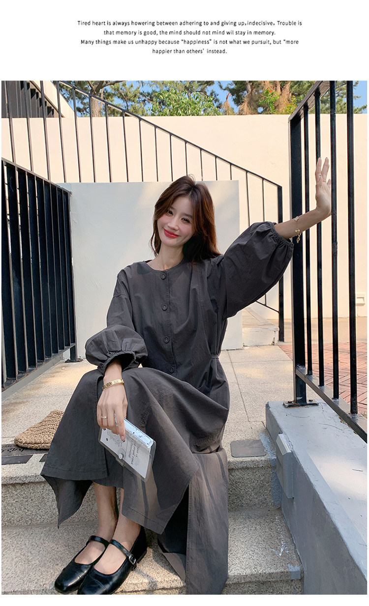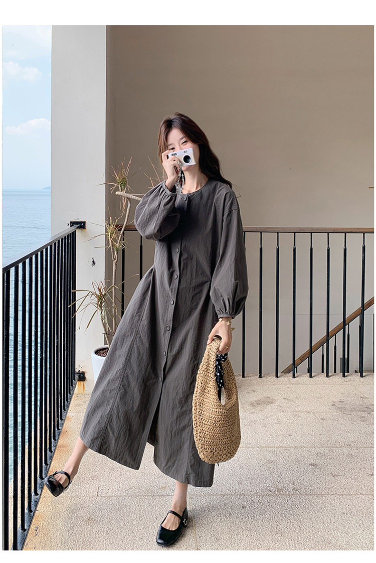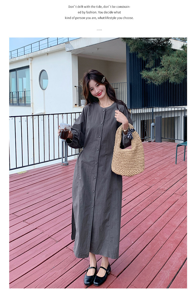 【商品名】【ワンピース】韓国風 長袖 グレー シャツワンピース ゆったりシルエット リラックス感 ロング丈 体型カバー【JZシリーズ】