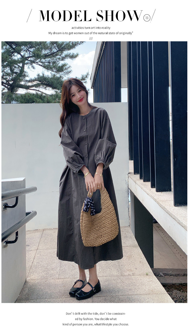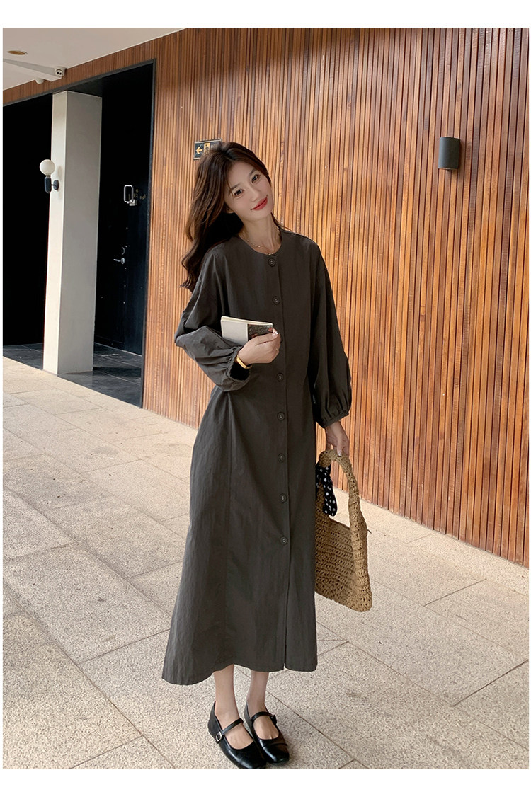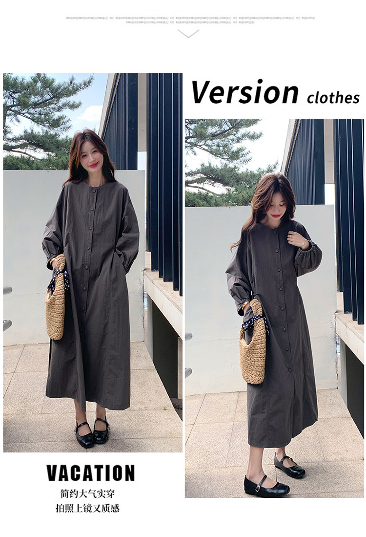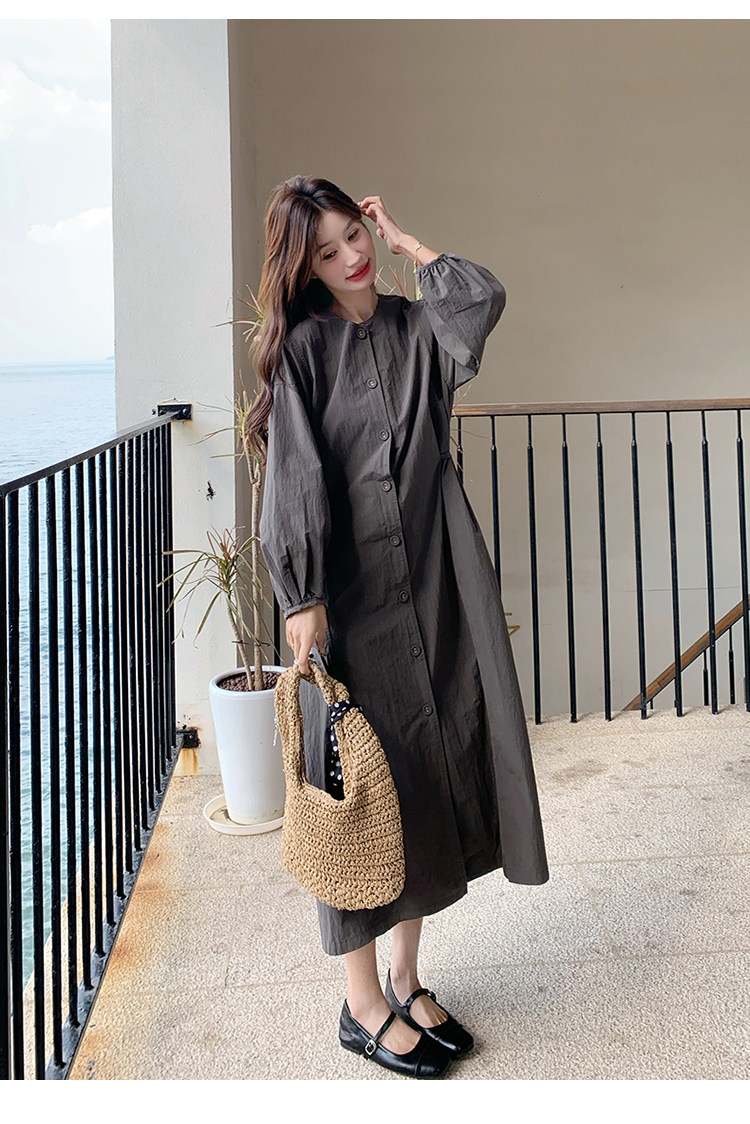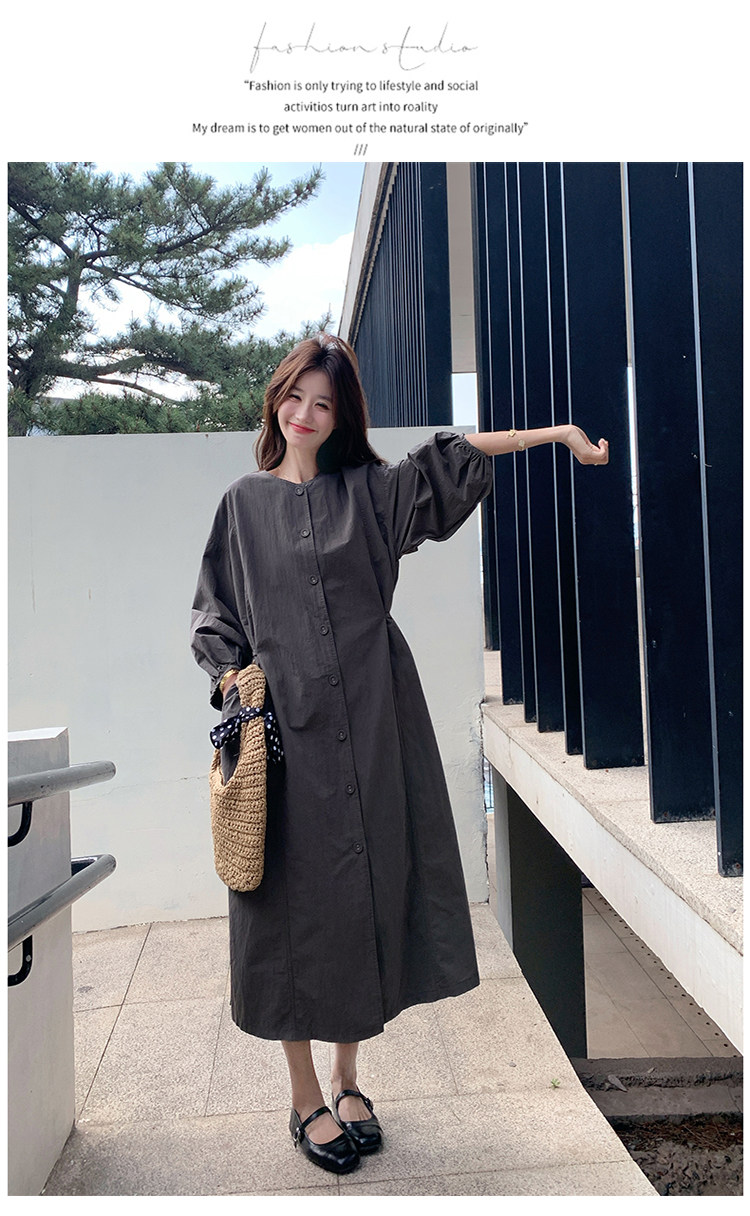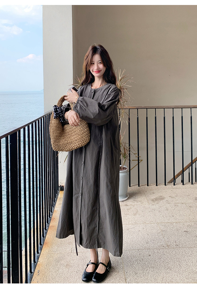 【商品名】【ワンピース】韓国風 長袖 グレー シャツワンピース ゆったりシルエット リラックス感 ロング丈 体型カバー【JZシリーズ】