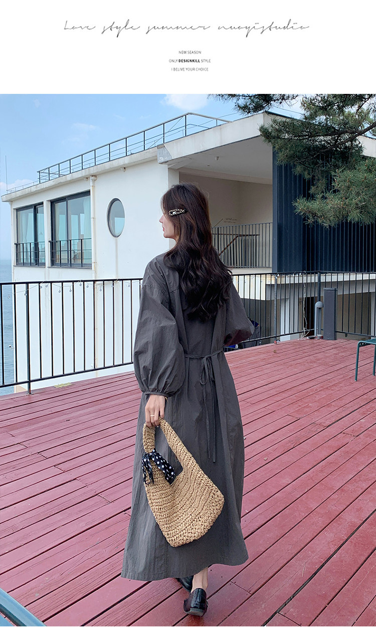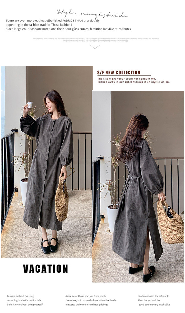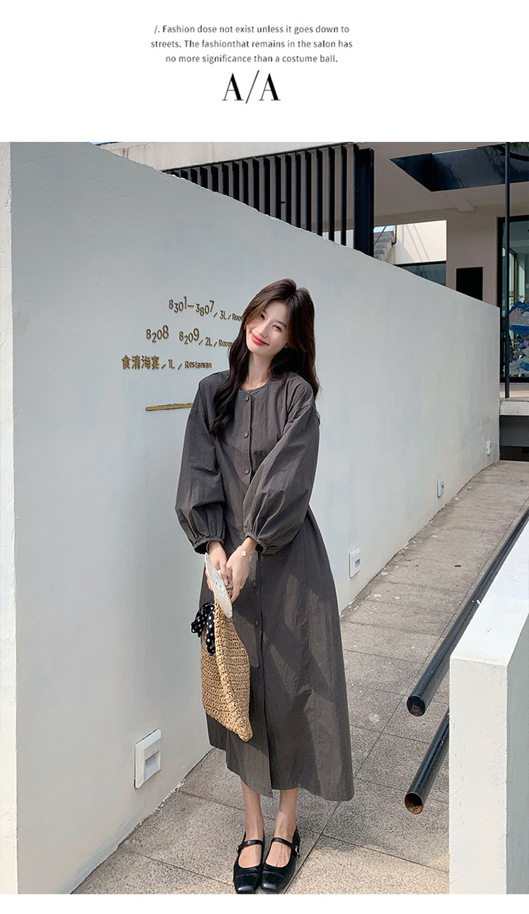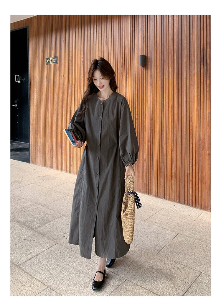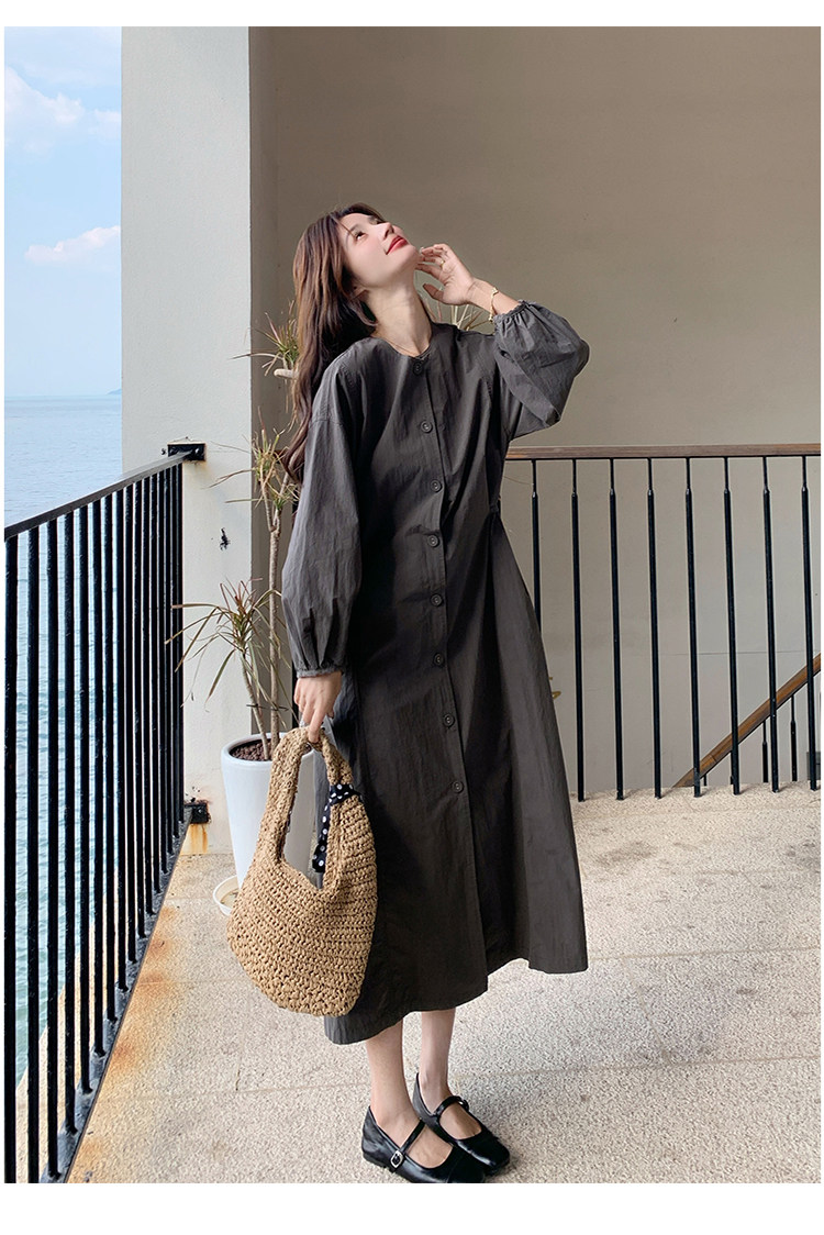 【商品名】【ワンピース】韓国風 長袖 グレー シャツワンピース ゆったりシルエット リラックス感 ロング丈 体型カバー【JZシリーズ】